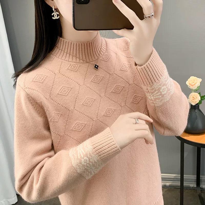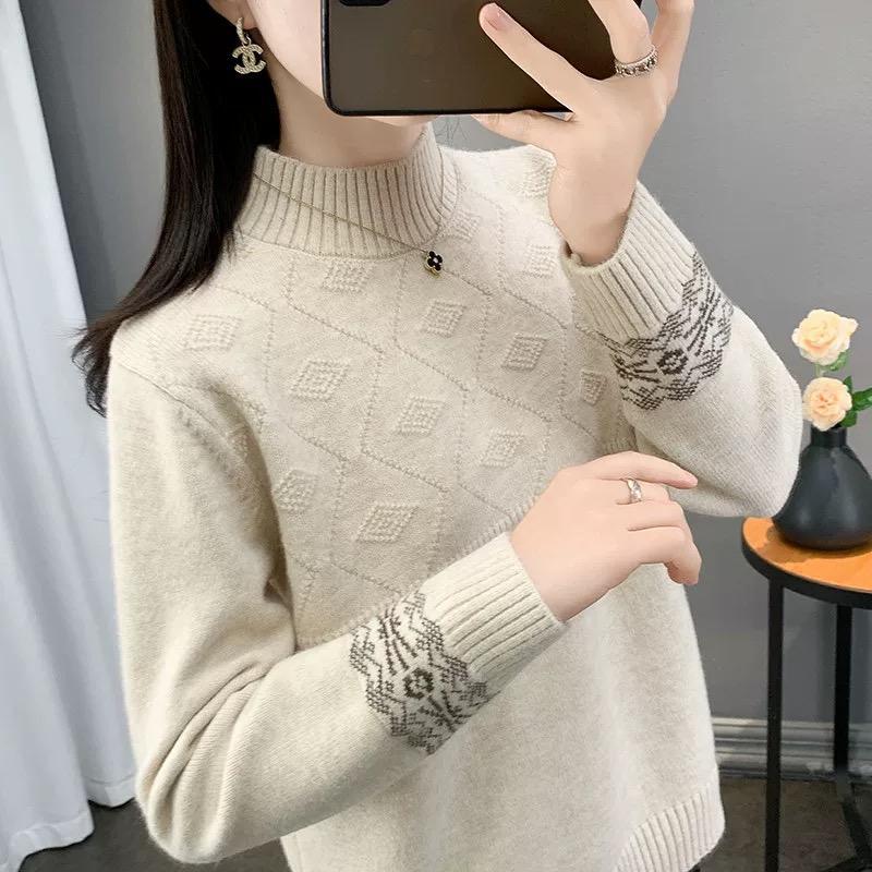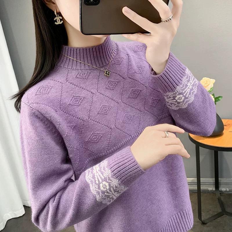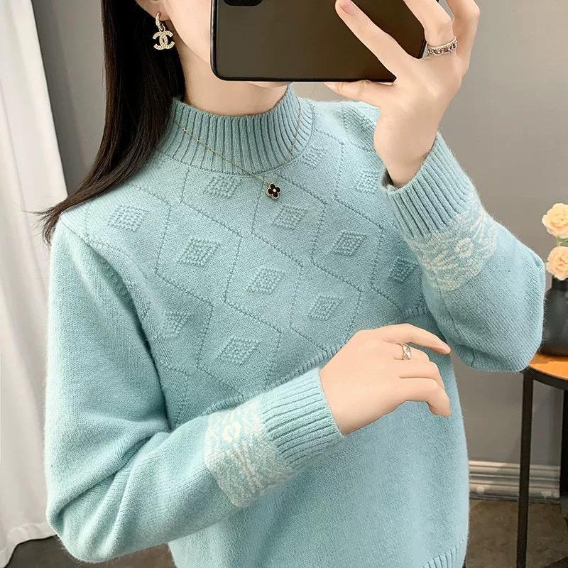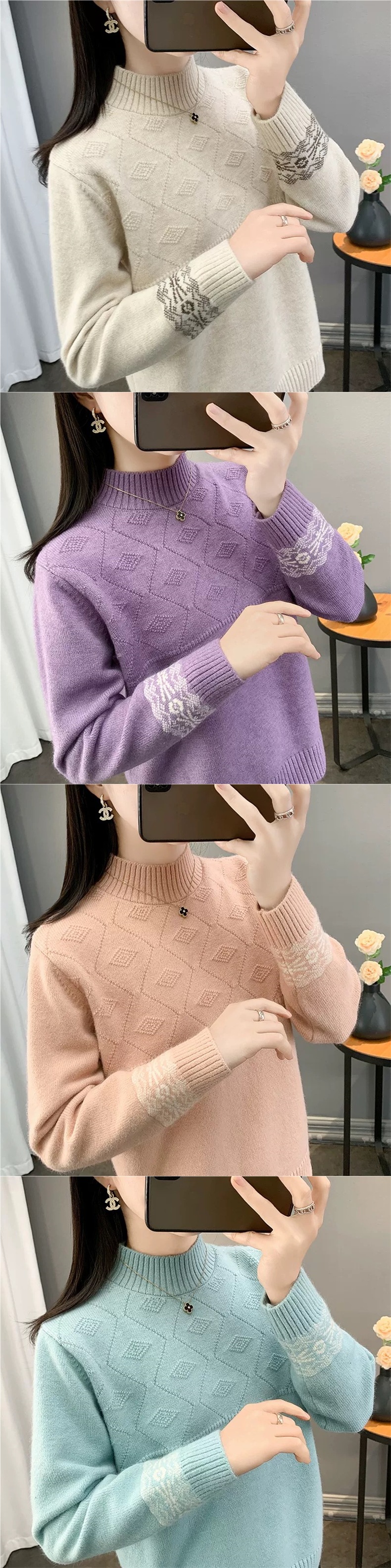 Толстый полувысокий воротник жаккардовый свитер женский свитер новый зимний