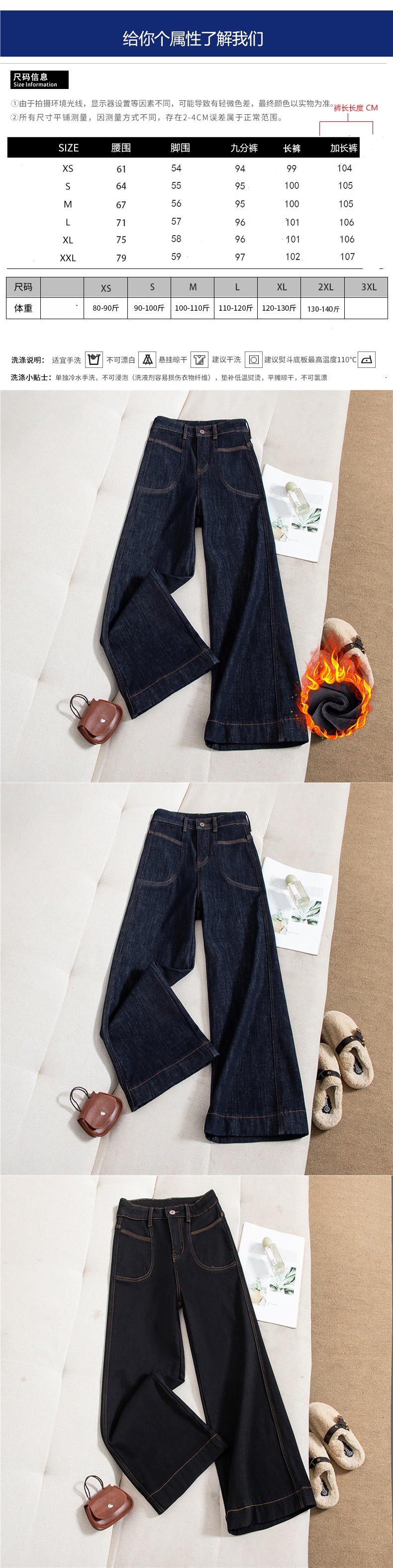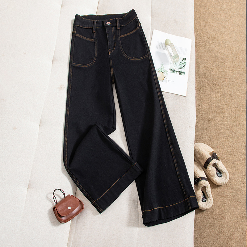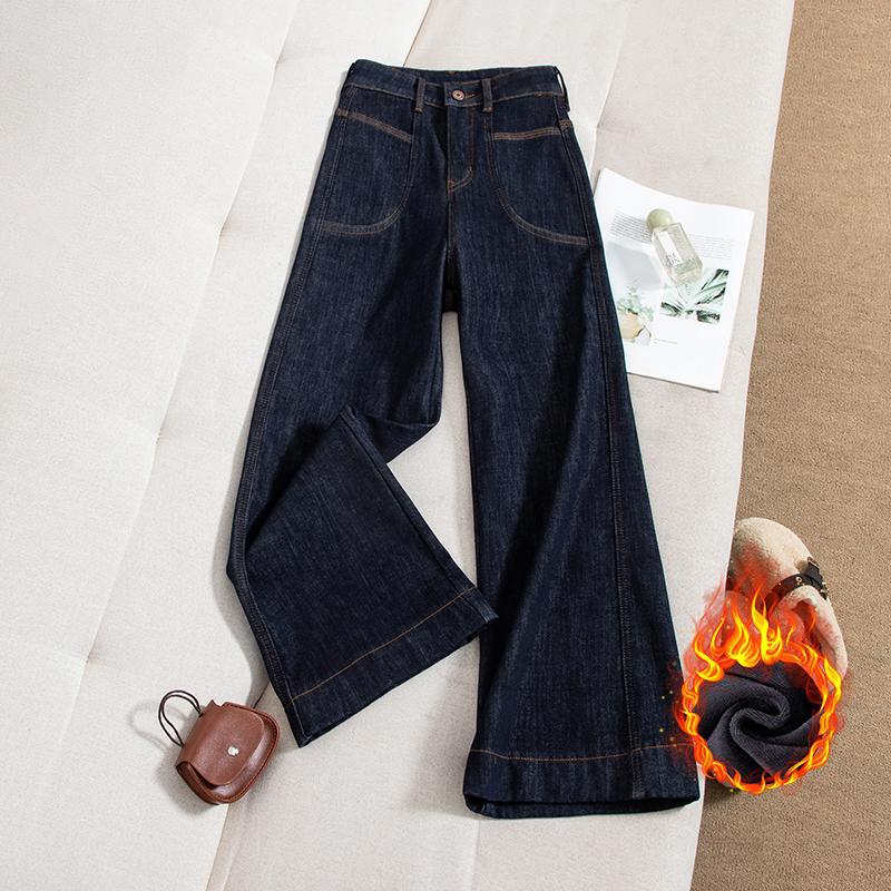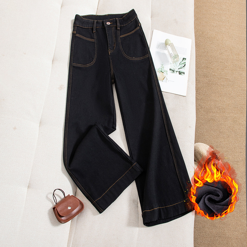Однозначные брюки/бархат три иглы с высокой талией и широкими ножками микро-джинсы женские осень и зима 2024 новая тонкая
