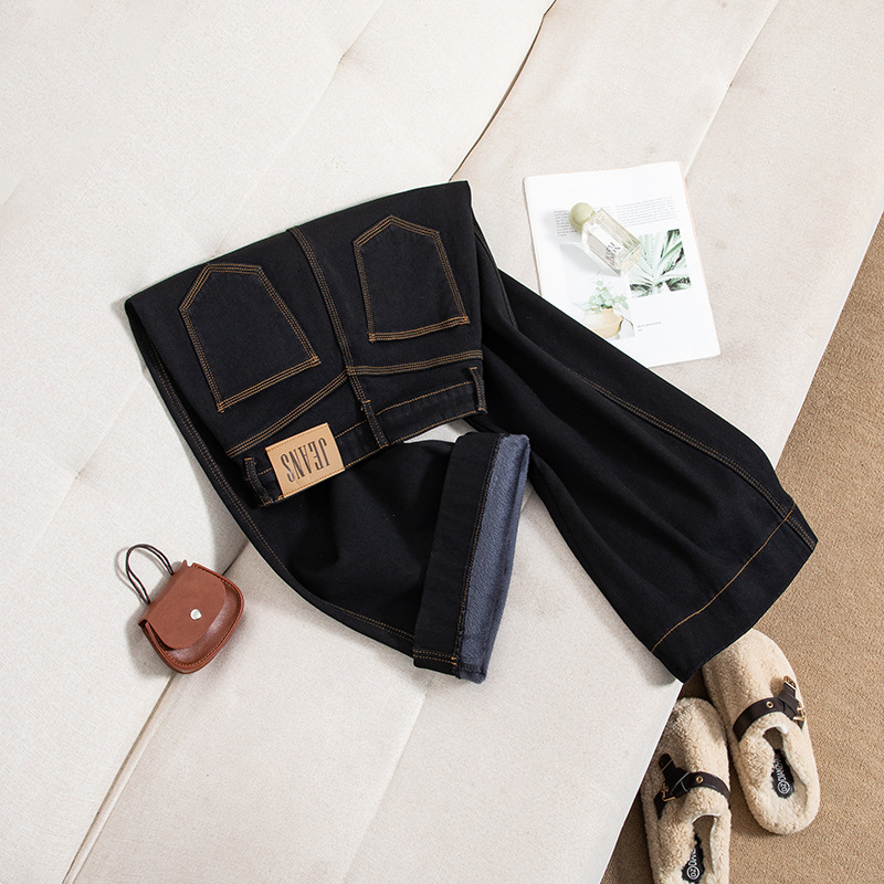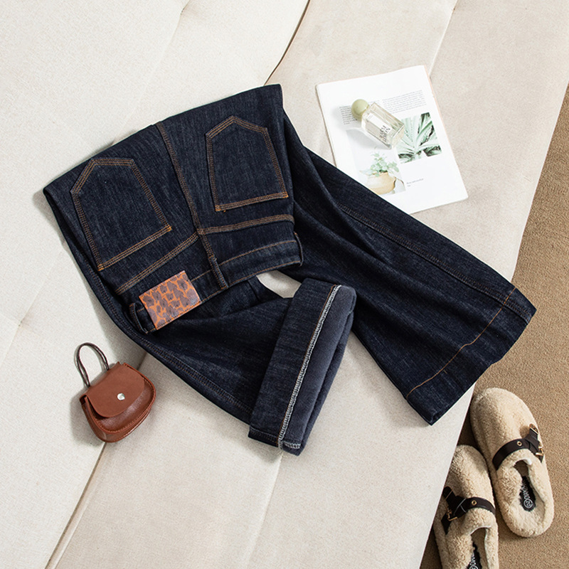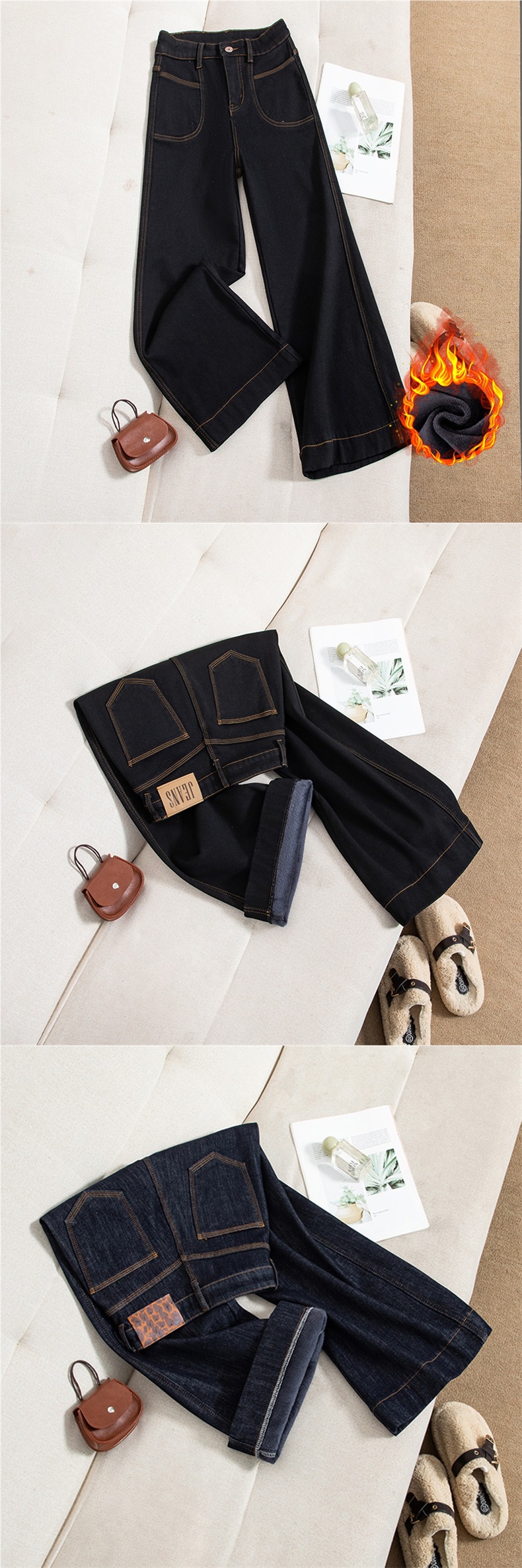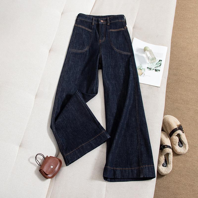 Однозначные брюки/бархат три иглы с высокой талией и широкими ножками микро-джинсы женские осень и зима 2024 новая тонкая