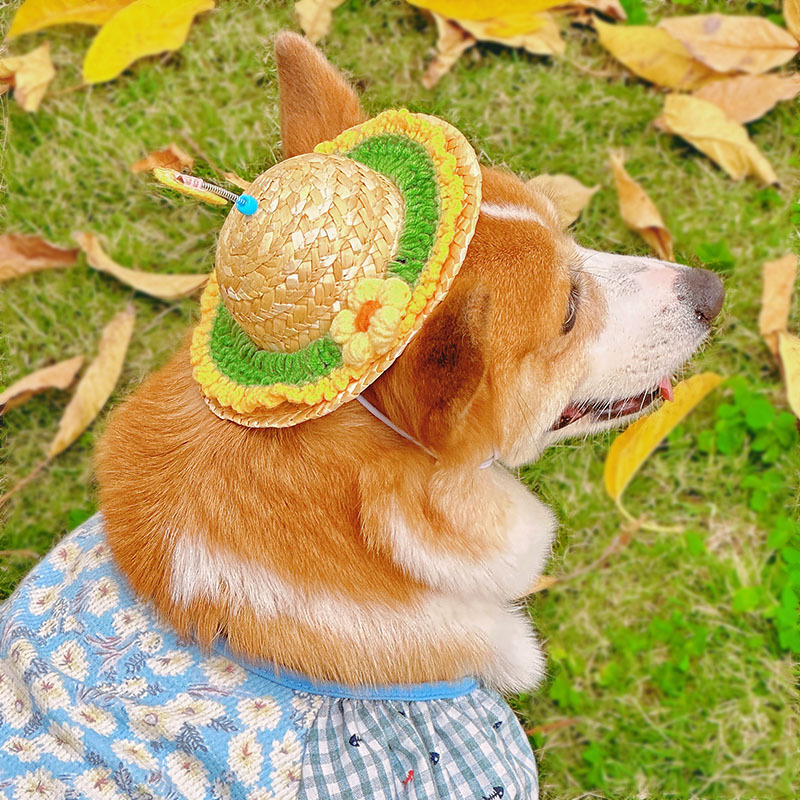 Домашние собаки шляпы сетка красная бамбуковая стрекоза соломенная шляпа козырька милые корги Тедди декоративные аксессуары для головных уборов