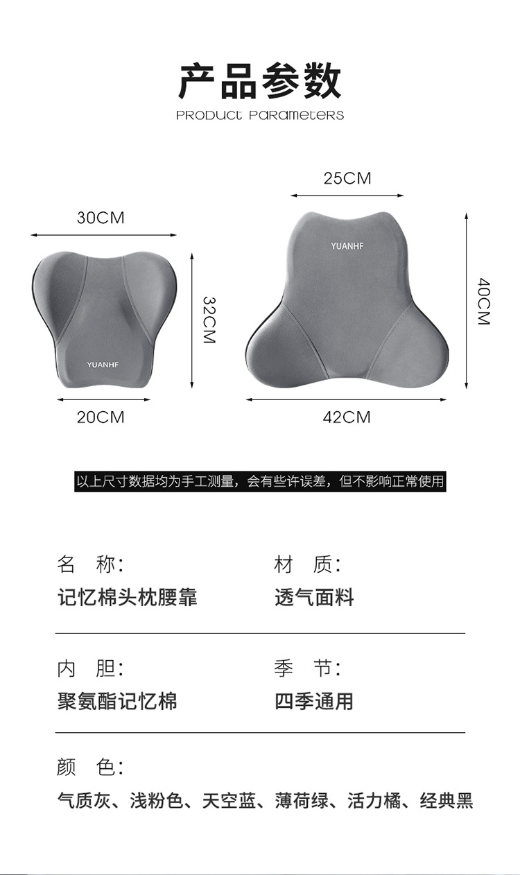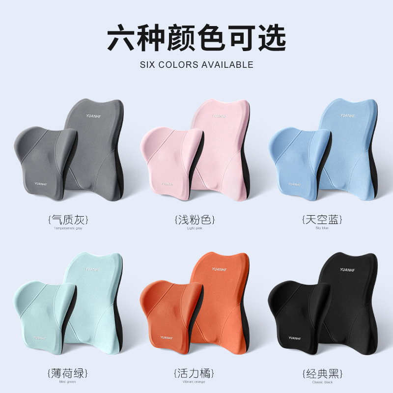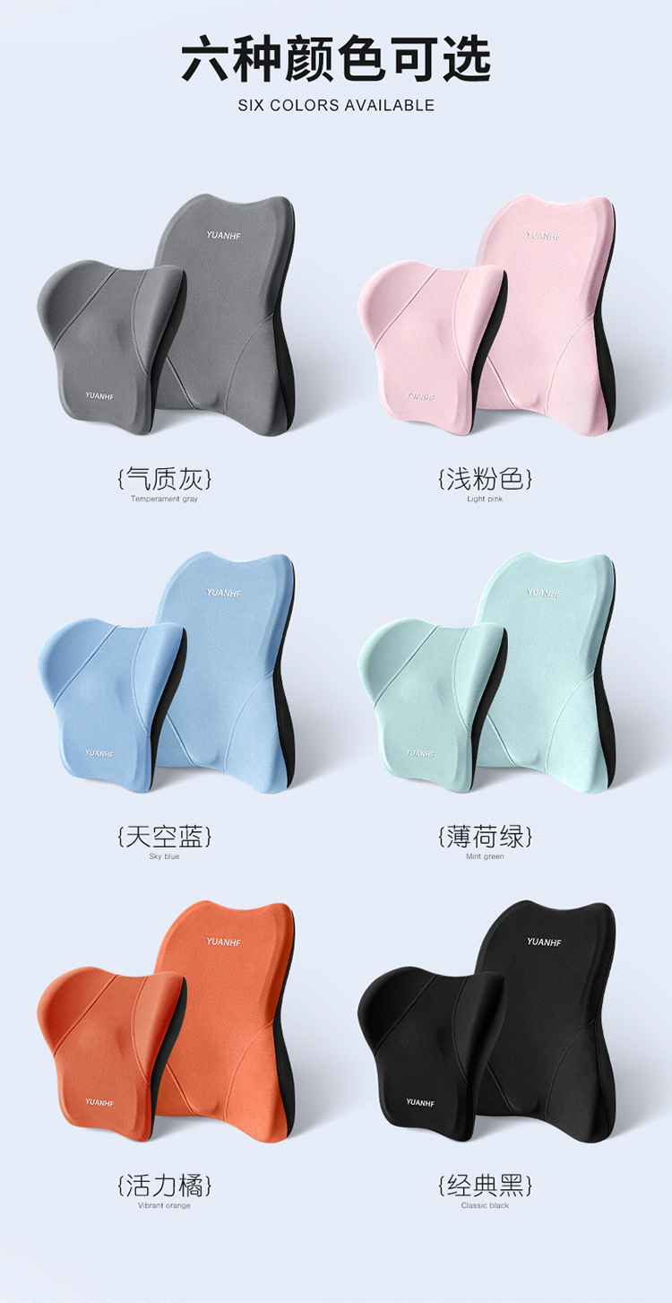 Серый подголовник Темперамент; Светло-розовый подголовник; небесно-голубой подголовник; Мятно-зеленый подголовник; Яркий оранжевый подголовник.; Классическая подушка от черных точек; Классическая черная поясничная поддержка.; Яркий оранжевый пояс; Мятно-зеленая поясничная поддержка; Небесно-голубой талиист; Светло-розовый талии; Темпераментный серый пояс