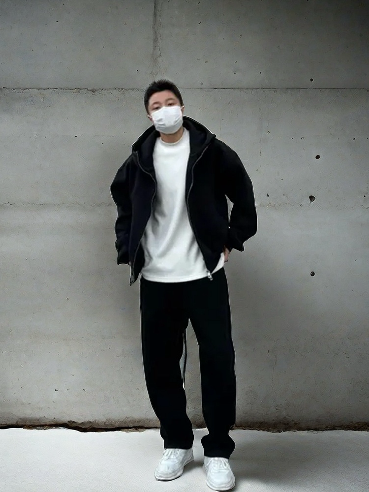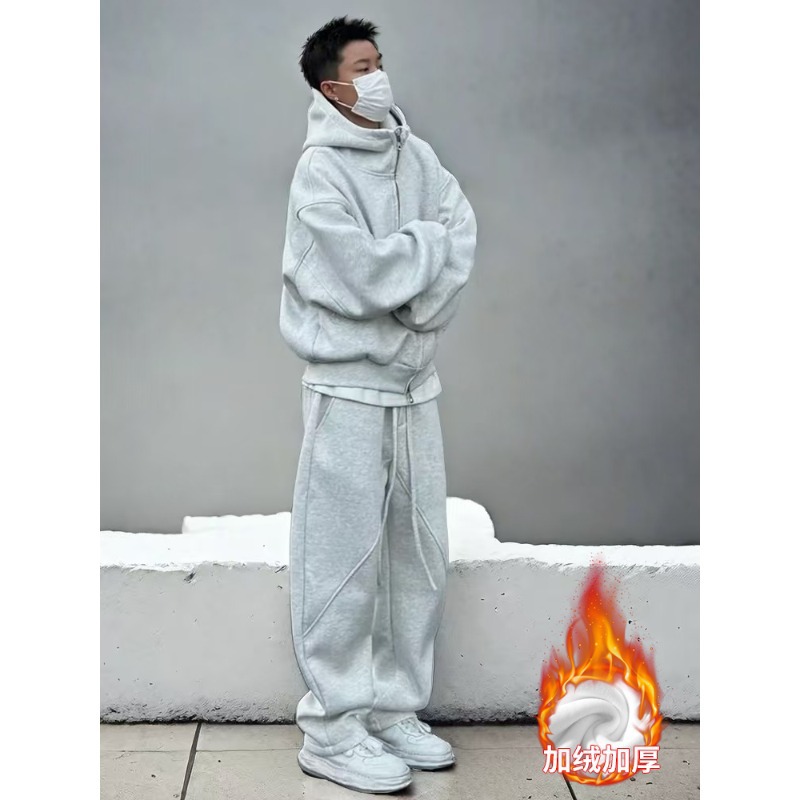 Весна и осень утолщенный спортивный костюм мужской свободный пиджак с капюшоном свитер брюки из двух частей