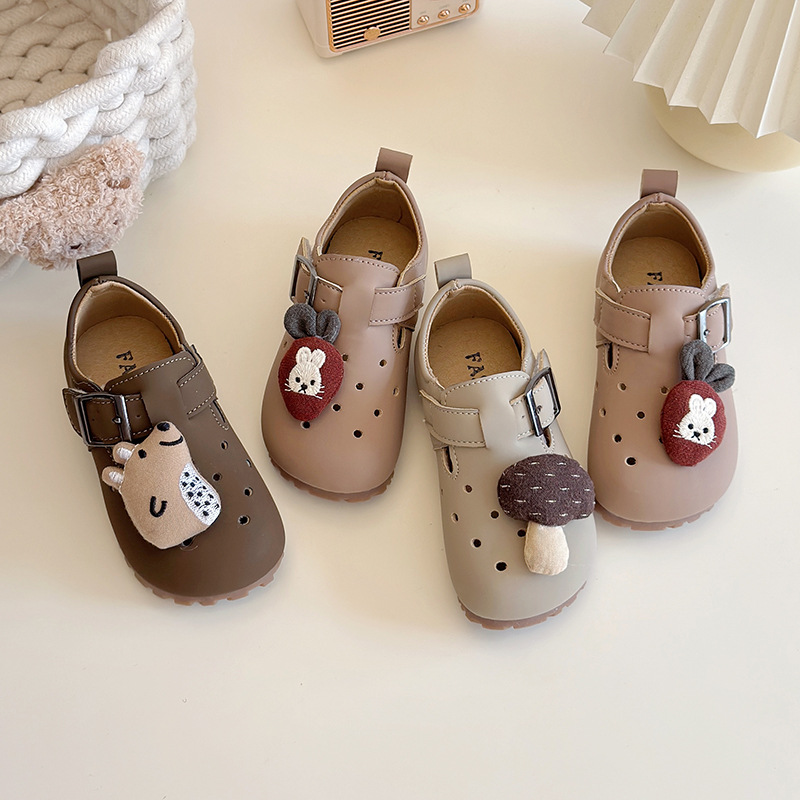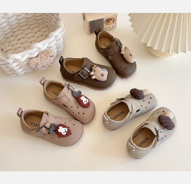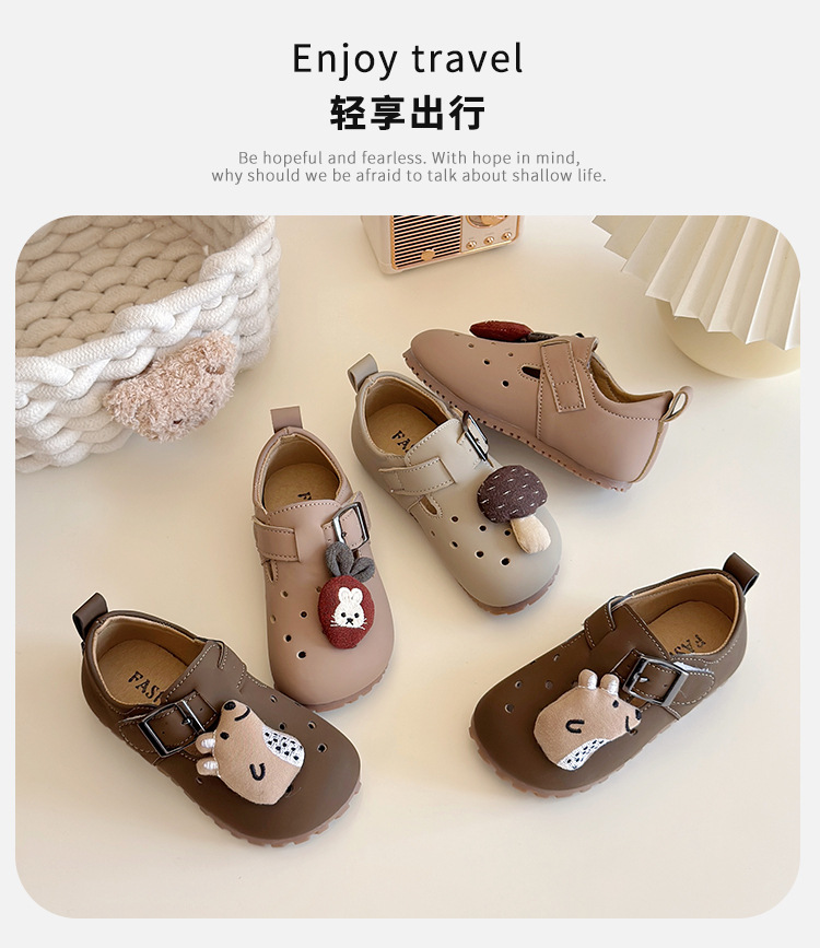 Кожаные туфли для девочек 2025 весна и осень новые детские нескользящие дышащие полые ботинки для девочек повседневные модные мягкие ботинки