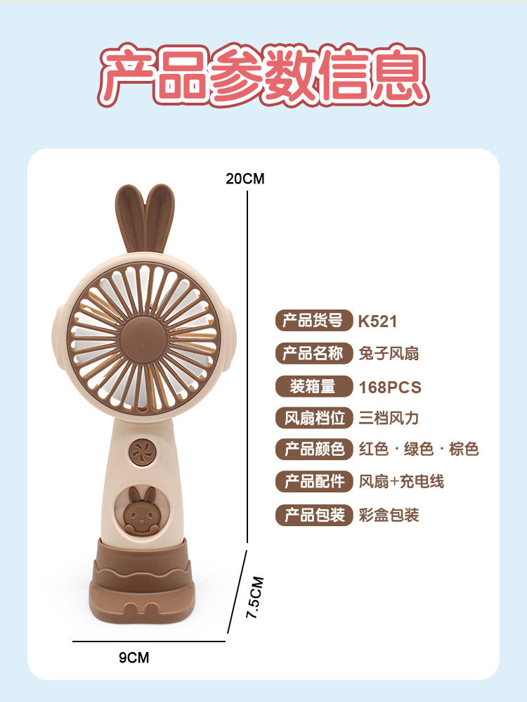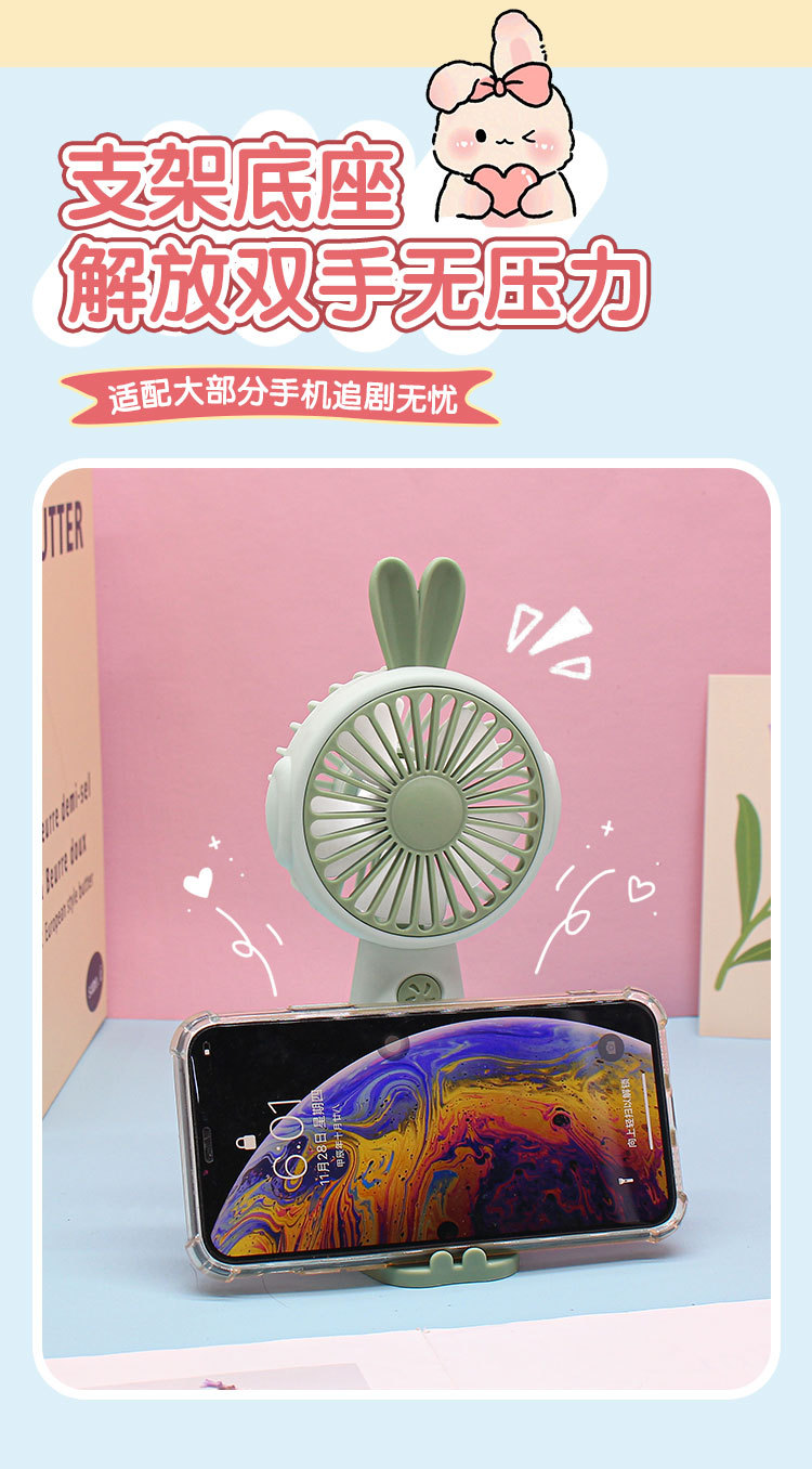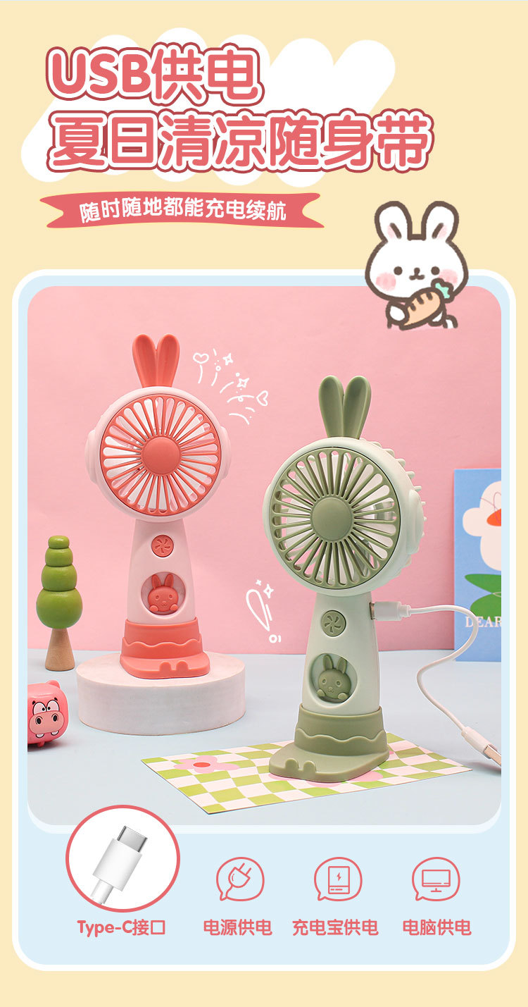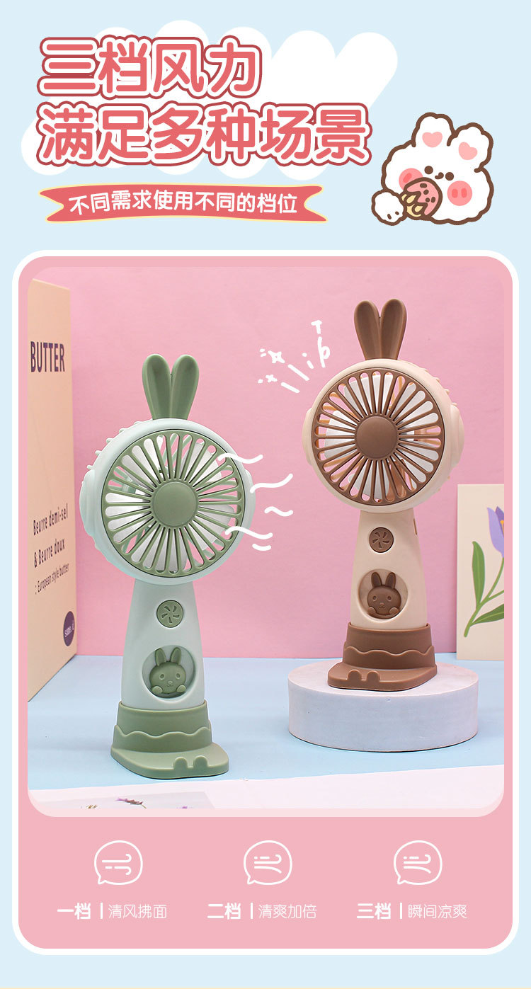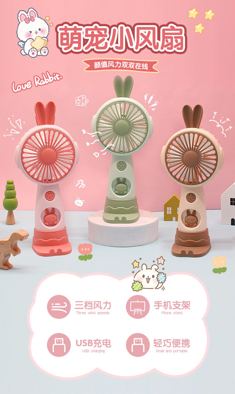 Новая внешняя торговля горячая распродажа мультяшный кролик портативный USB зарядка мини-вентилятор портативный настольный трехступенный маленький вентилятор