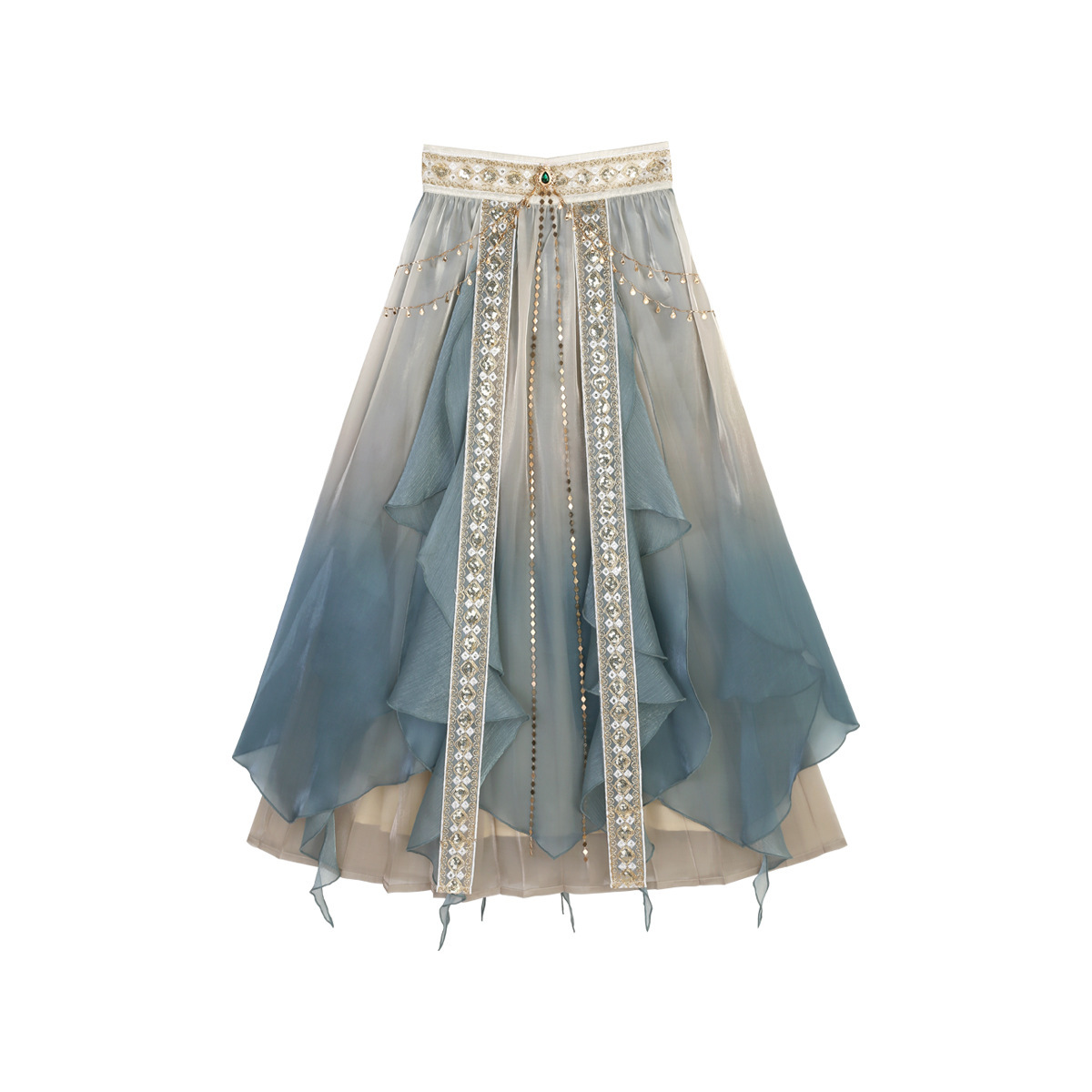 Оригинальный дизайн флуоресцентный Xingzhou Hanfu женский Dunhuang Западный ветер корсет полуюбка с пряжей 9087