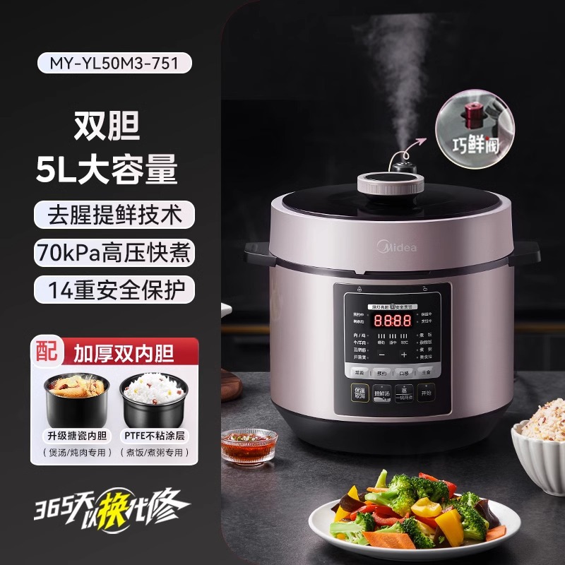 Midea электрическая скороварка домашняя двойная желчная скороварка 5L многофункциональная рисоварка полностью автоматическая интеллектуальная RY50Q3-FS для 8 человек