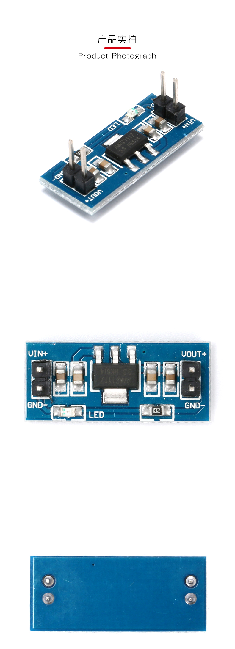 作为电子爱好者,你是不是会为找不到一个3.3V电源而纠结,是不是会为电源的扩展接口数量不够而苦恼?这样的经历,相信搞电子设计的人都会经常遇到。为了方便大家能够找一个安全性能高、使用方便、电源扩展接口丰富的稳压模块,本店设计了这样一款5v转3.3v电源稳压模块,该模块适用于单片机项目设计等需要3.3V供电的电子设备。同时,可以为一些电子设计的电源扩展提供便利。