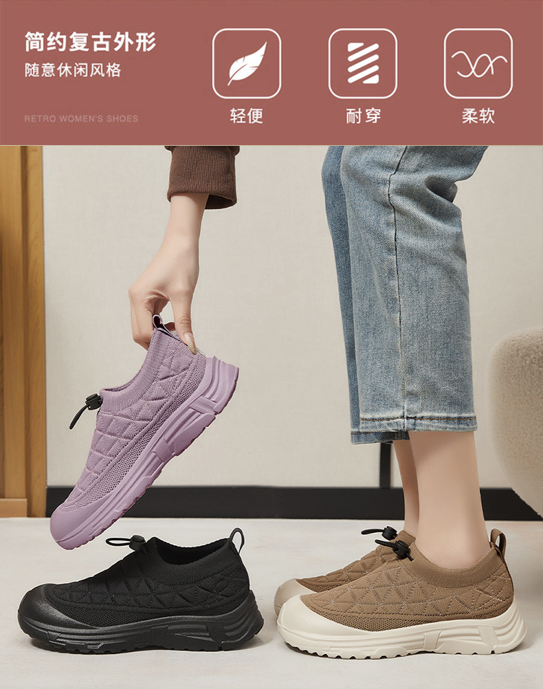 Женские туфли 2025: осенние модные слипоны-лоферы на платформе из трикотажной ткани (технология Flyknit)