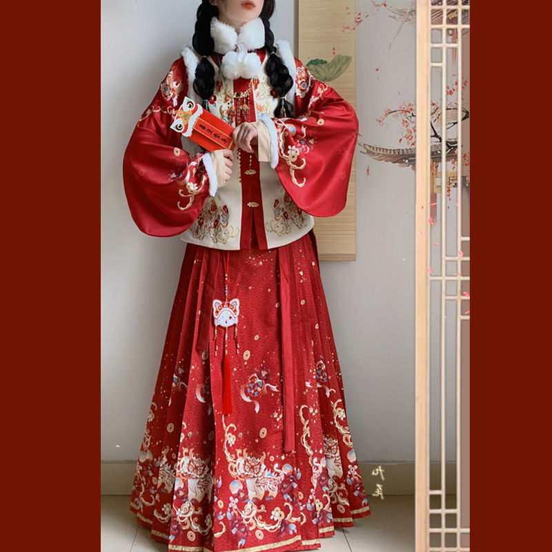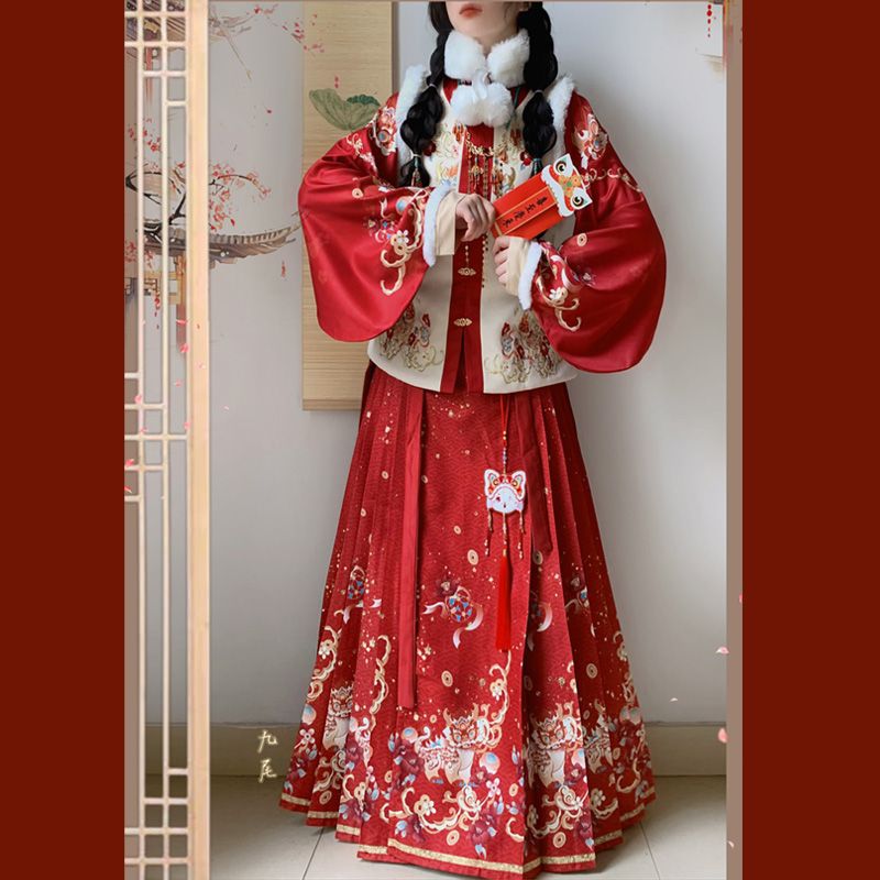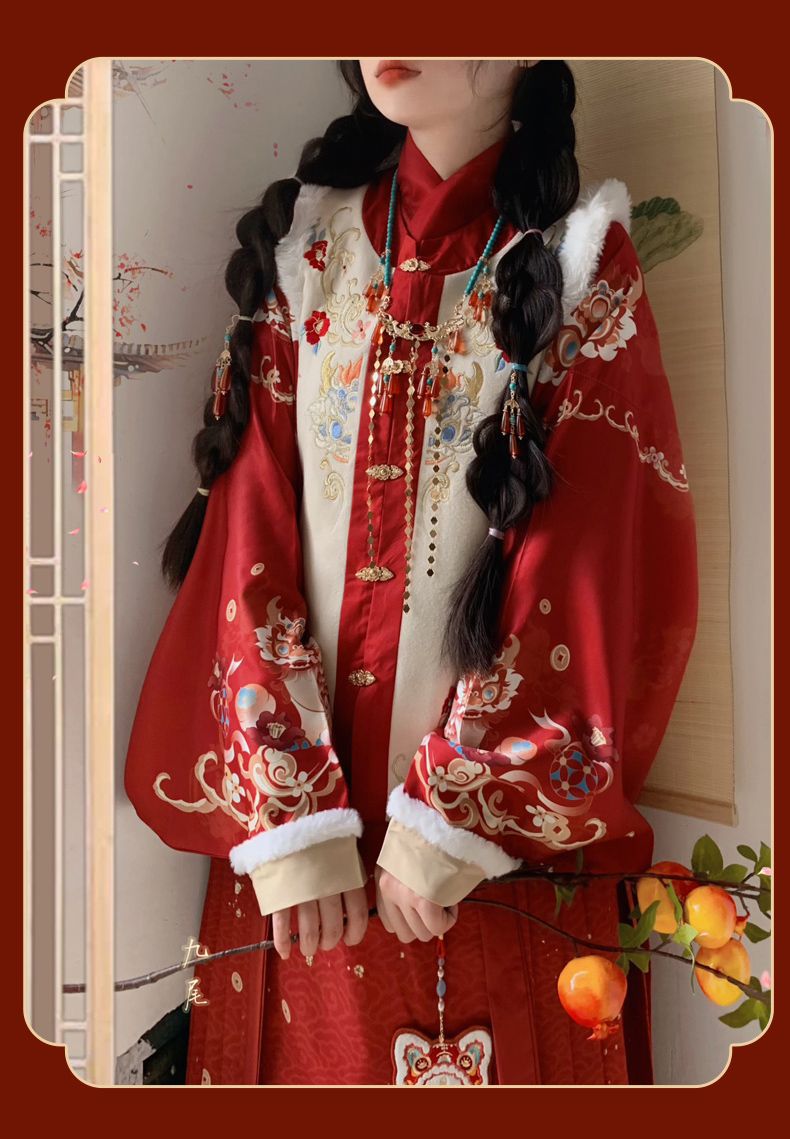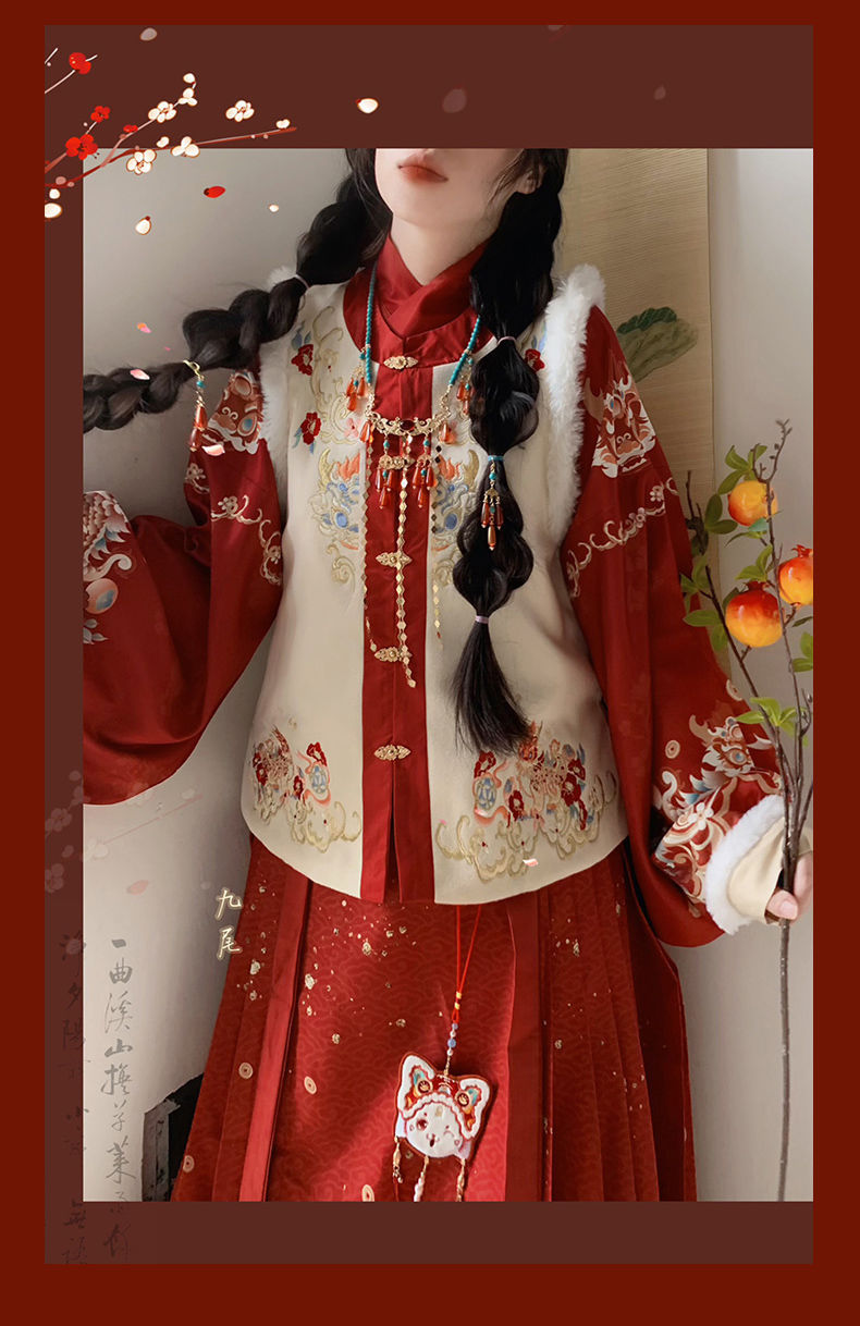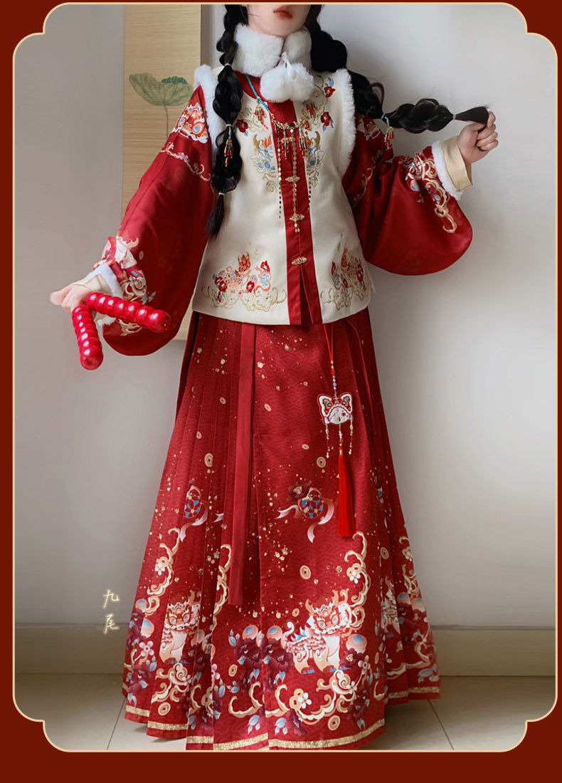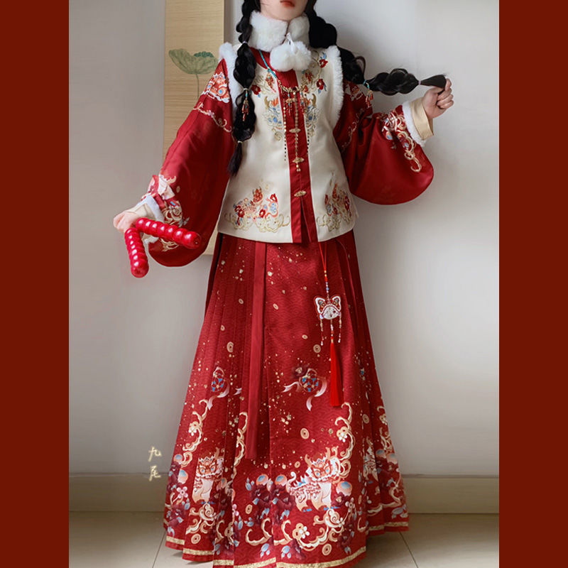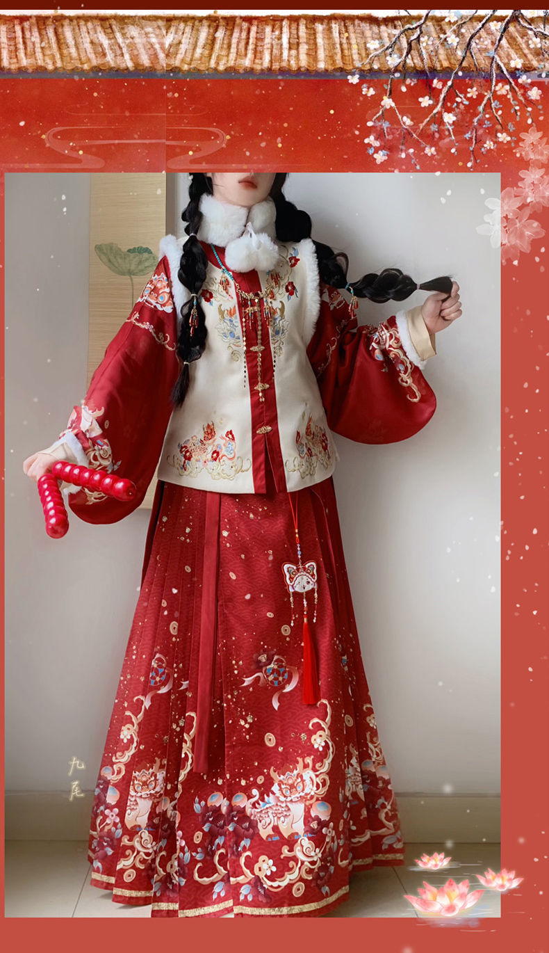 Полный комплект из вышитой брони + рукава пипа + юбка-конца + меховой воротник.; Индивидуальная юбка с конским лицом; Отдельная броня + подкладка с перекрестным воротником.