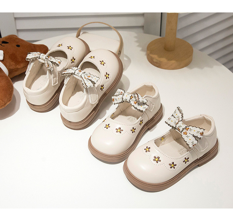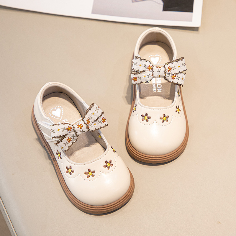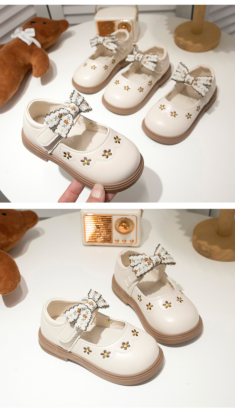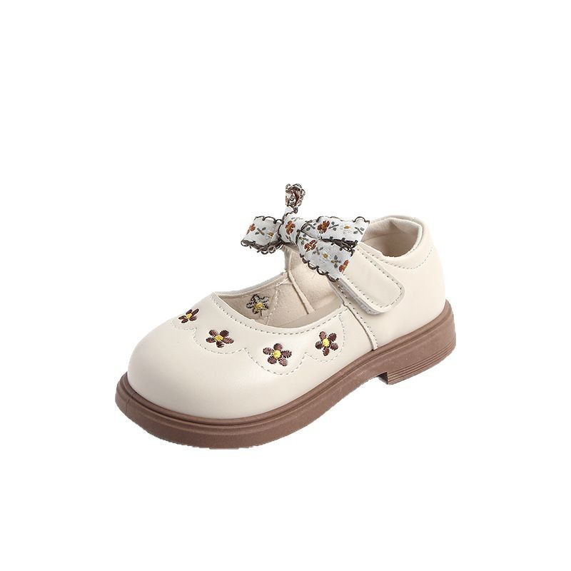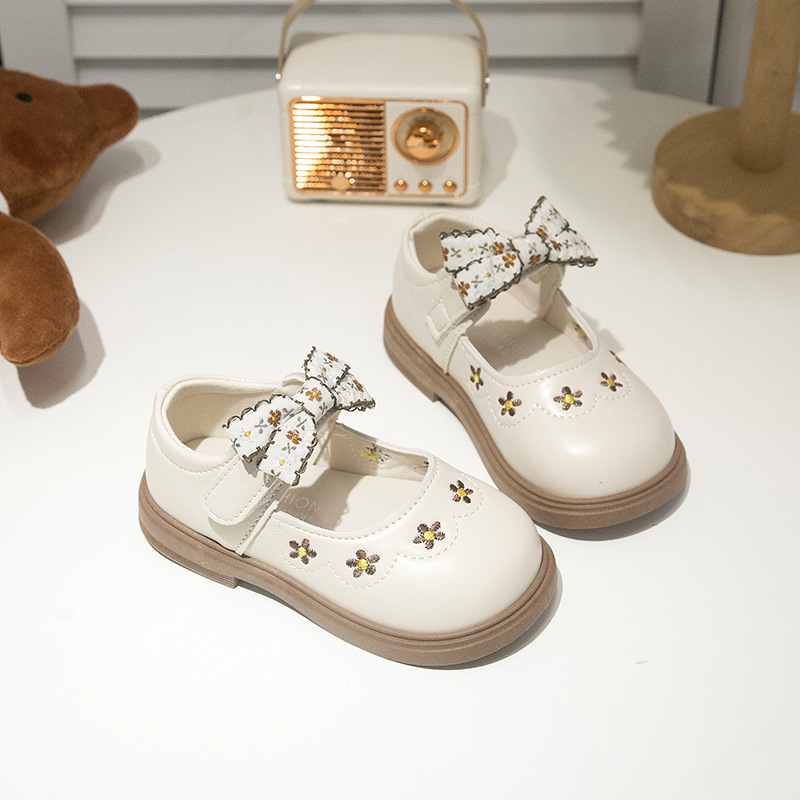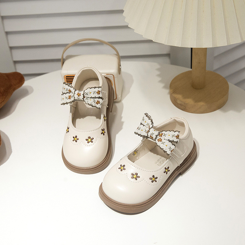 Детская кожаная обувь с бантом для девочек Детская обувь Весна и Осень 2025 Новый маленький цветок квадратный рот обувь мягкая подошва для девочек