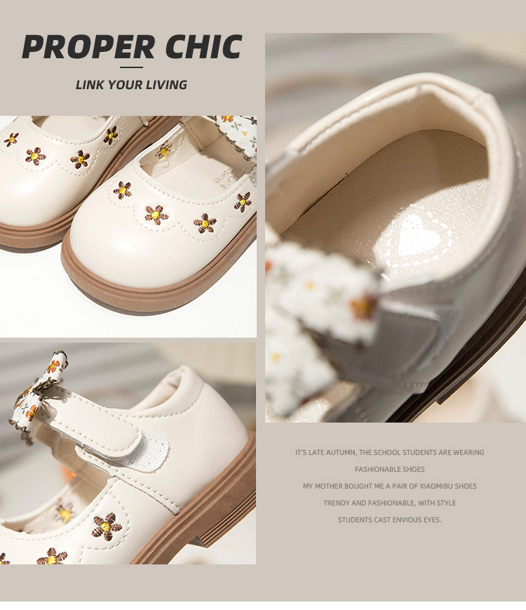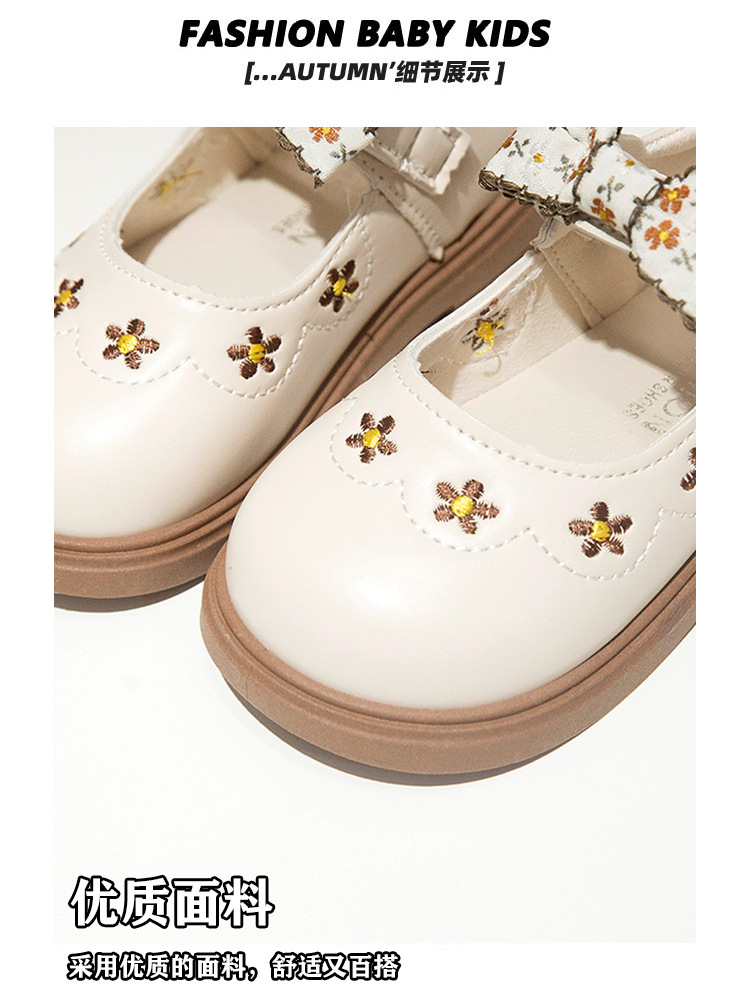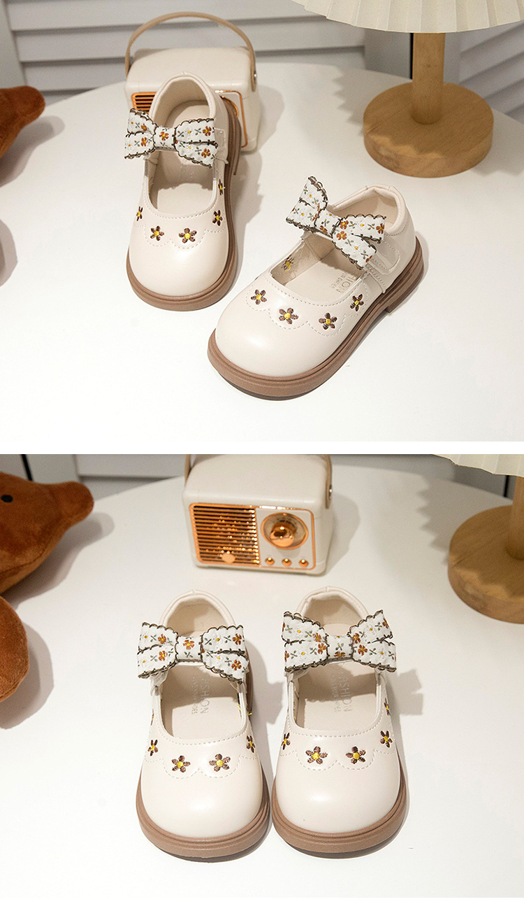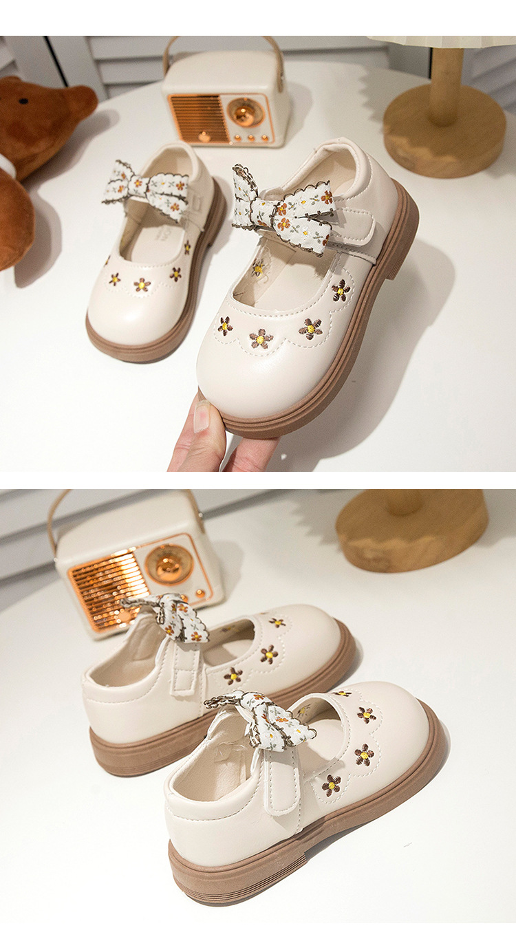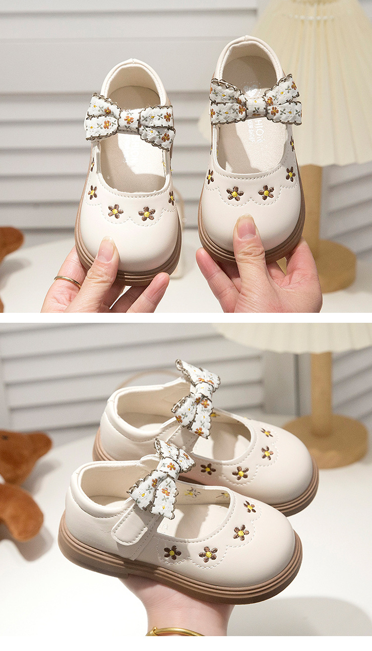 Детская кожаная обувь с бантом для девочек Детская обувь Весна и Осень 2025 Новый маленький цветок квадратный рот обувь мягкая подошва для девочек