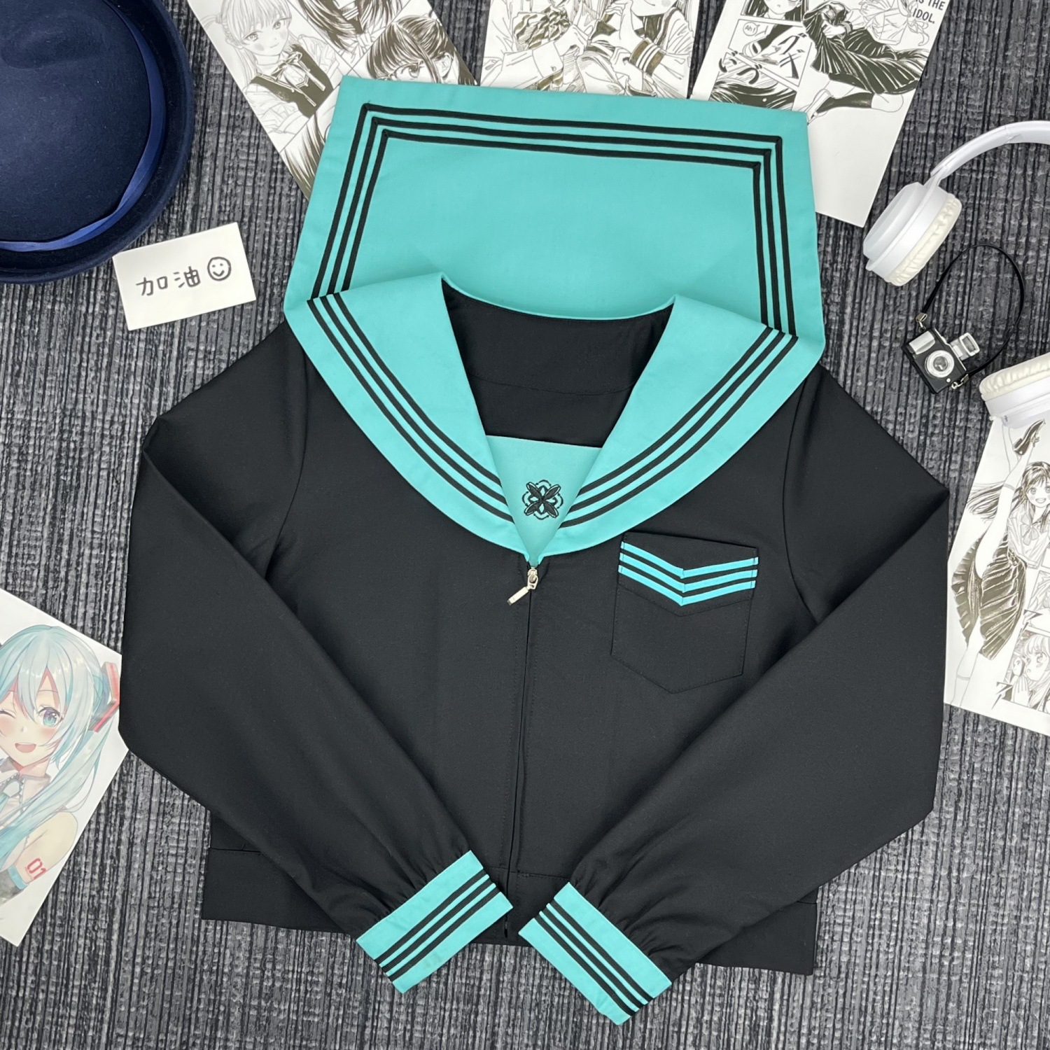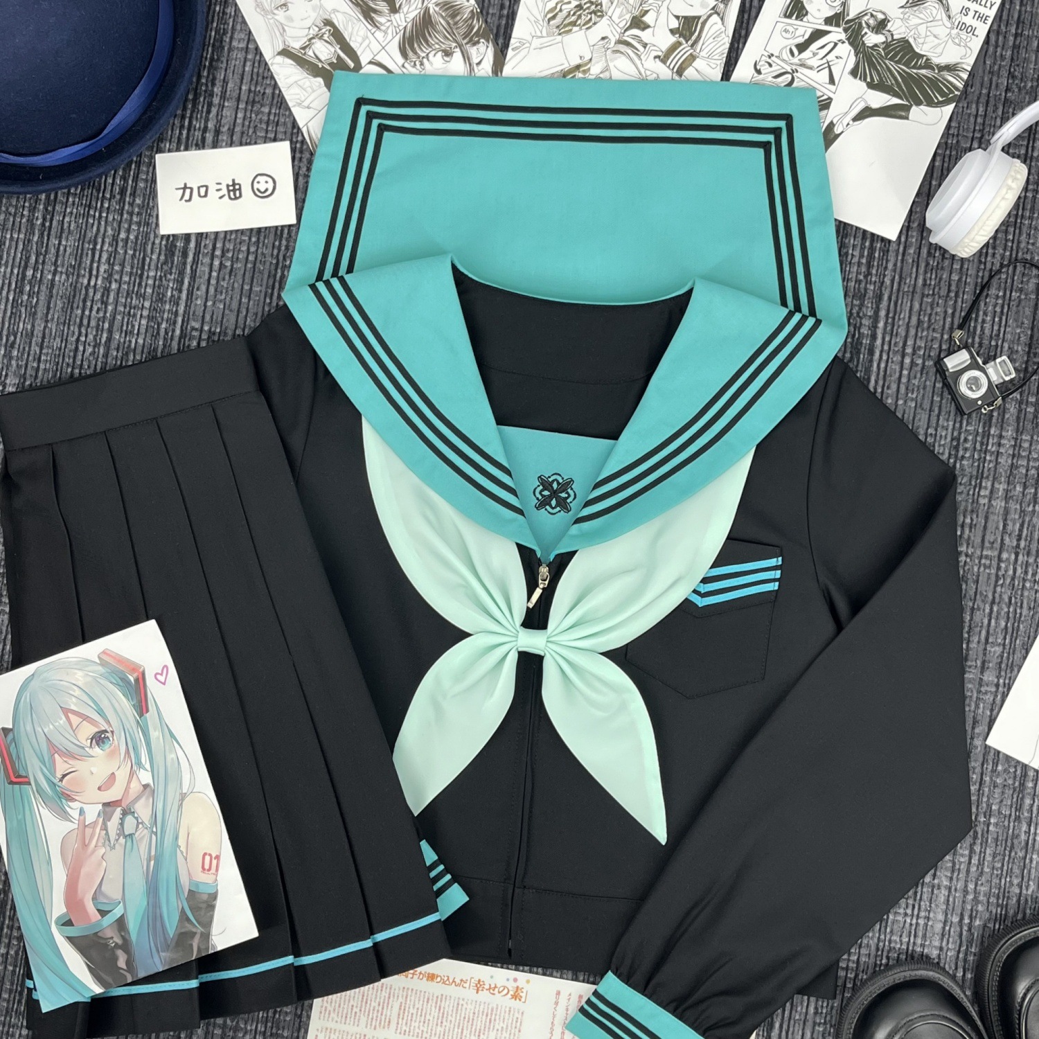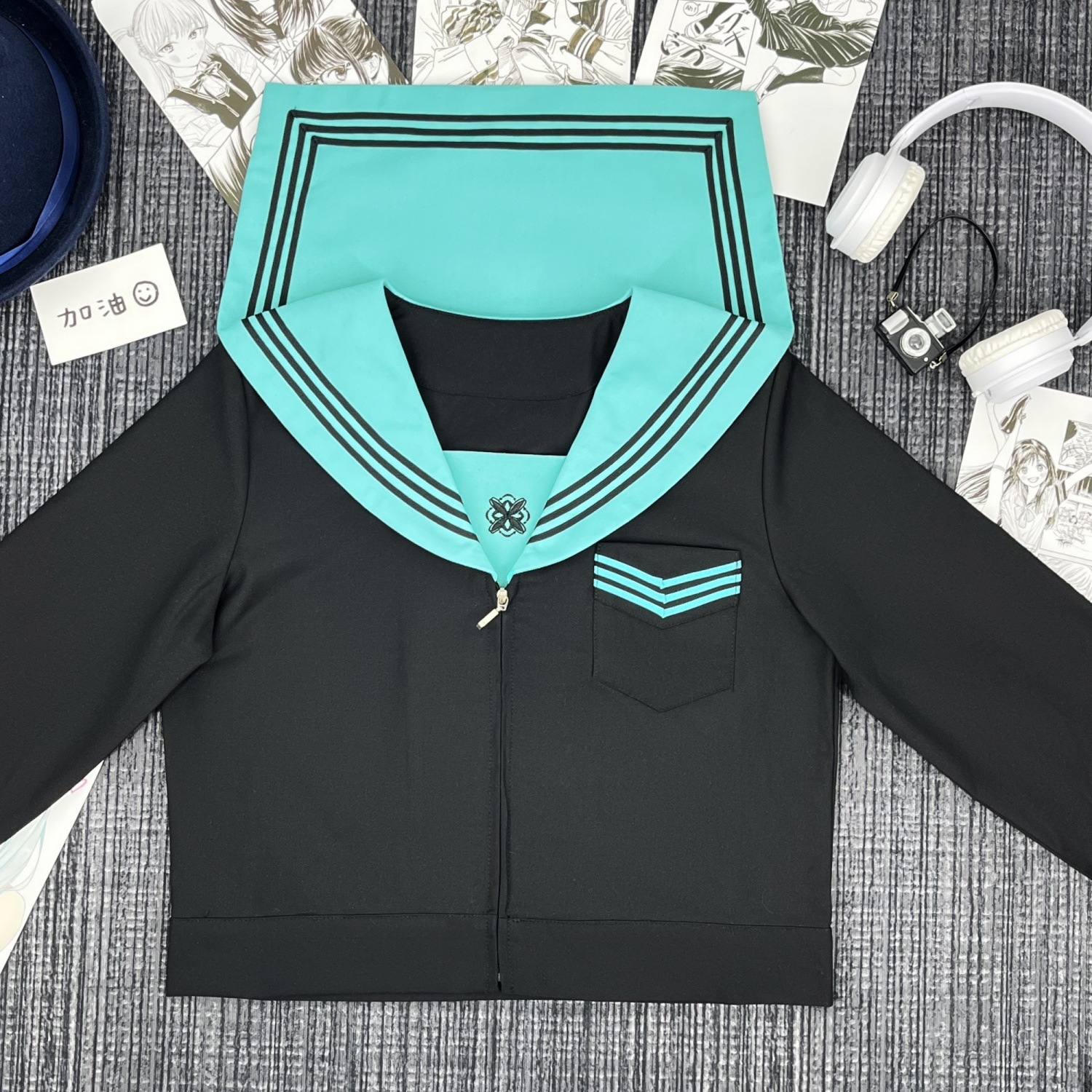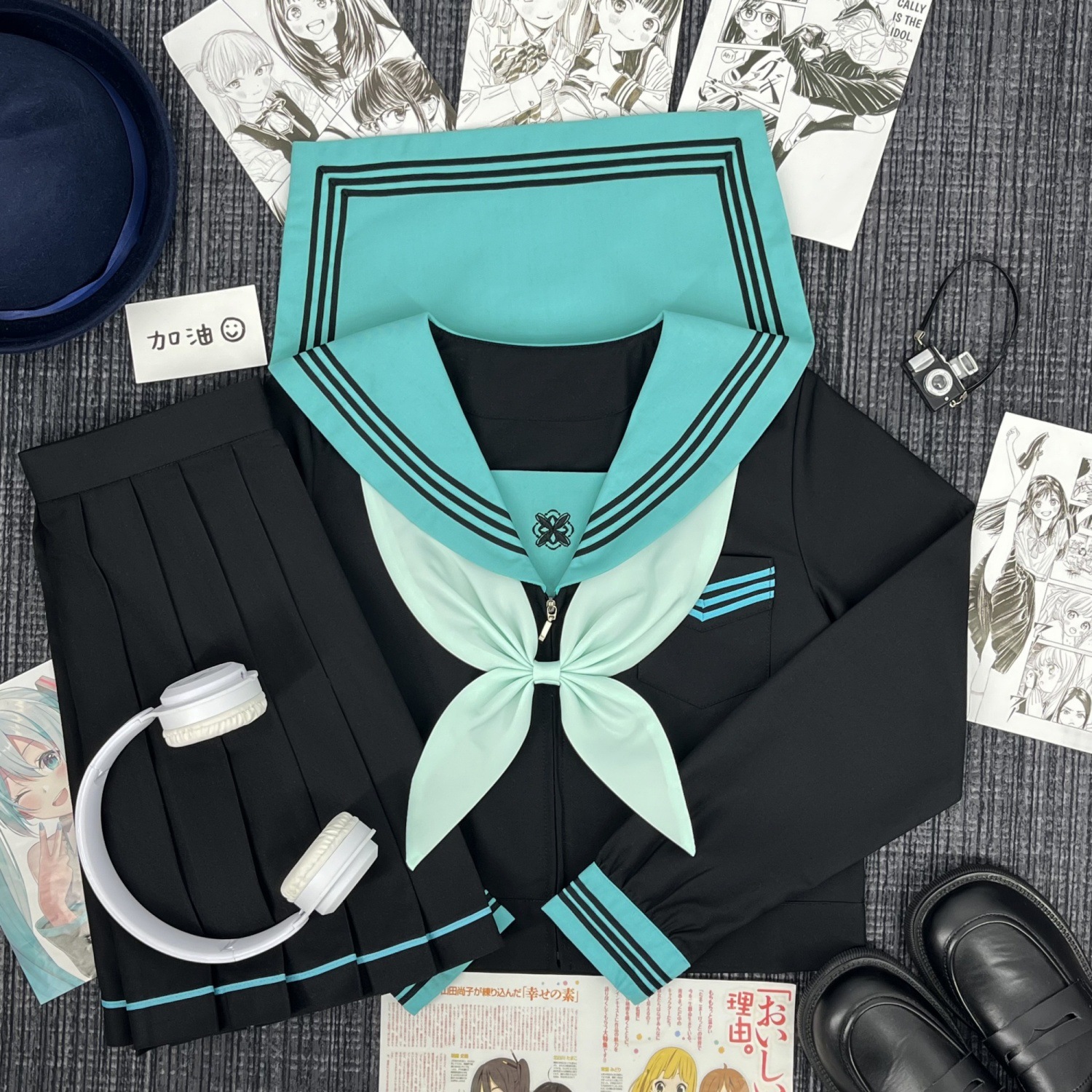 Qingli с длинными рукавами + узел золотой рыбки травяного зеленого цвета + юбка в тон; Qingli с короткими рукавами + узел золотой рыбки травяного зеленого цвета + юбка в тон; Qingli с длинными рукавами + узел золотой рыбки травяного зеленого цвета; Цинли с короткими рукавами + узел золотой рыбки травяного зеленого цвета; Черная юбка с зелеными полосками + носки