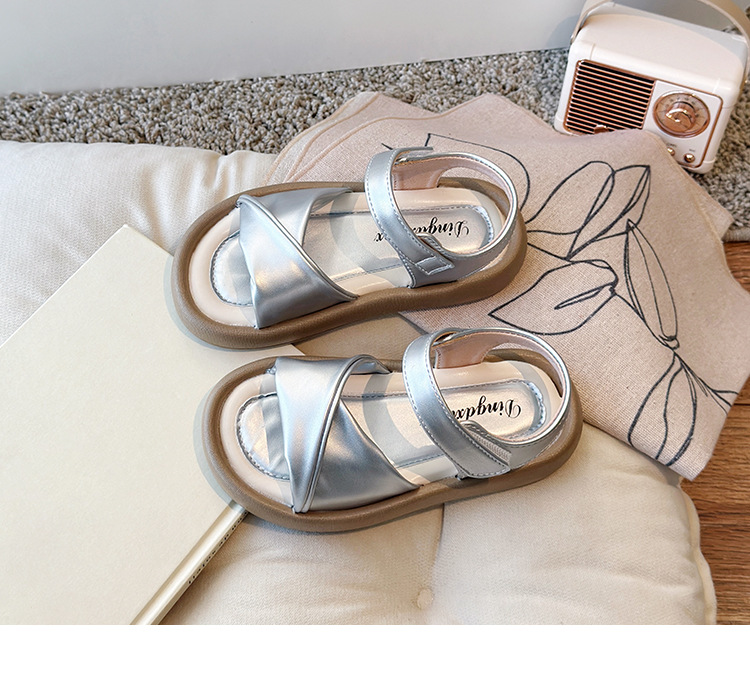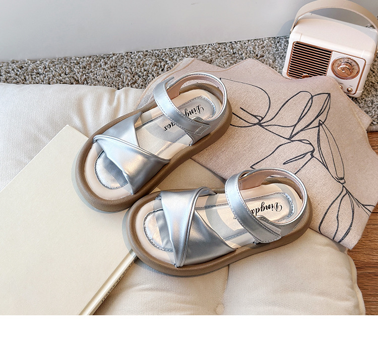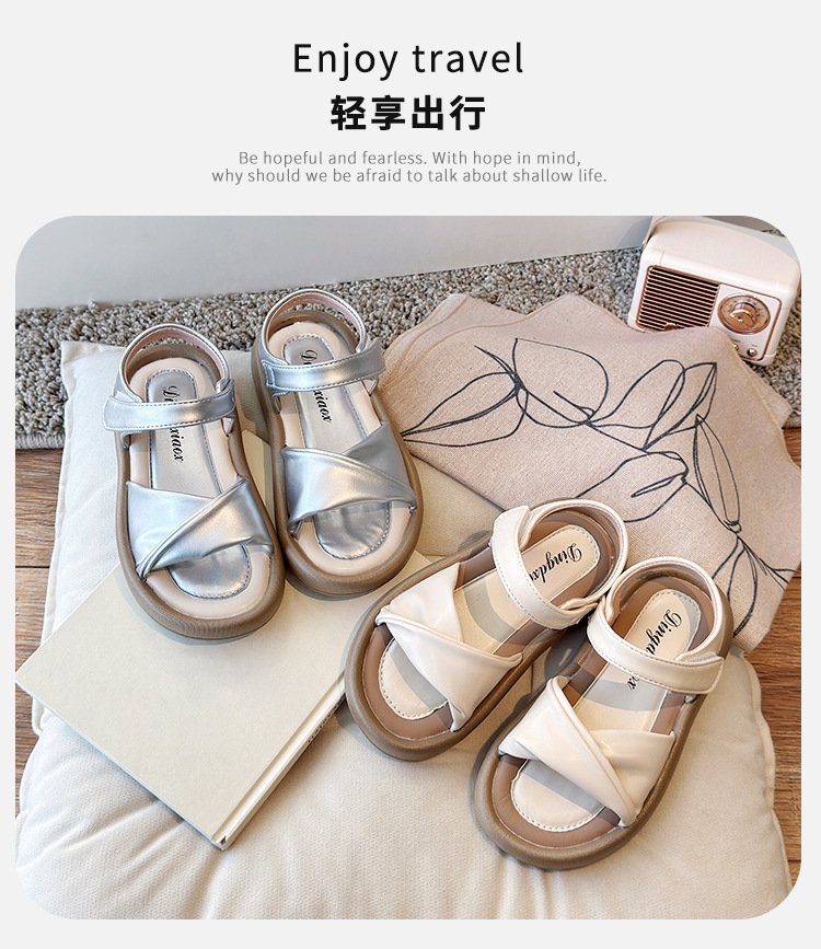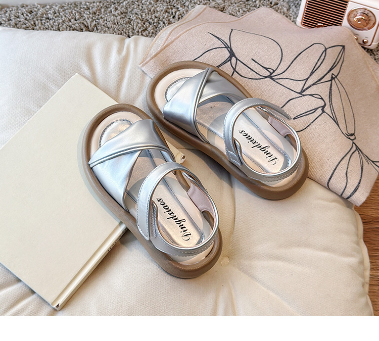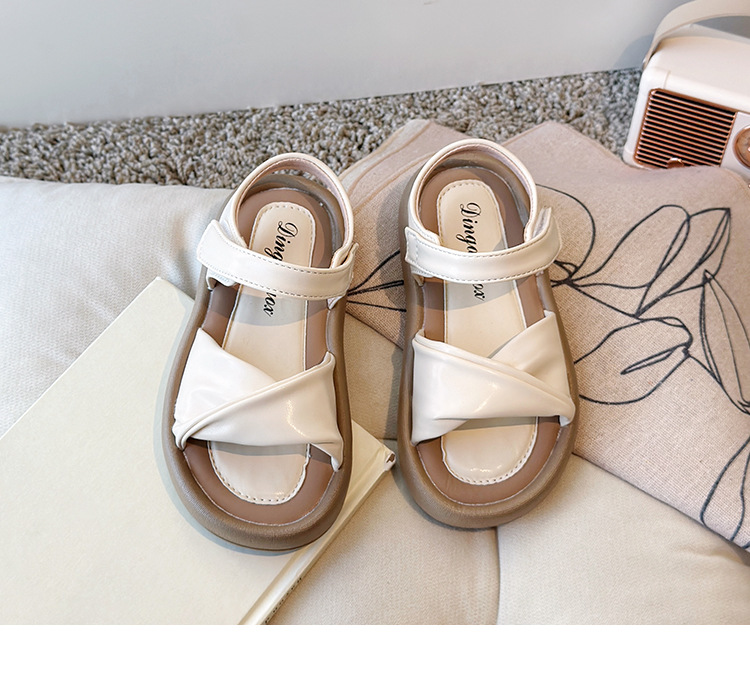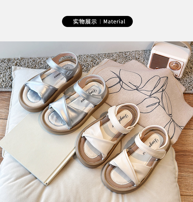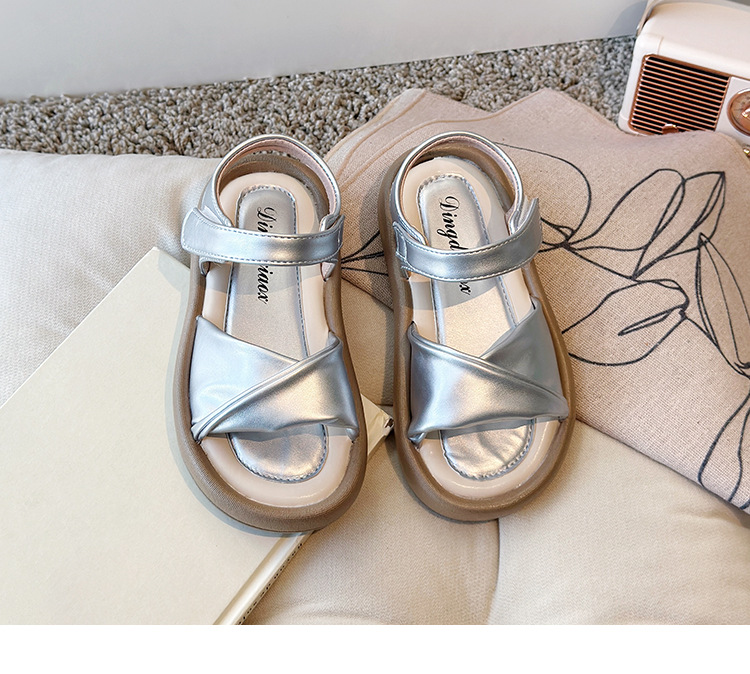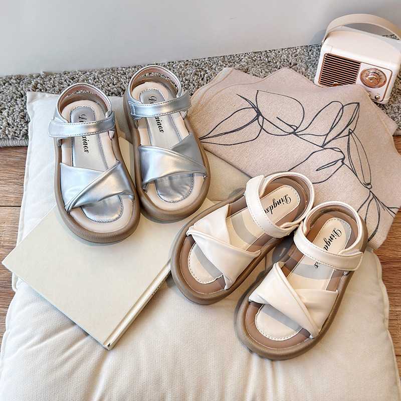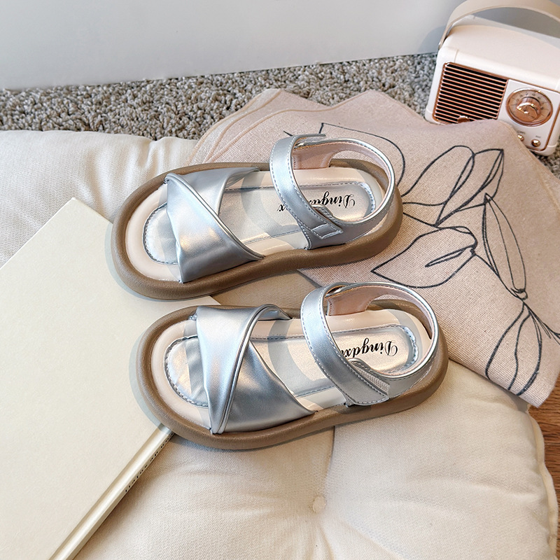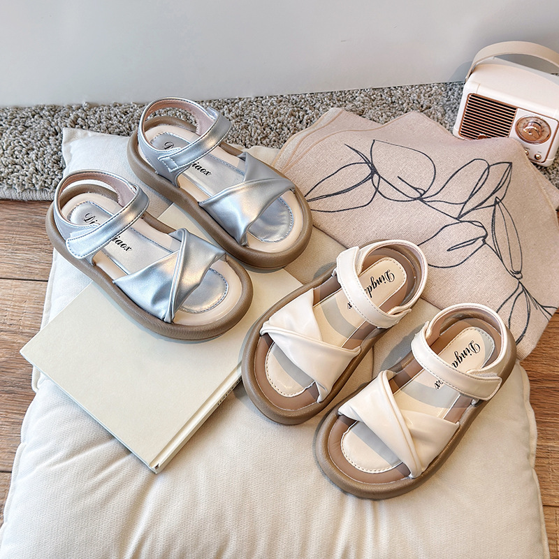 Детская обувь для девочек Сандалии летом 2025 года корейская минималистская ветрозащитная нескользящая детская обувь носит пляжные кожаные туфли для девочек