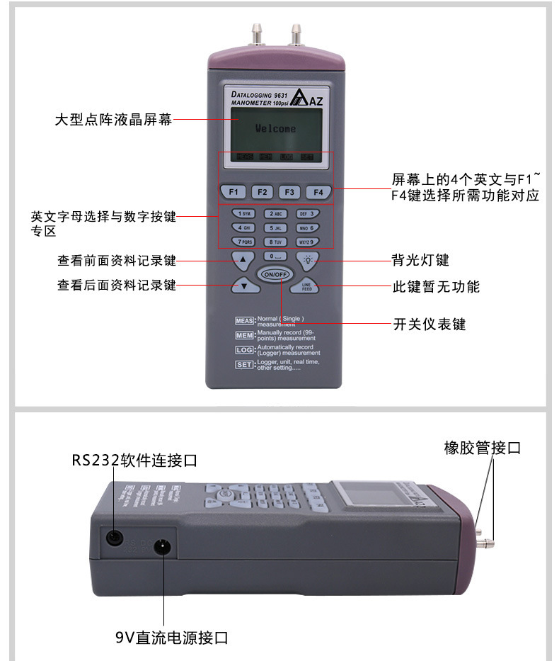 Hengxin AZ9631 цифровой манометр воздуха манометр промышленный автоматический регистратор электронный дифференциальный манометр