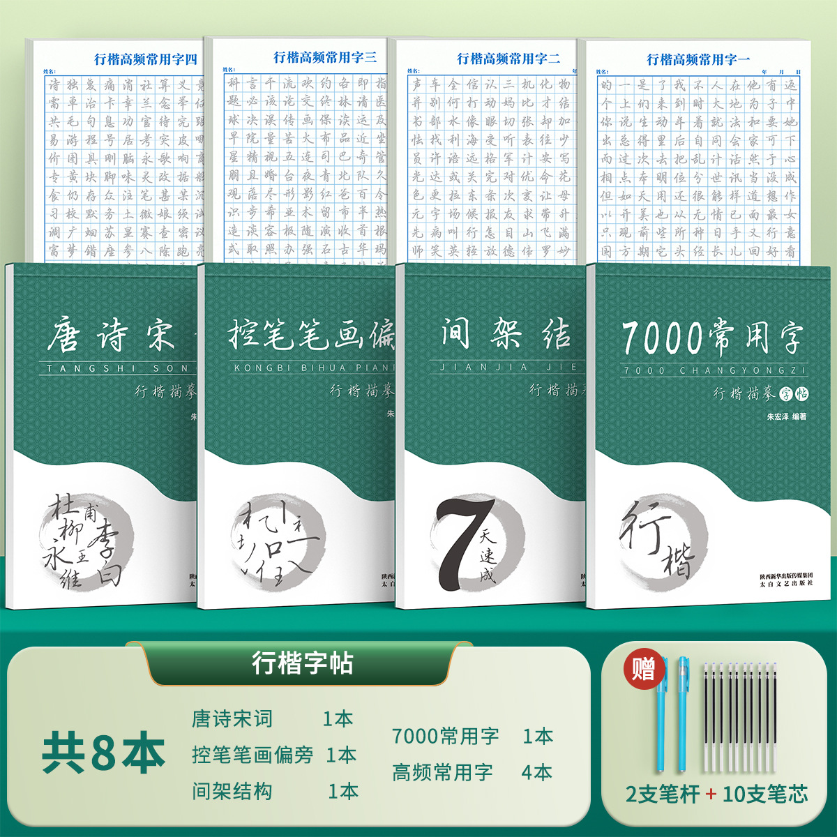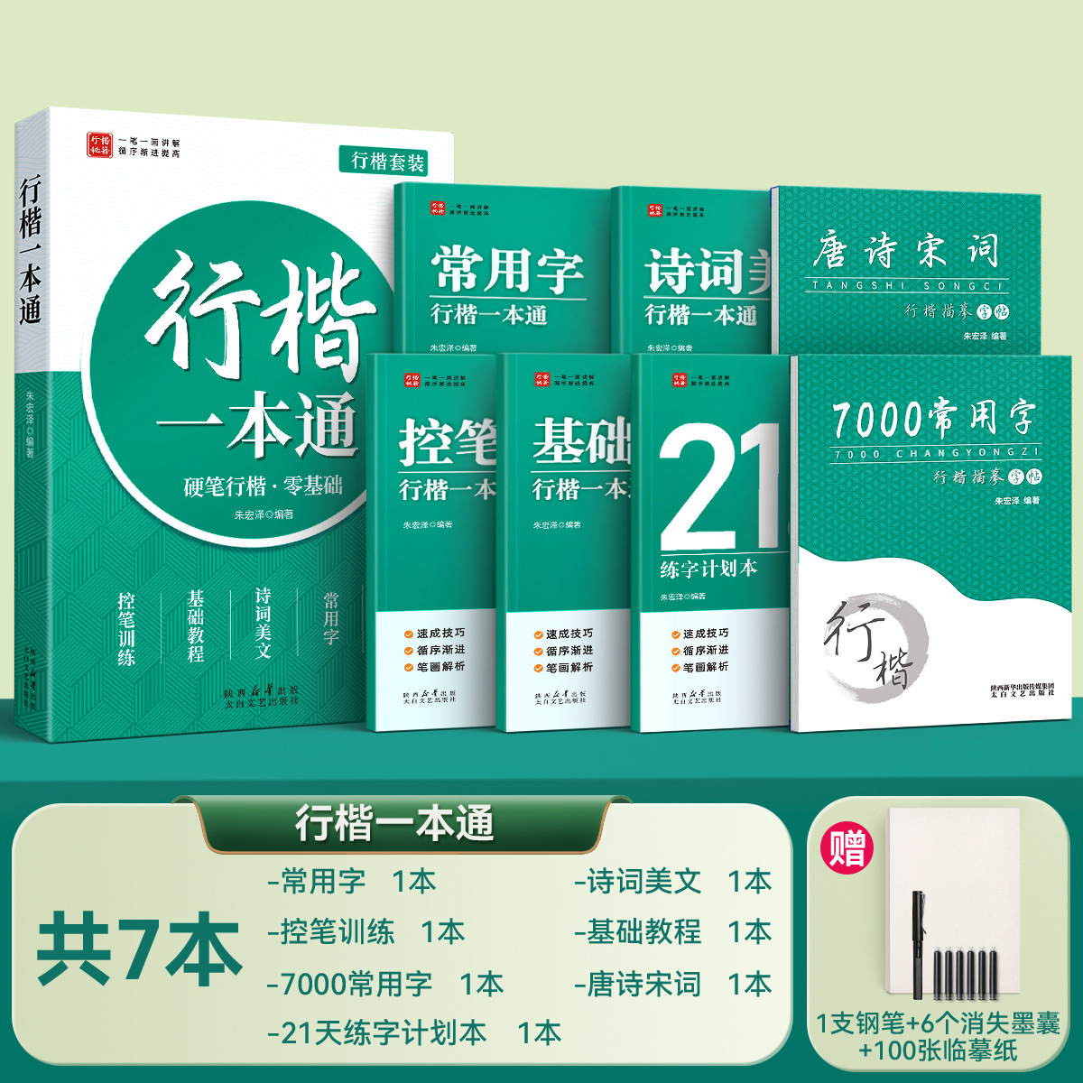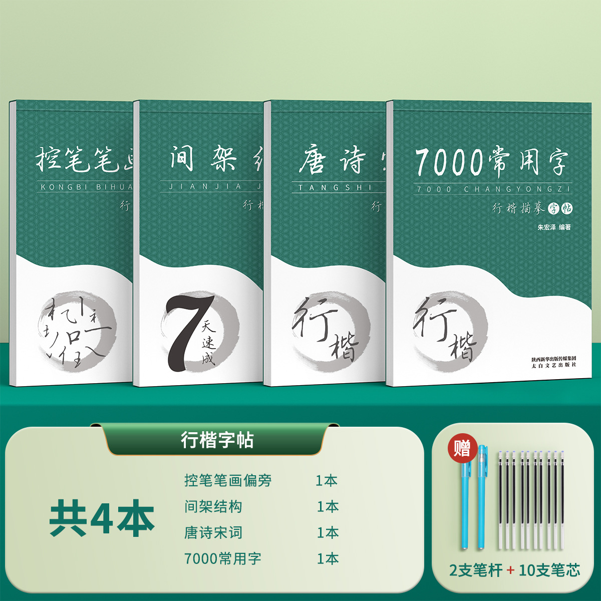 [7 000 широко используемых слов] 10 бесплатных стержней + 2 держателя для ручек.; [Полный набор из 4 книг для начинающих] 10 бесплатных стержней + 2 держателя для ручек.; [Tang Poetry и Song Ci] 10 бесплатных стержней + 2 держателя для ручек; [Непрерывные мазки ручки] 10 бесплатных стержней + 2 держателя для ручек.; [Трансформальная структура] Бесплатно 10 стержней + 2 держателя для ручек.; [8 книг] 4 книги в обычном сценарии + 4 книги высокочастотной каллиграфической бумаги, обычно используемой для каллиграфии.; [14 книг] 4 книги в обычном сценарии + 10 бумаг для каллиграфии.; [7 книг] Один руководство по обычному сценарию + 7000 персонажей + поэзия Тан и поэзия Сун.; [10 книг] Один руководство по обычному сценарию + 4 высокочастотных символа + 1 книга по 7000 символов.; [27 книг] Полный набор обычных сочетаний сценариев.