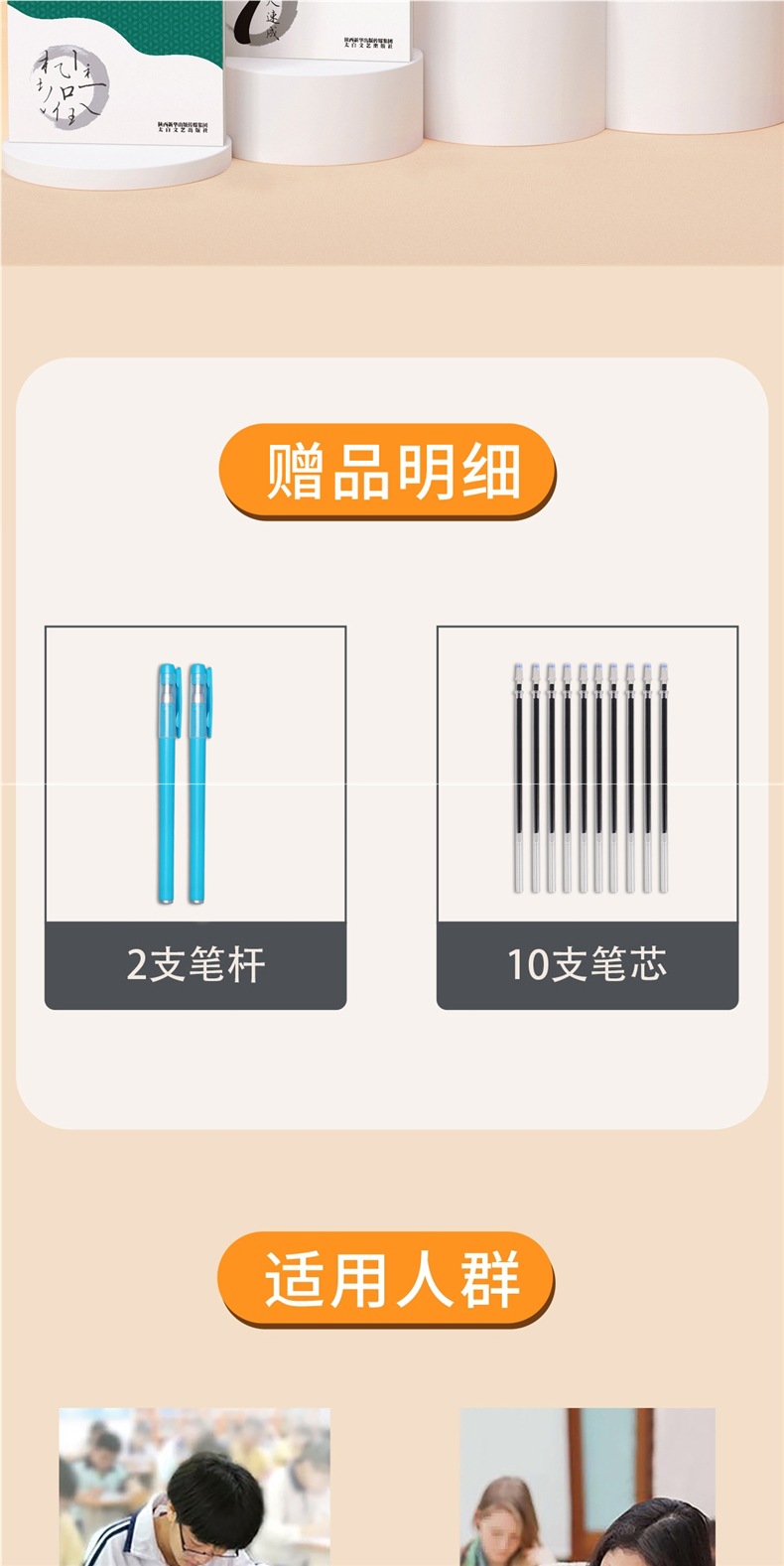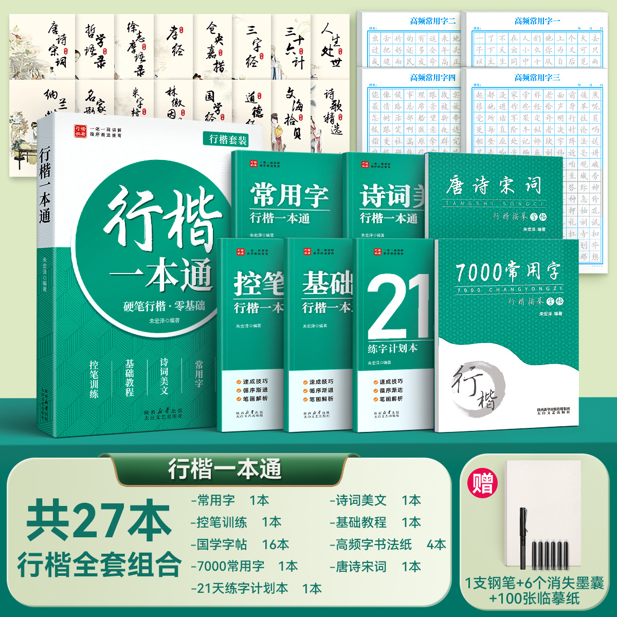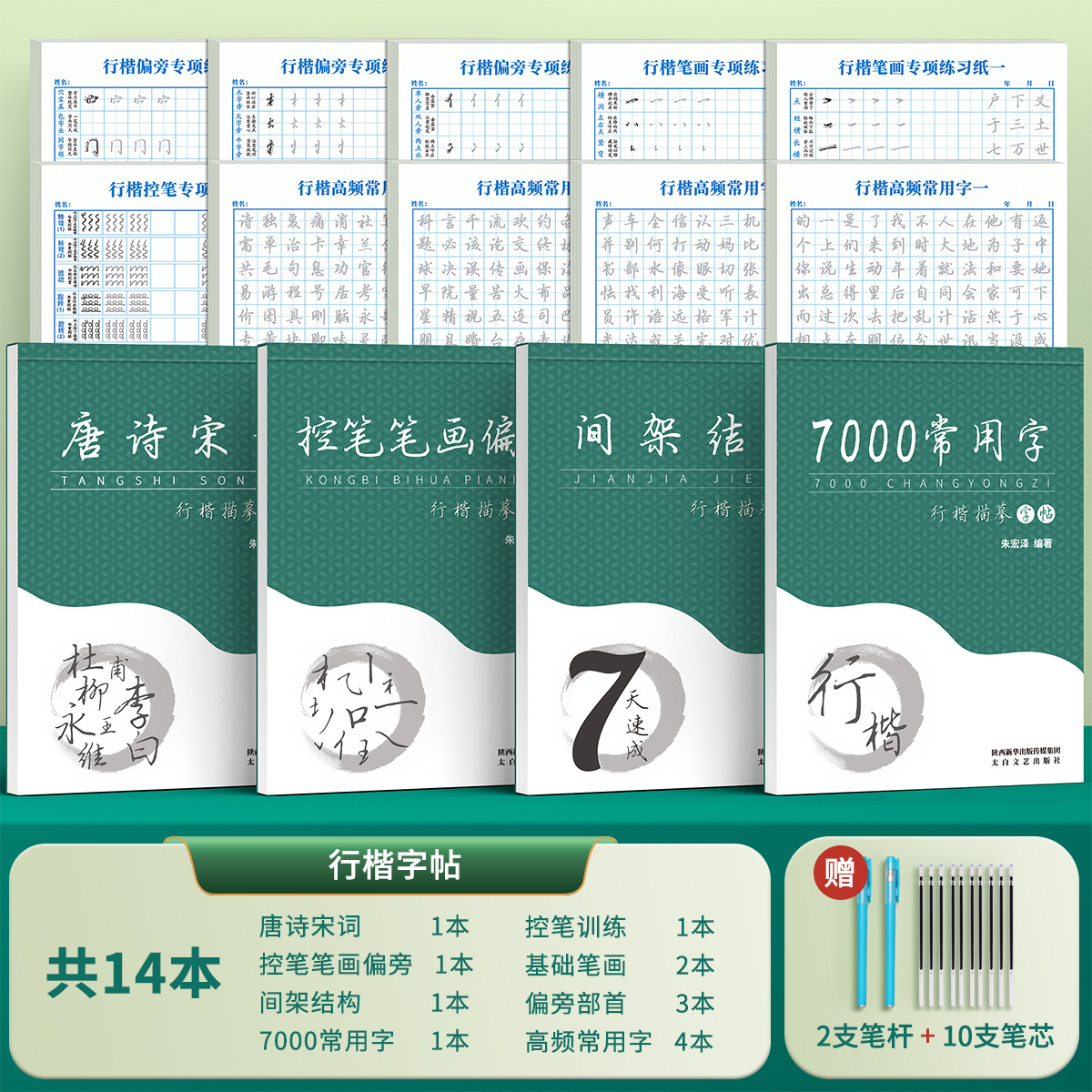 [7 000 широко используемых слов] 10 бесплатных стержней + 2 держателя для ручек.; [Полный набор из 4 книг для начинающих] 10 бесплатных стержней + 2 держателя для ручек.; [Tang Poetry и Song Ci] 10 бесплатных стержней + 2 держателя для ручек; [Непрерывные мазки ручки] 10 бесплатных стержней + 2 держателя для ручек.; [Трансформальная структура] Бесплатно 10 стержней + 2 держателя для ручек.; [8 книг] 4 книги в обычном сценарии + 4 книги высокочастотной каллиграфической бумаги, обычно используемой для каллиграфии.; [14 книг] 4 книги в обычном сценарии + 10 бумаг для каллиграфии.; [7 книг] Один руководство по обычному сценарию + 7000 персонажей + поэзия Тан и поэзия Сун.; [10 книг] Один руководство по обычному сценарию + 4 высокочастотных символа + 1 книга по 7000 символов.; [27 книг] Полный набор обычных сочетаний сценариев.