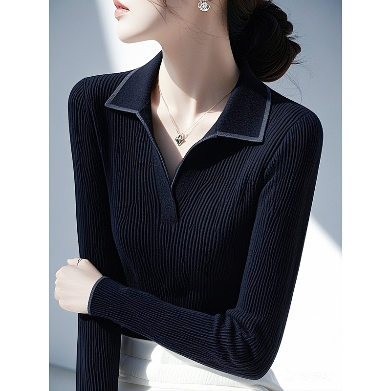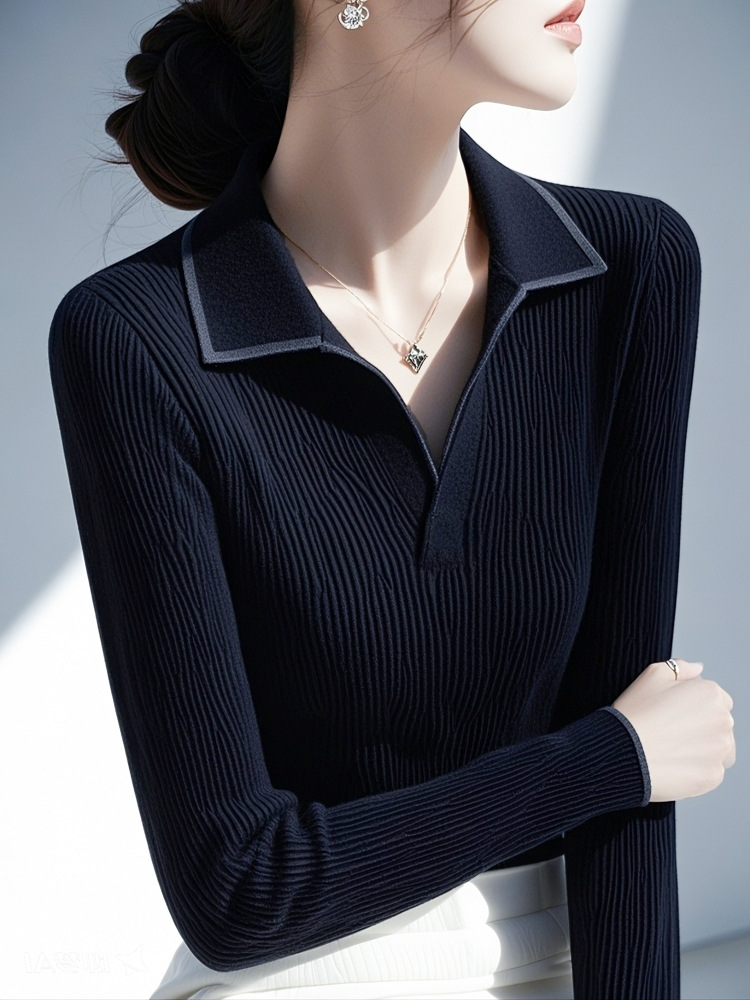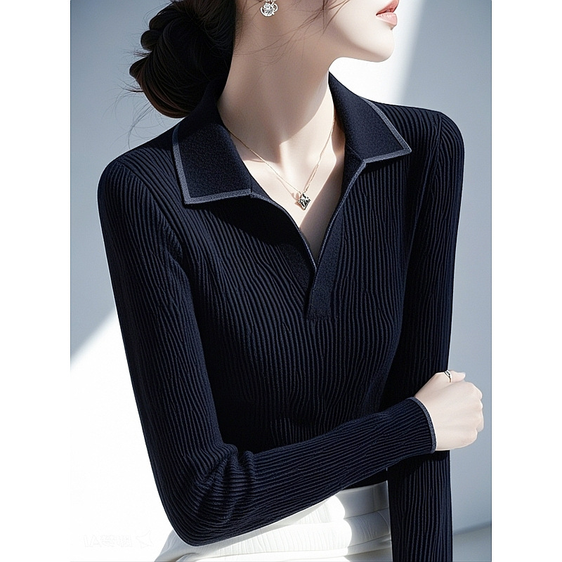 Уникальный красивый черный свитер женский 2025 новый весенний ленивый продвинутый супер красивый трикотажный топ с отворотом