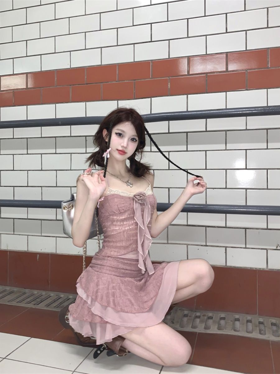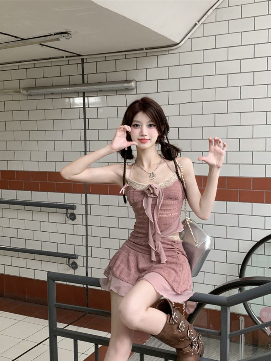 розовый слинг; розовая юбка; Розовые подтяжки + юбка [комплект из двух предметов]