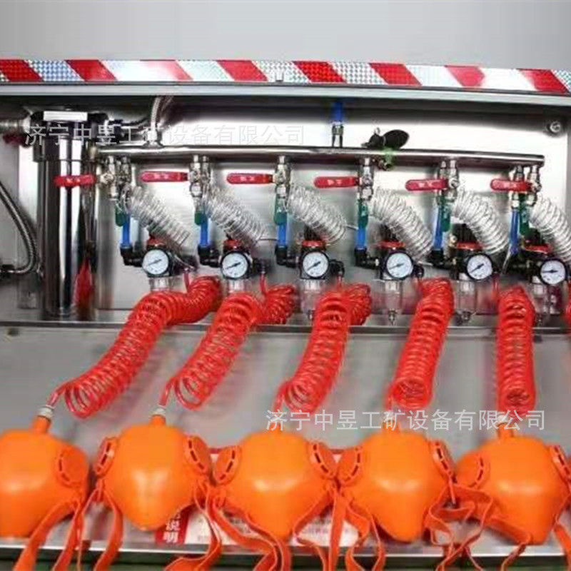 饮水出口:5个使用软管(有卫生许可证,能够饮用)接出,和矿井压风自救装置配套使用;