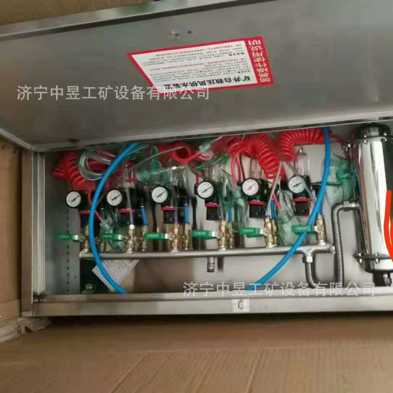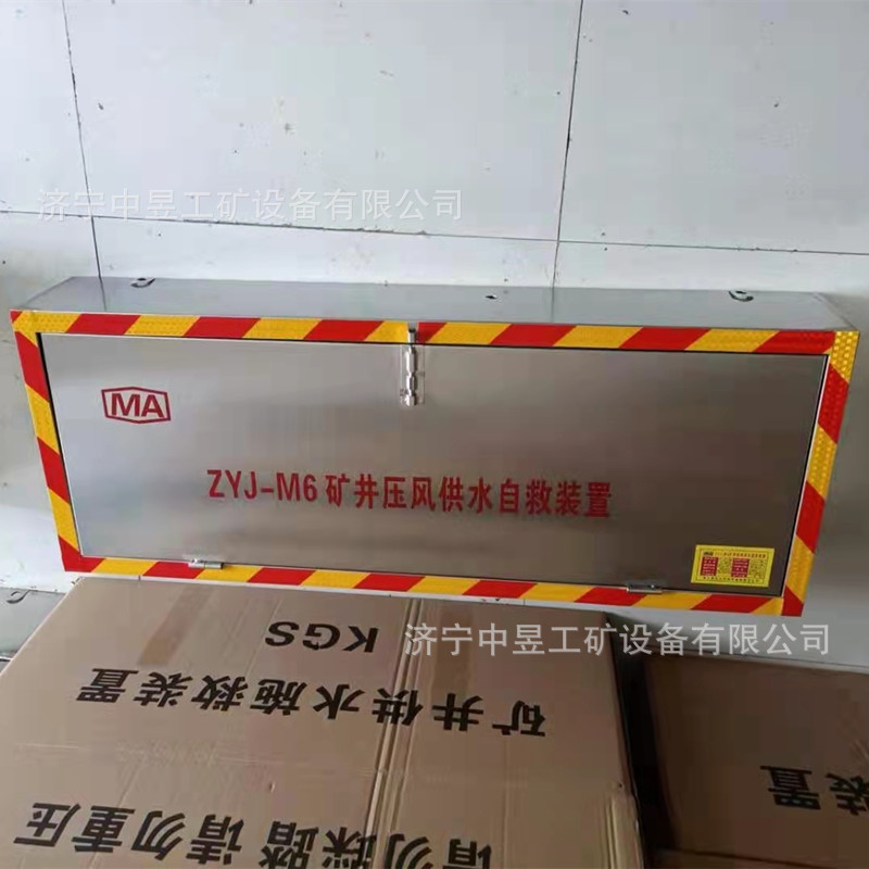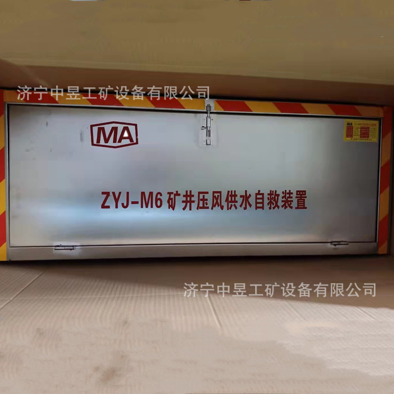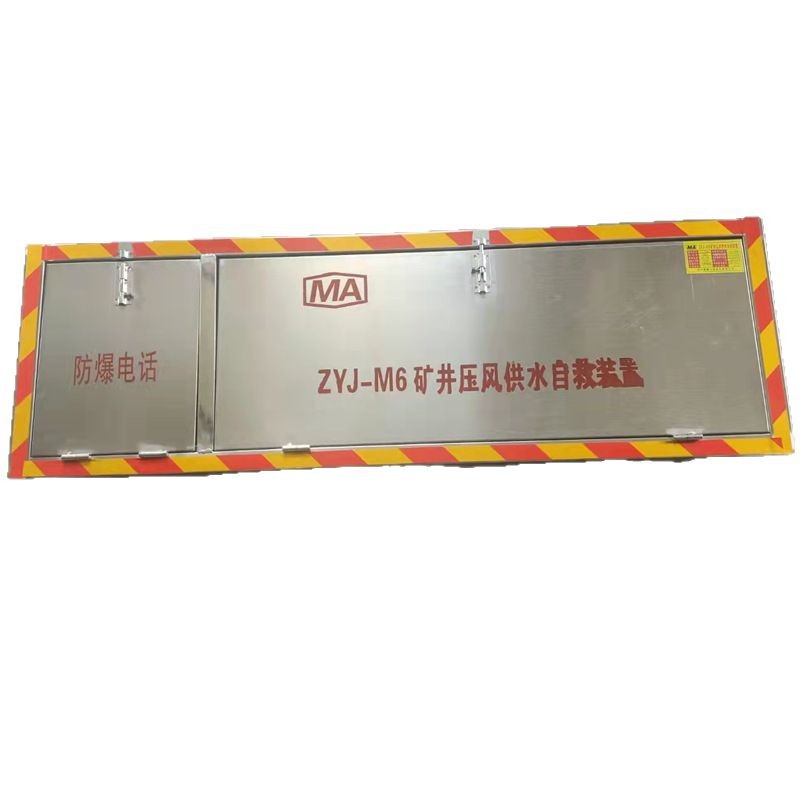 ZYJ压风供水自救装置安装时,先将减压阀压力调至最低,即用随设备配的内六角板手,拧开减压阀螺帽,逆时针方向调到底,压力表显示为零。然后接好井下供水管道。顺时针方向缓缓调整减压阀,待压力表指针指向(0.5Mpa)时,停止调整,并拧上调节孔螺帽,再逐个打开每个供水阀门,看每个供水管是否有足够清洁水流出。若供水正常,请关上供水装置箱门,插好箱门插销。如在紧急情况下,井下人员需要施救饮水时,则打开箱门,再打开相应出水口的阀门,就可以直接喝上干净的水,以等待及时的救援。注意:不能猛力拉拽!
