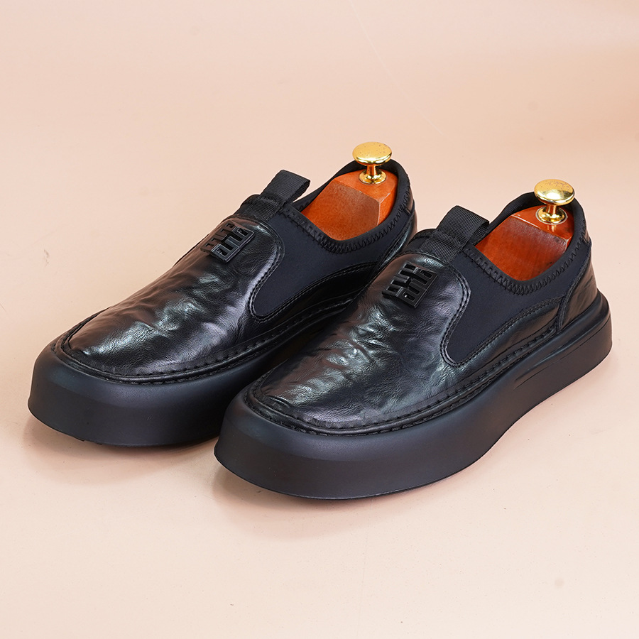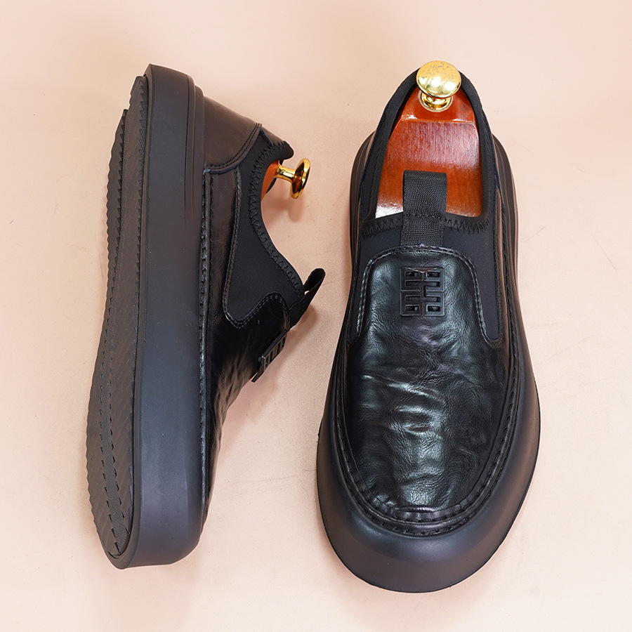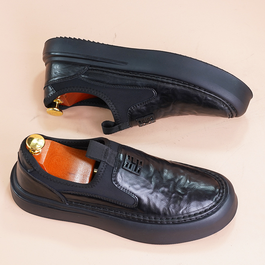 2025 новая повседневная обувь Lefu дышащая кожа одна педаль мужская обувь на толстой подошве, дикие модные кожаные туфли Корейская версия повседневного