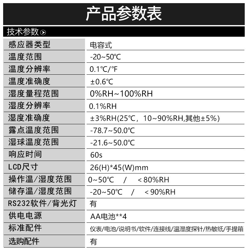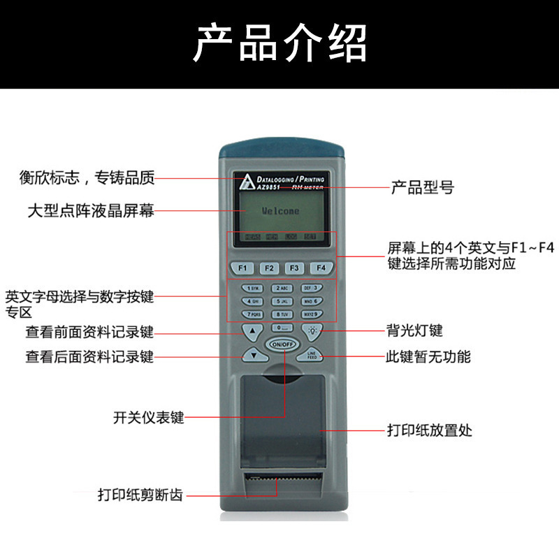 台湾衡欣AZ9851列表式温湿度计,带记录,带打印功能,可同时检测温度,湿度,露点,湿球温度等