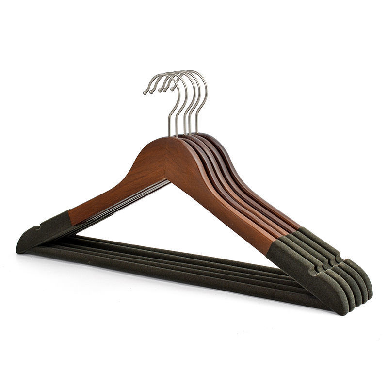 Флокированные вешалки из цельного дерева для домашнего обихода для взрослых