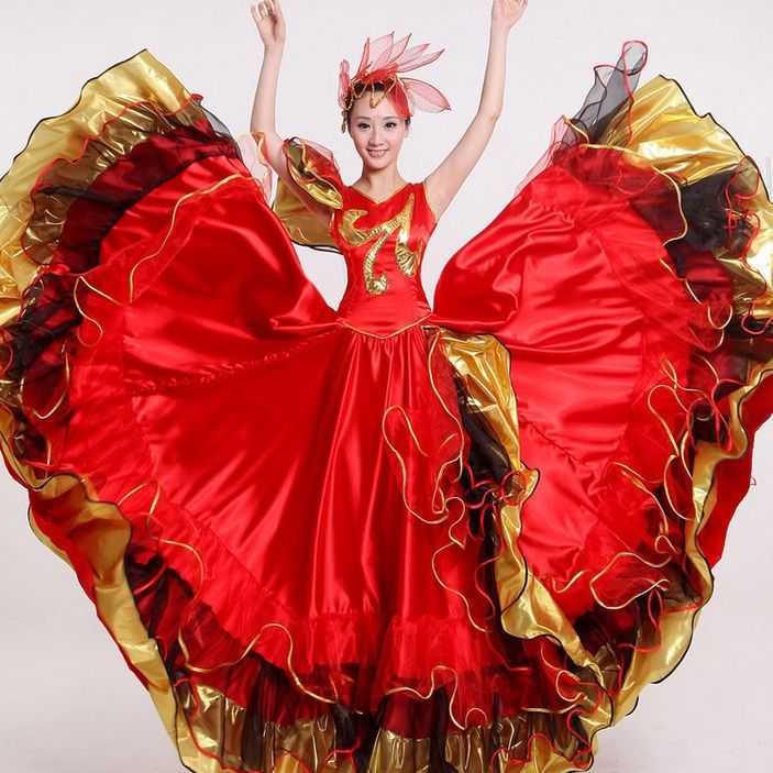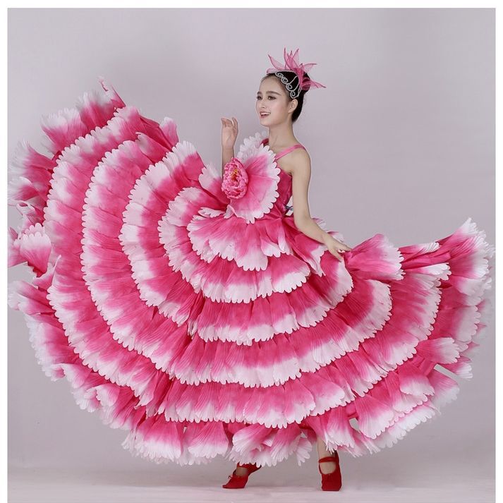 Испанский танец корриды большая юбка с лепестками юбка сценическое платье танцевальное платье