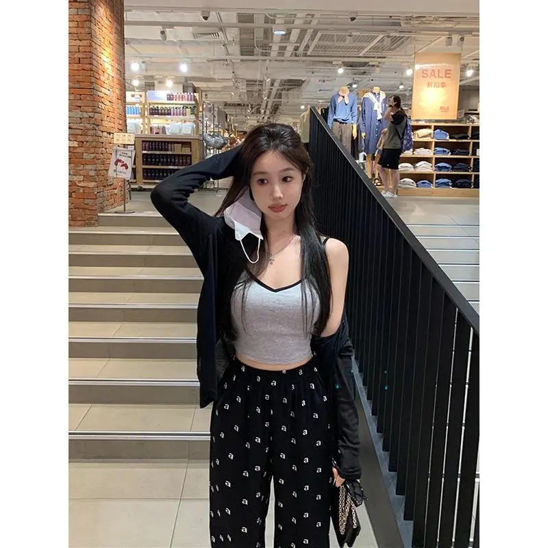 Тонкий кардиган Короткая куртка с камзолом жилет женский осенний костюм с принтом повседневные брюки Соленое платье с набором из трех частей