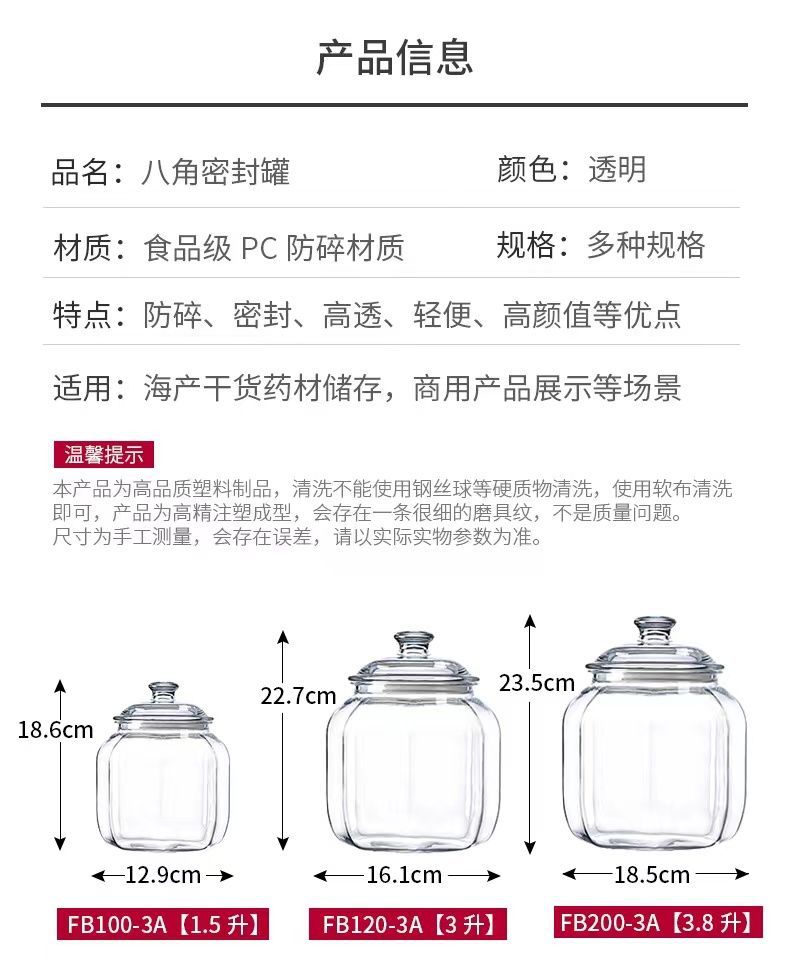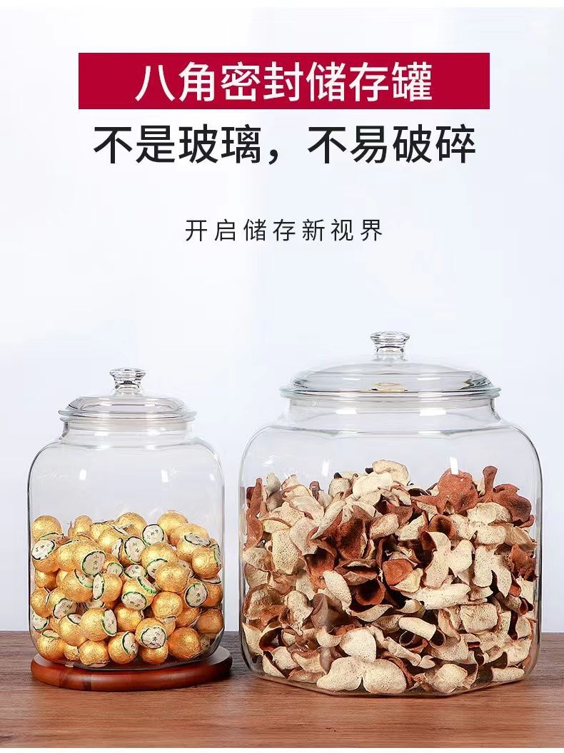 Чайная банка большой емкости для хранения разных зерен прозрачная акриловая утолщение восьмиугольная влагостойкость