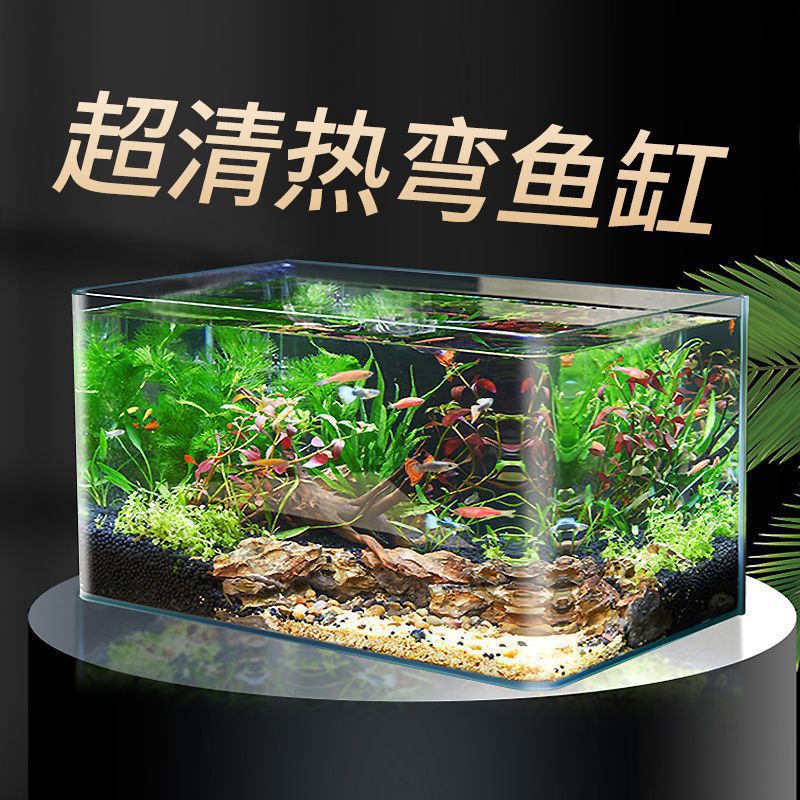 Горячий изогнутый стеклянный аквариум для гостиной Небольшой аквариумный рабочий стол дома Золотая рыбка воды ландшафтная прямоугольная экологическая голая аквариум