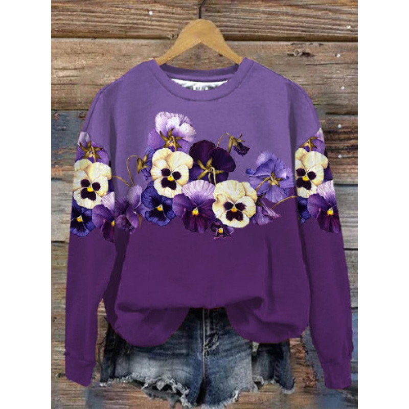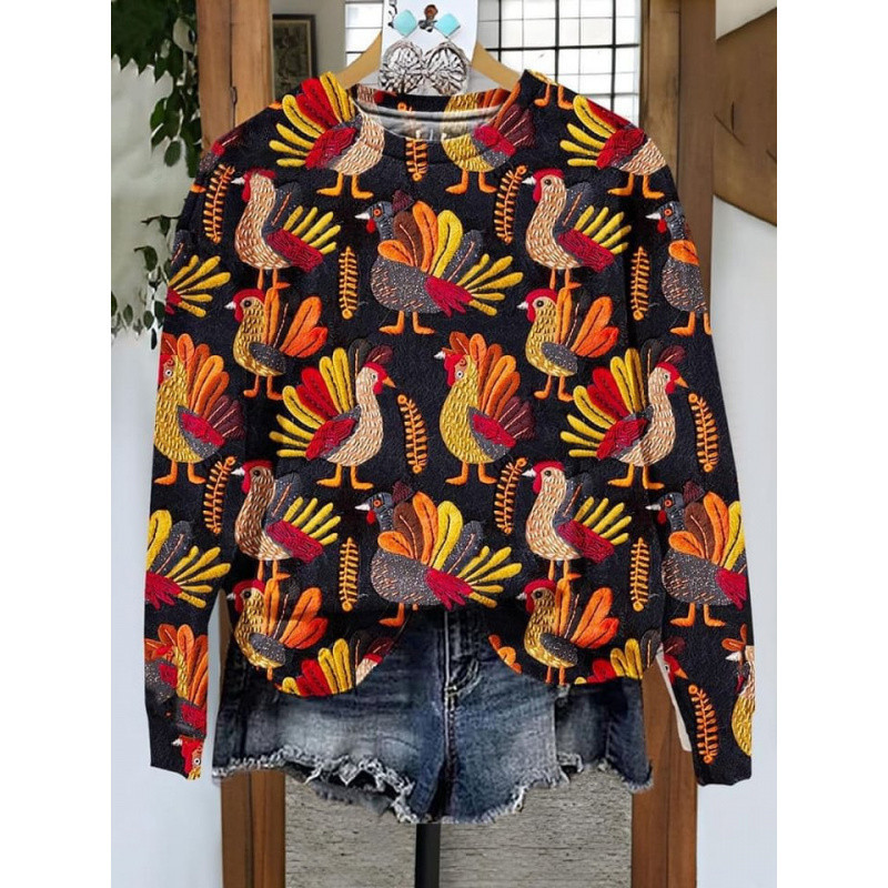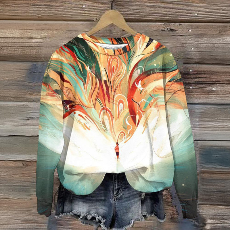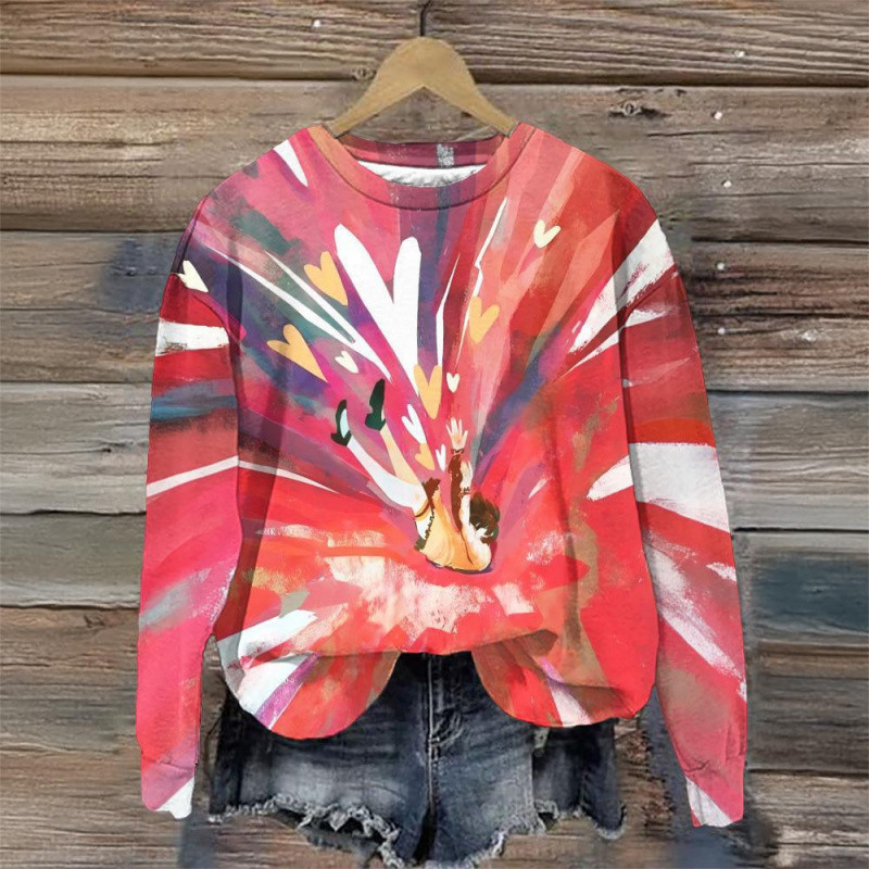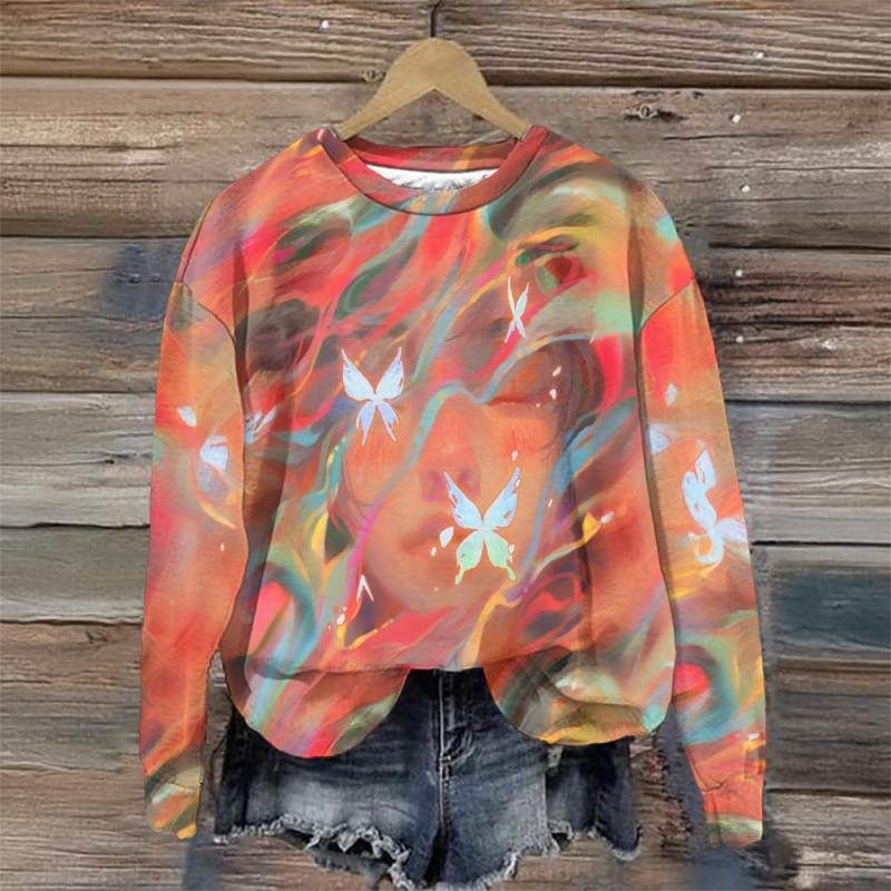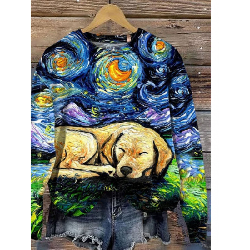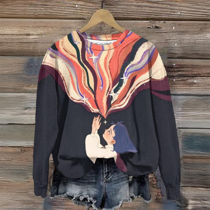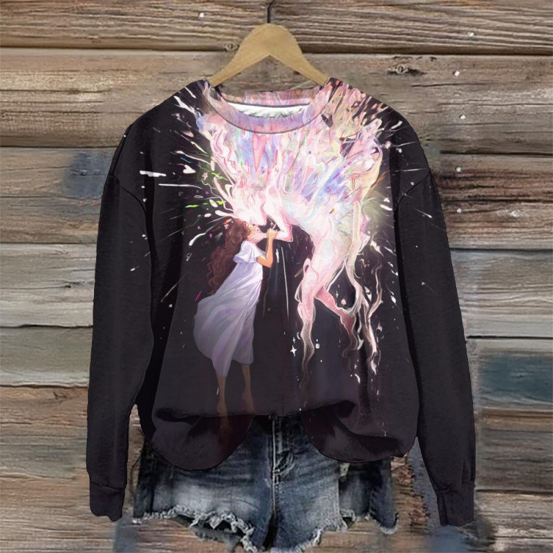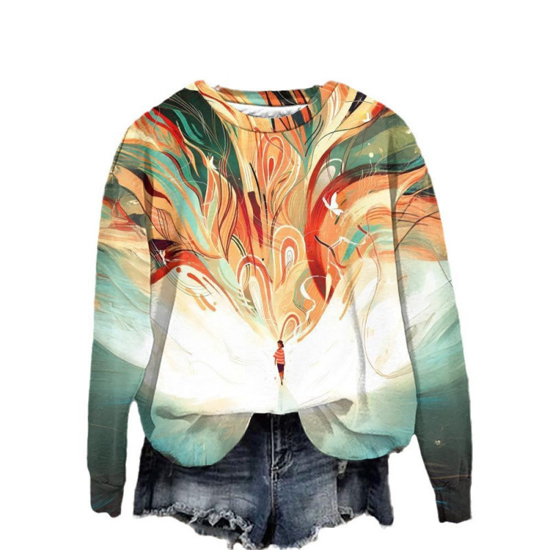 2024 осень-зима трансграничный новый свиток 3 цифровой принт дамы уличный тренд с круглым воротником свитера топ