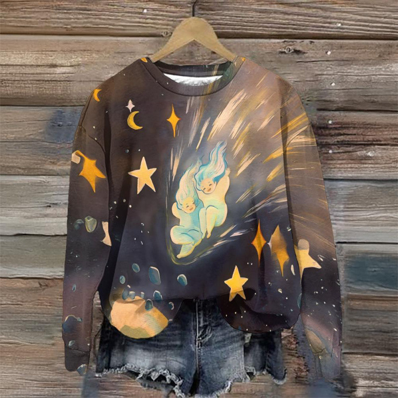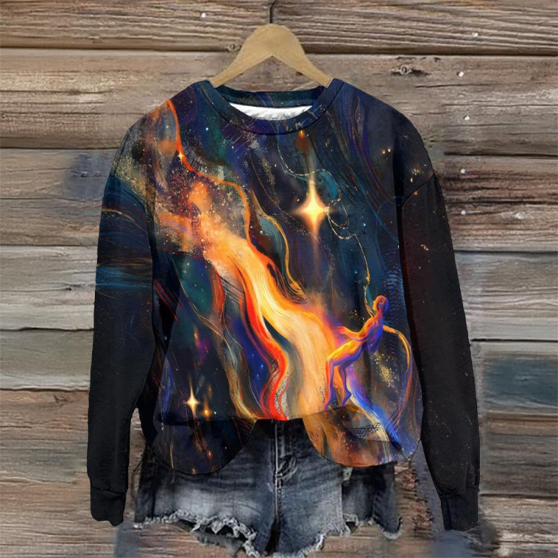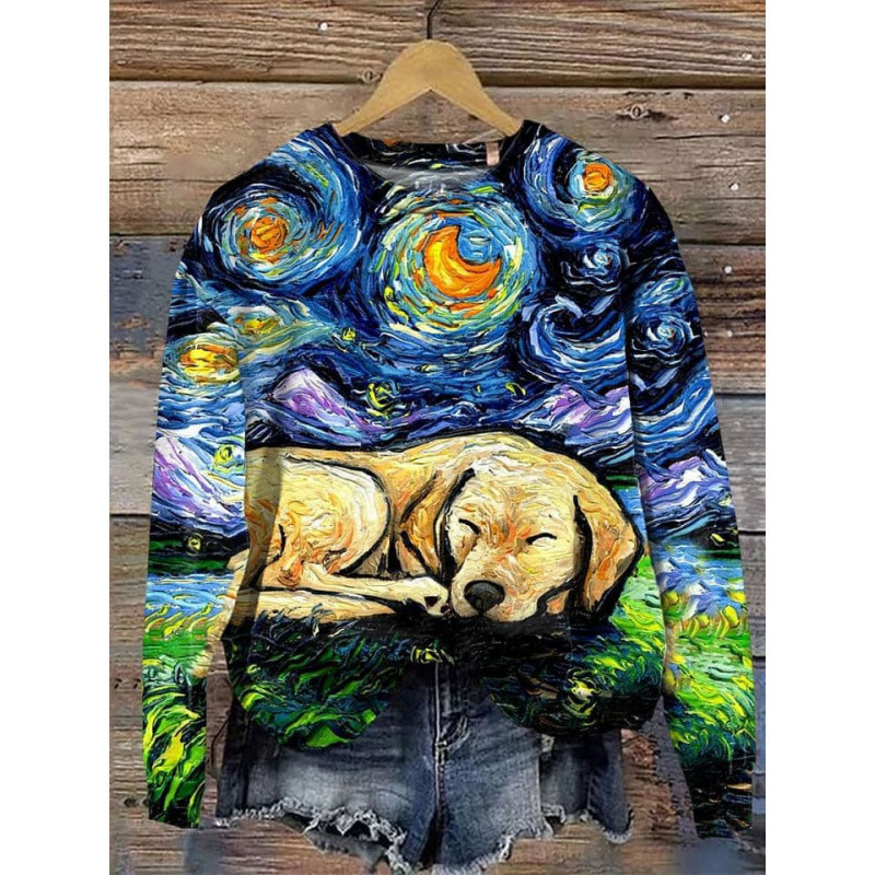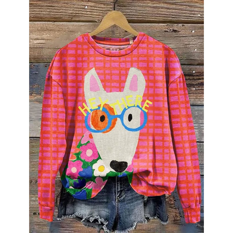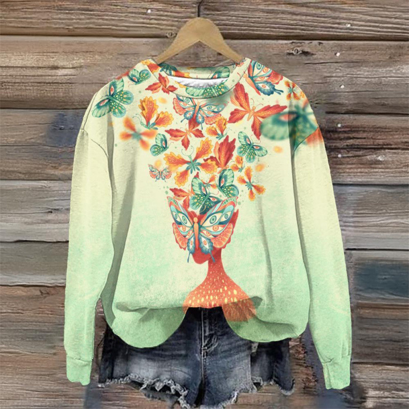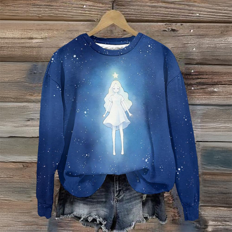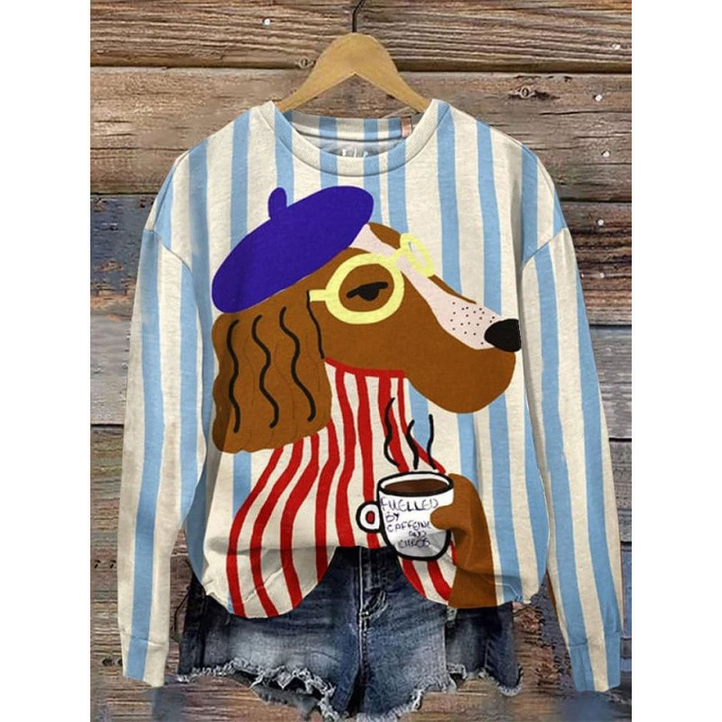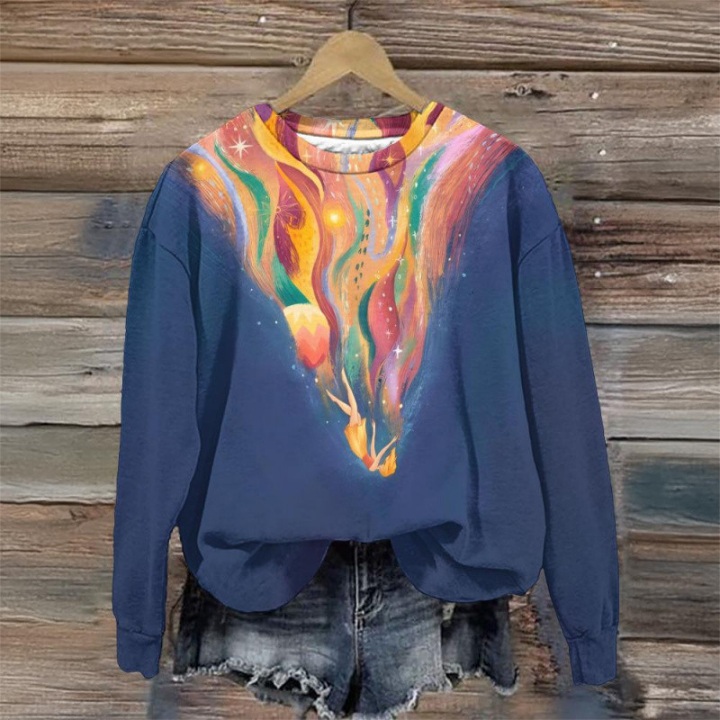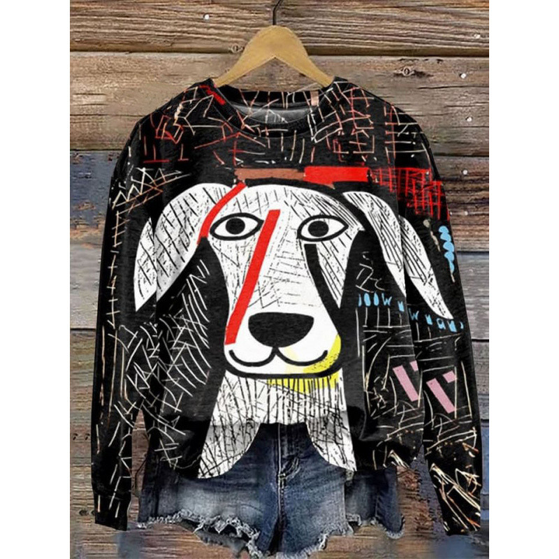 2024 осень-зима трансграничный новый свиток 3 цифровой принт дамы уличный тренд с круглым воротником свитера топ