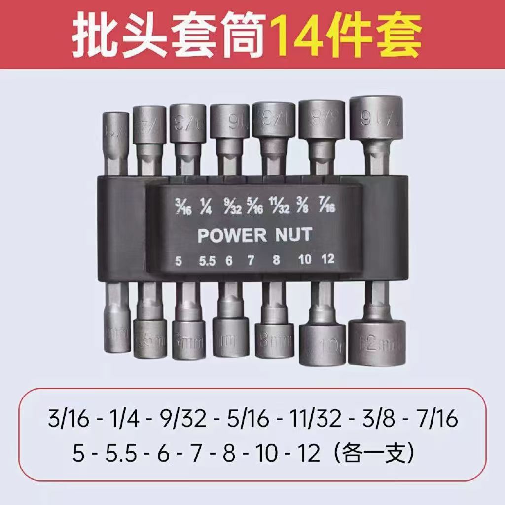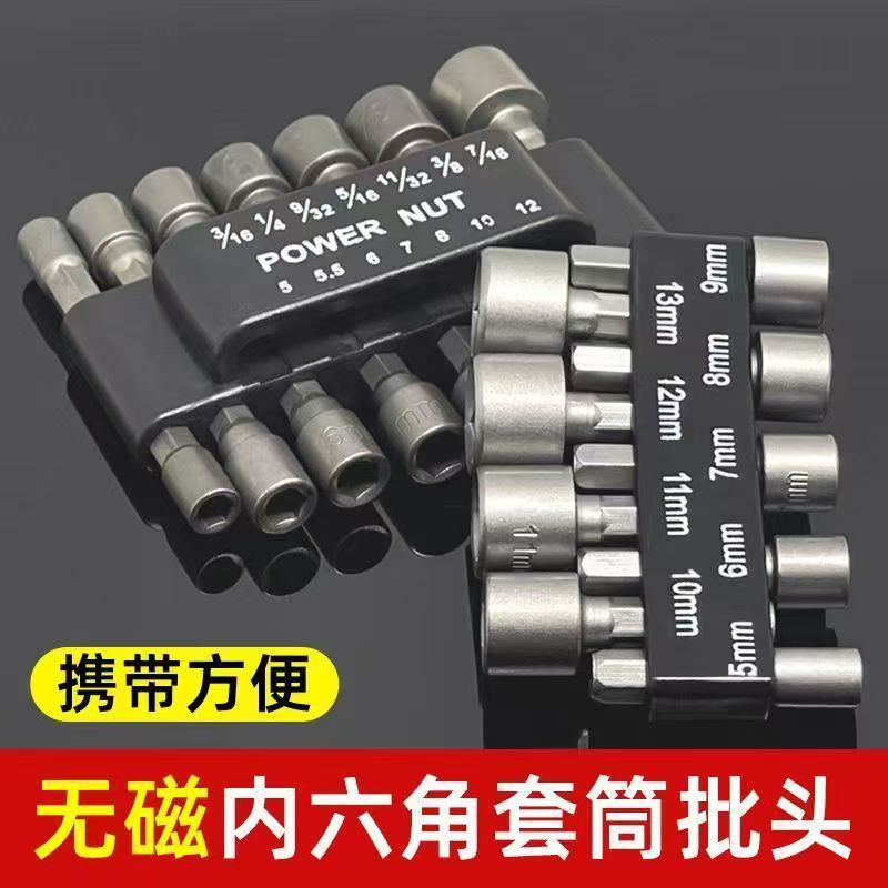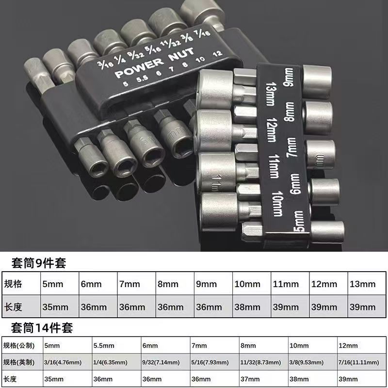 Производитель поставляет набор из 9 шестигранных головок, набор из 14 метрических и дюймовых шестигранных головок.