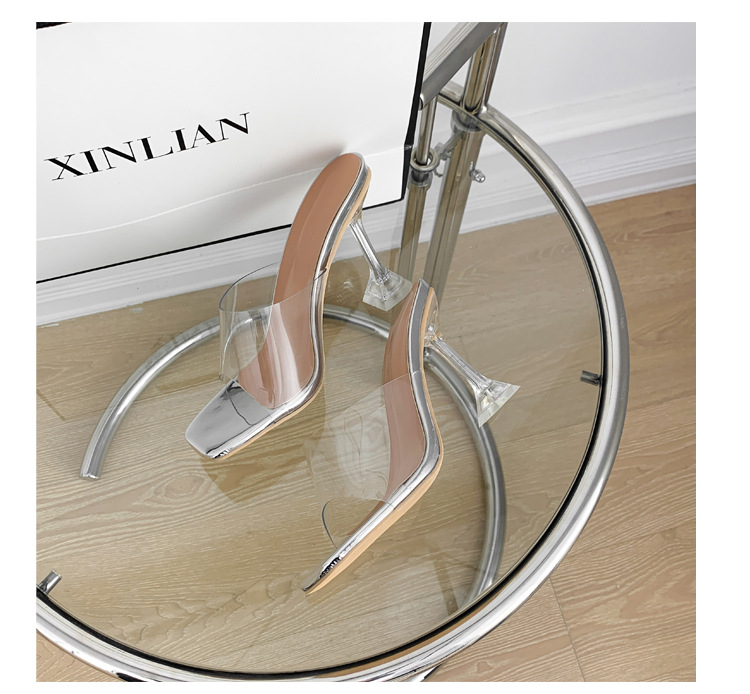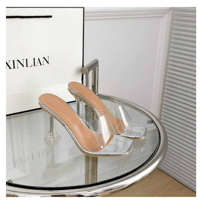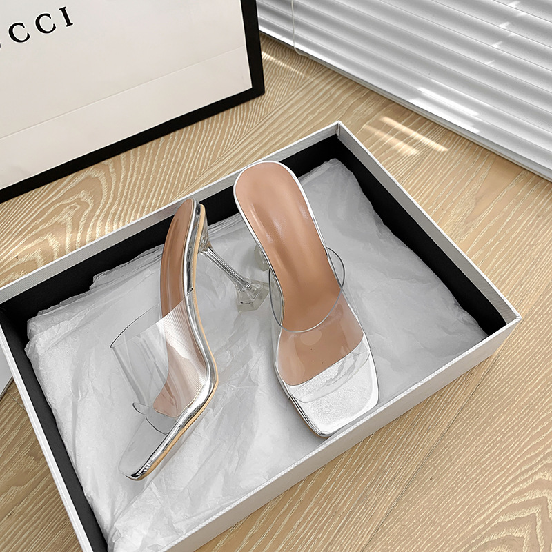 2023 Летний красный цвет тот же новый хрустальный пятно с открытыми пальцами сандалии женский ПВХ прозрачный на каблуке квадратная голова сандалии женский