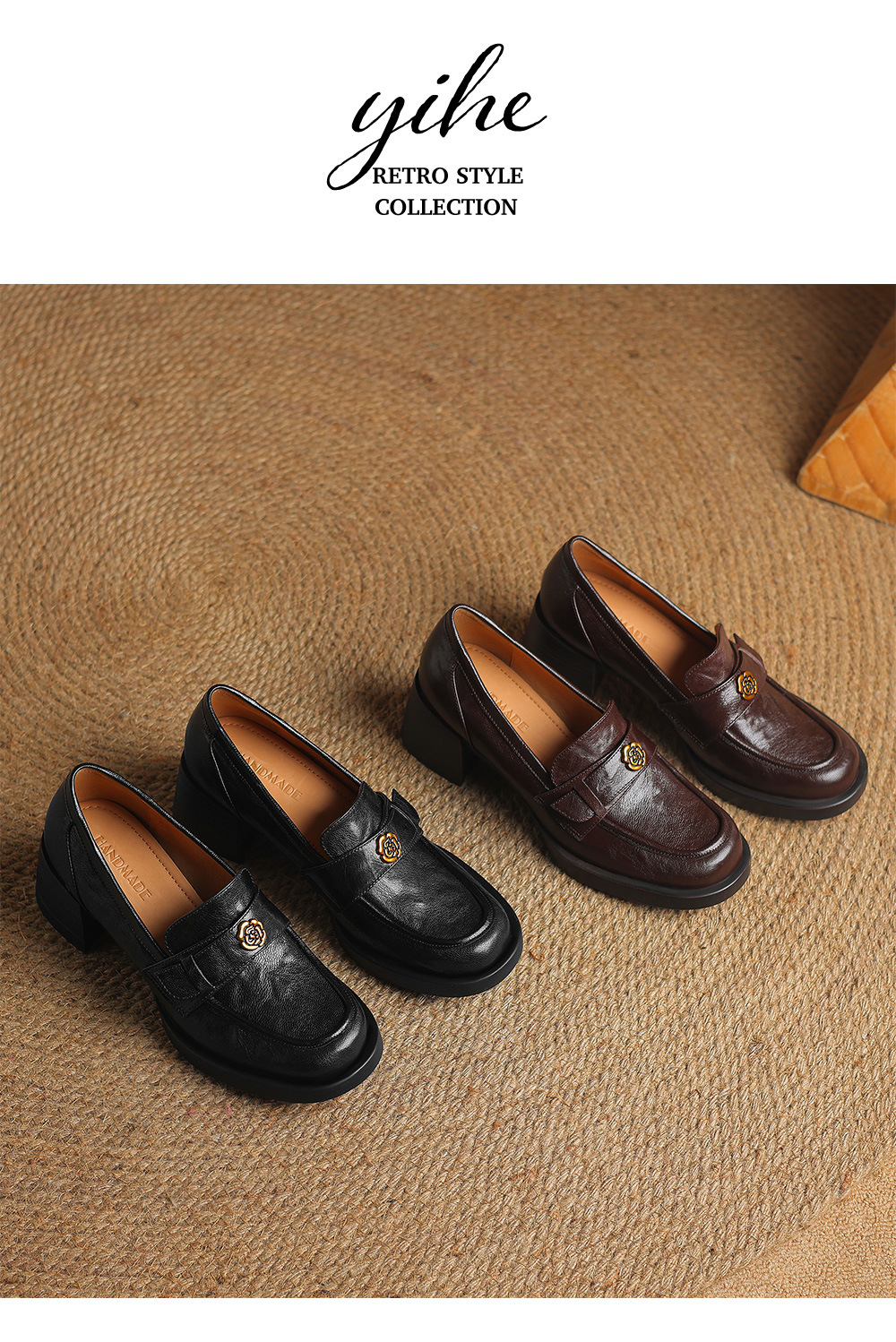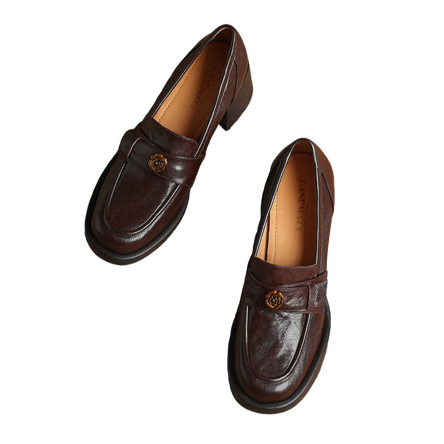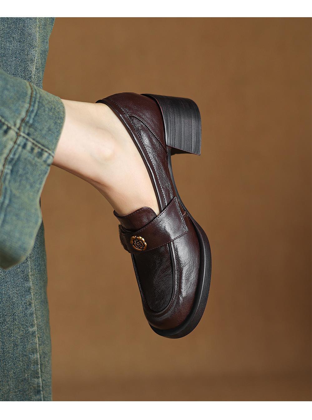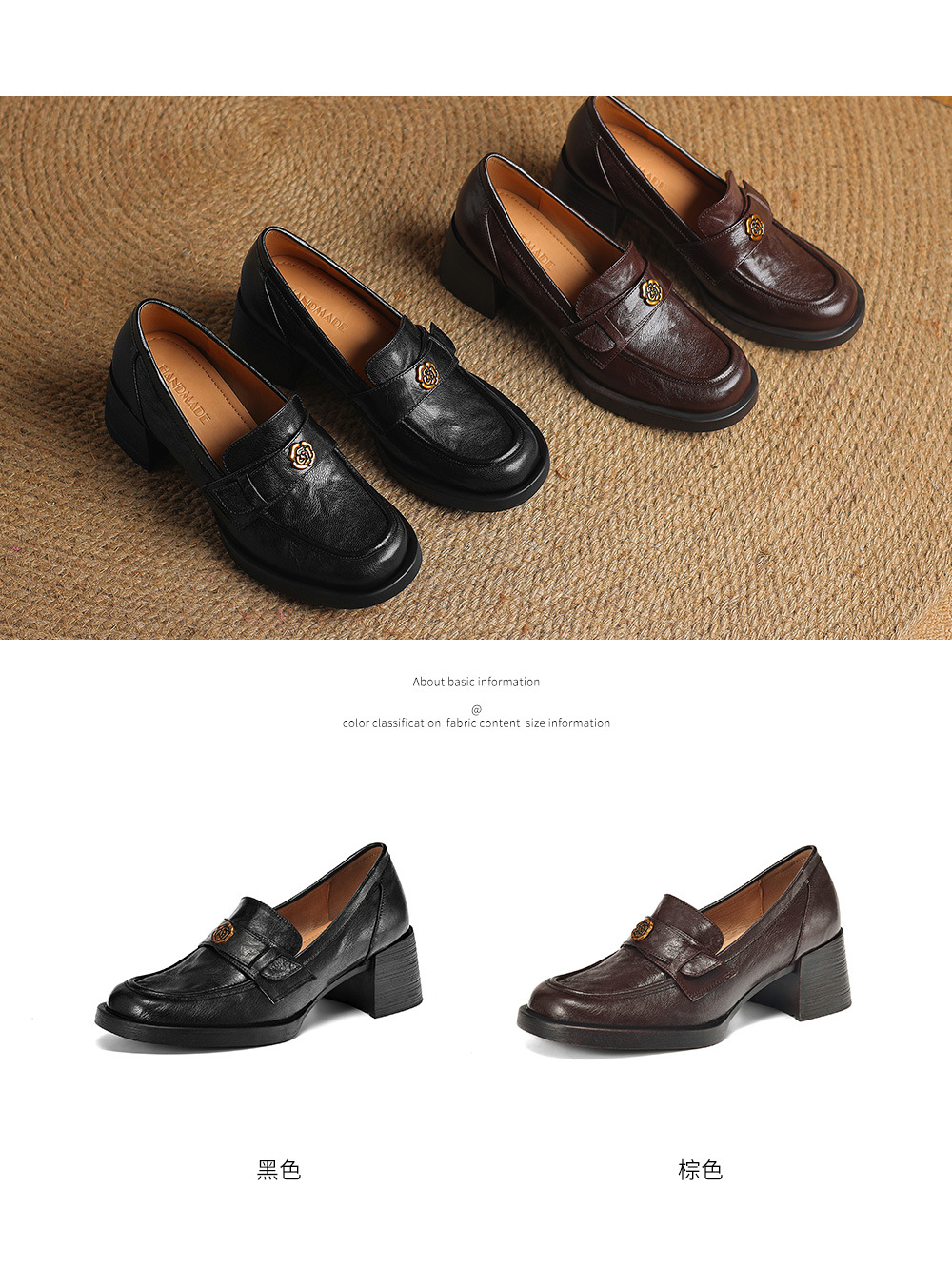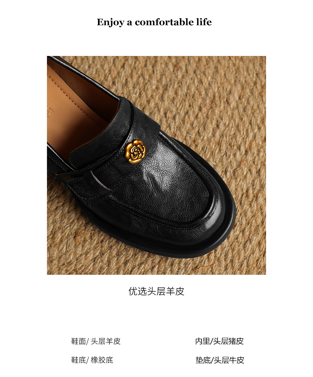 Мягкая овечья кожа черные туфли с высоким каблуком камелии рафу 2025 весна и осень новый британский стиль один педаль толстая подошва одиночные туфли для женщин