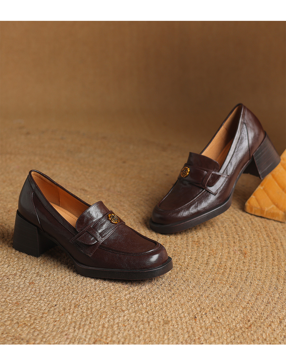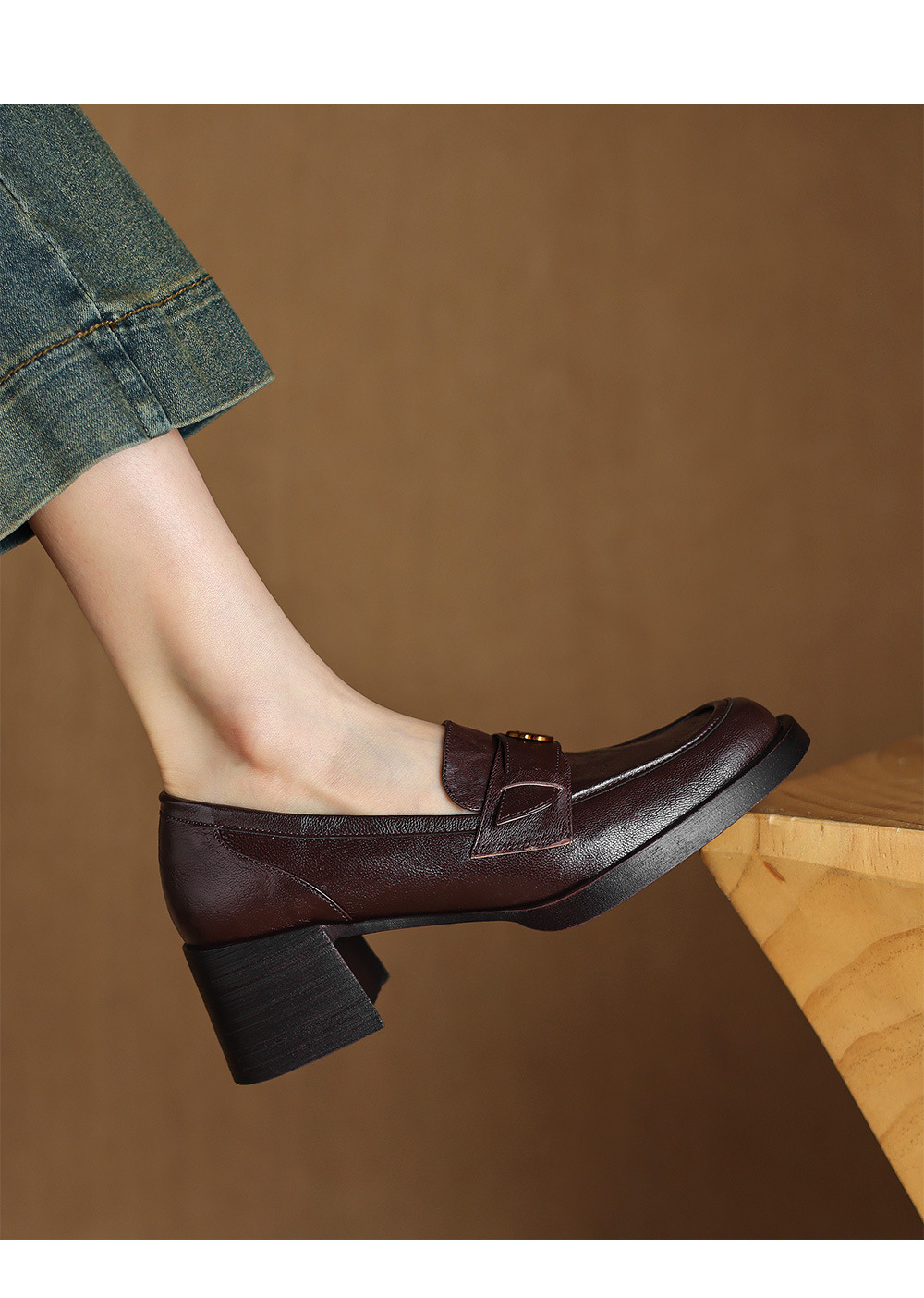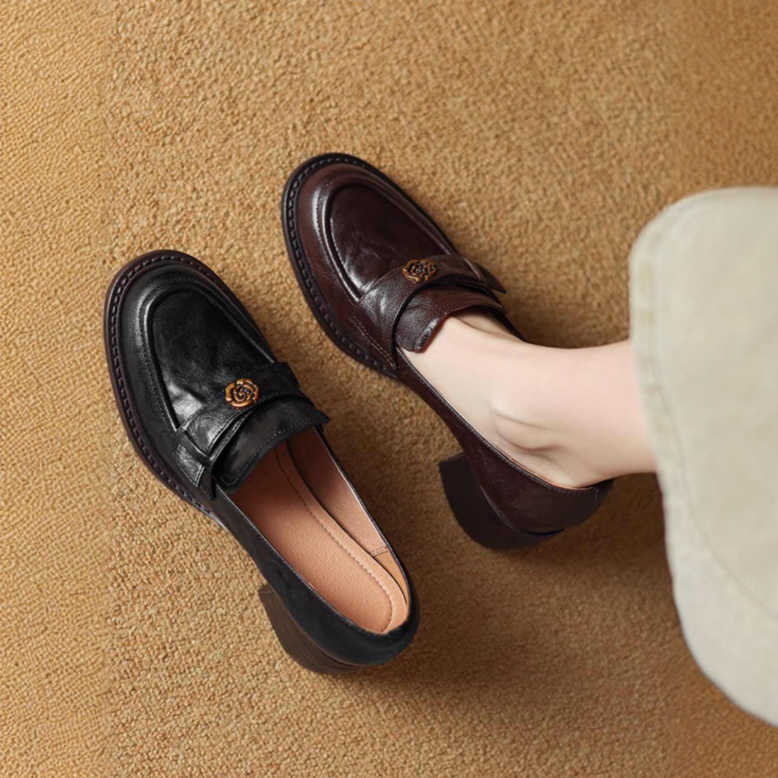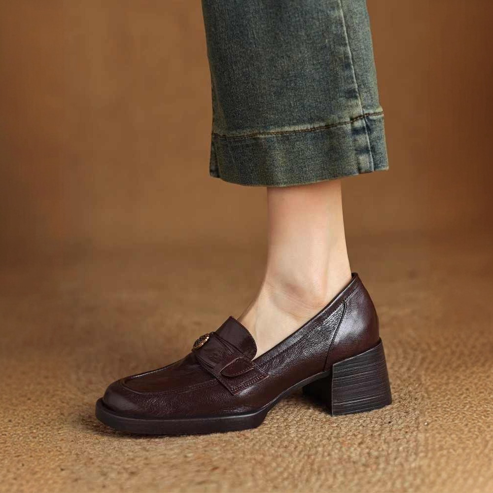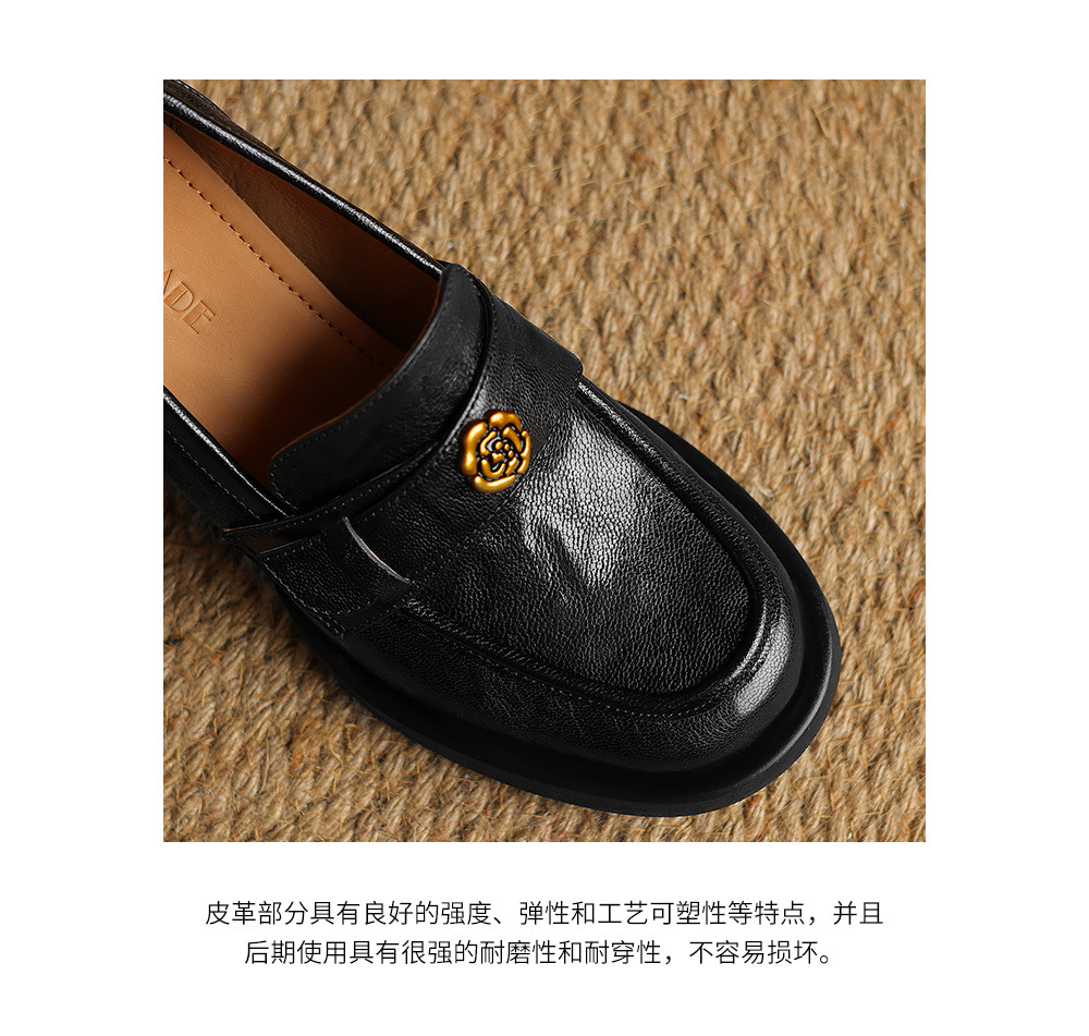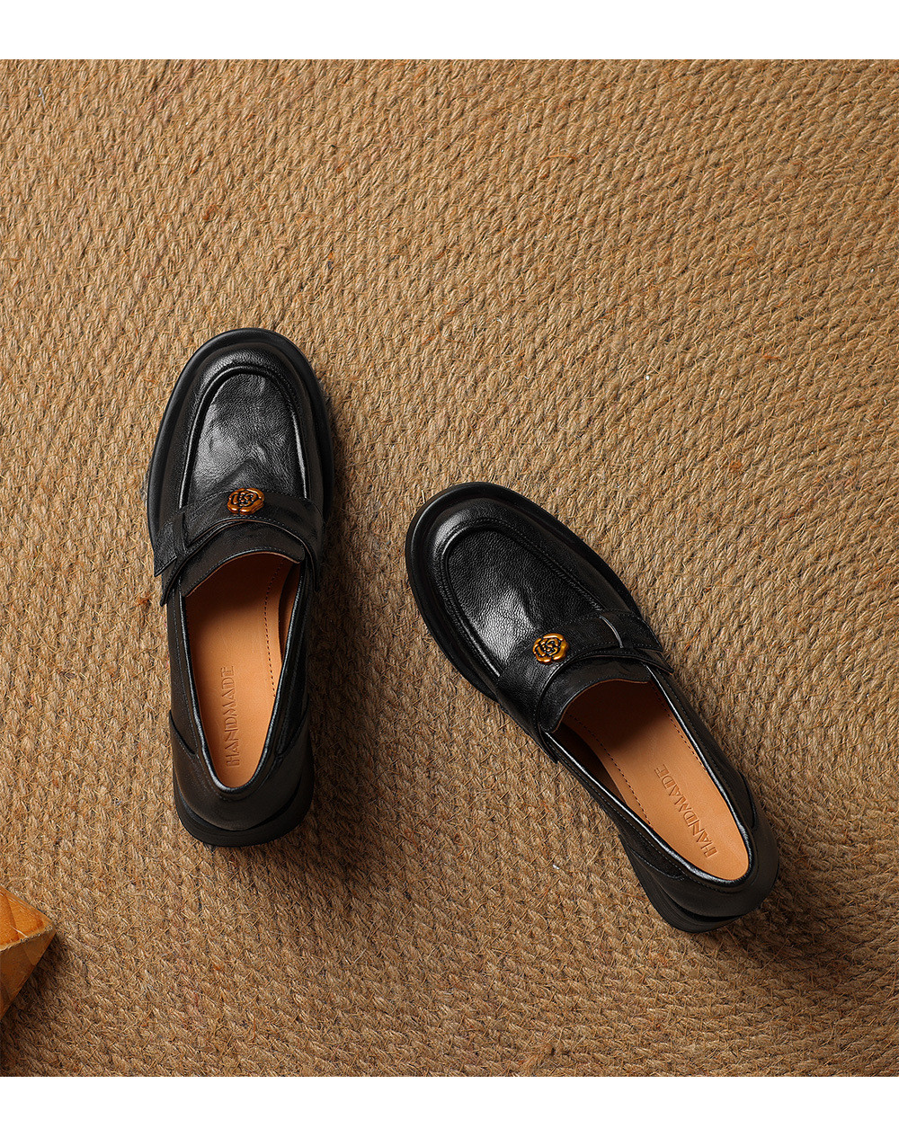 Мягкая овечья кожа черные туфли с высоким каблуком камелии рафу 2025 весна и осень новый британский стиль один педаль толстая подошва одиночные туфли для женщин
