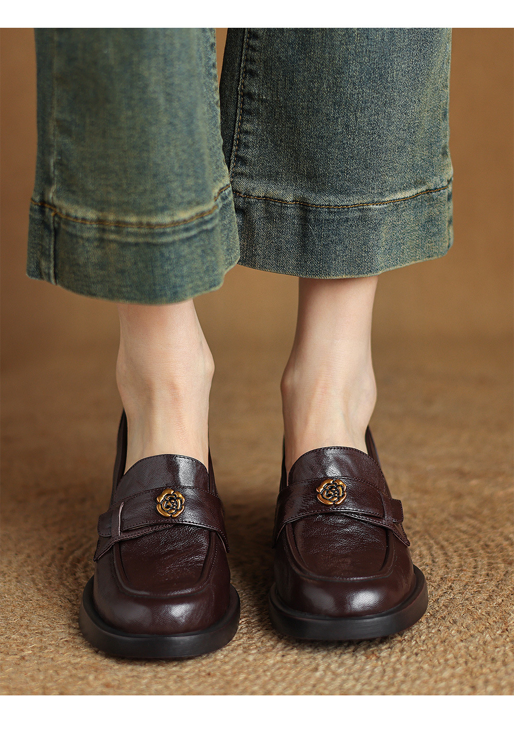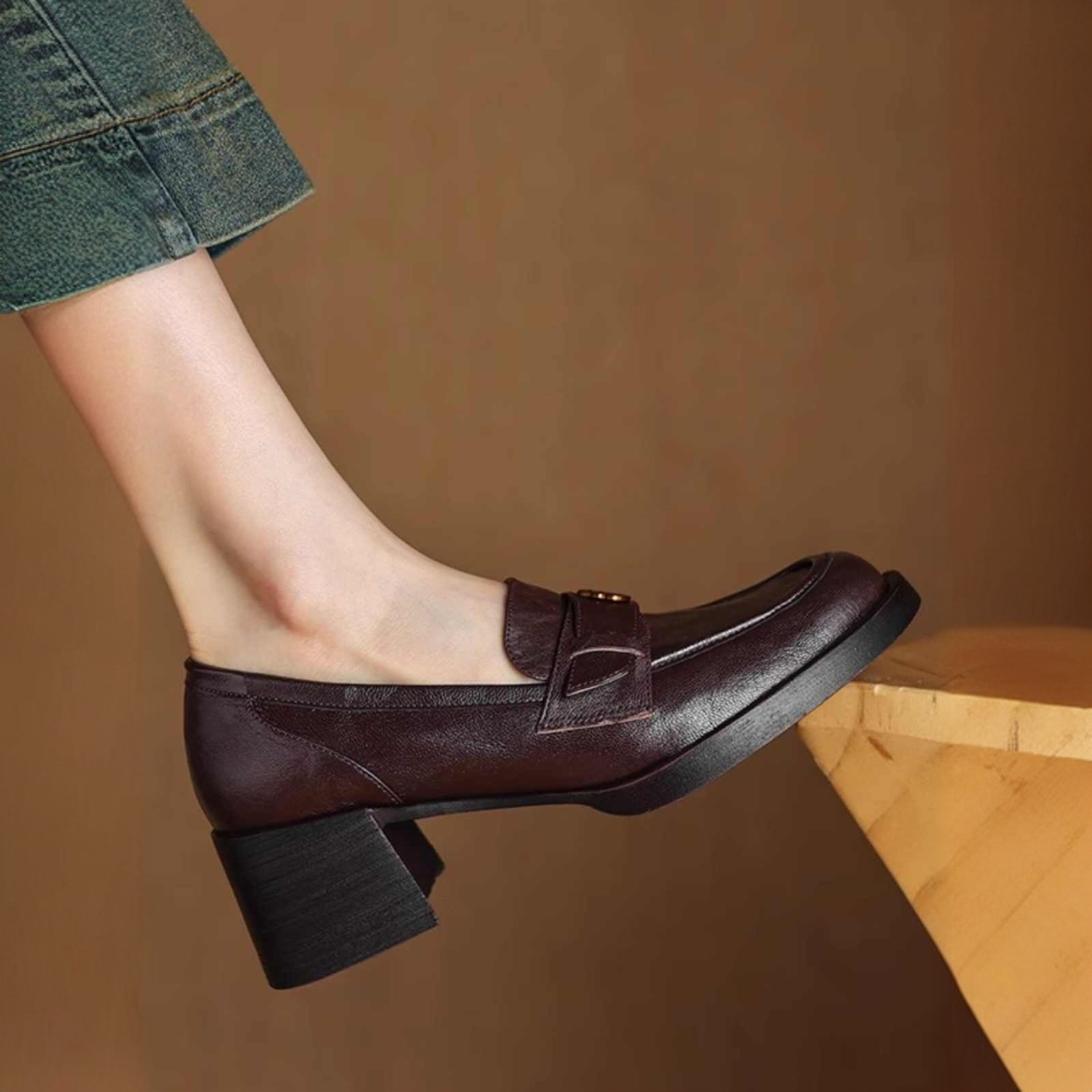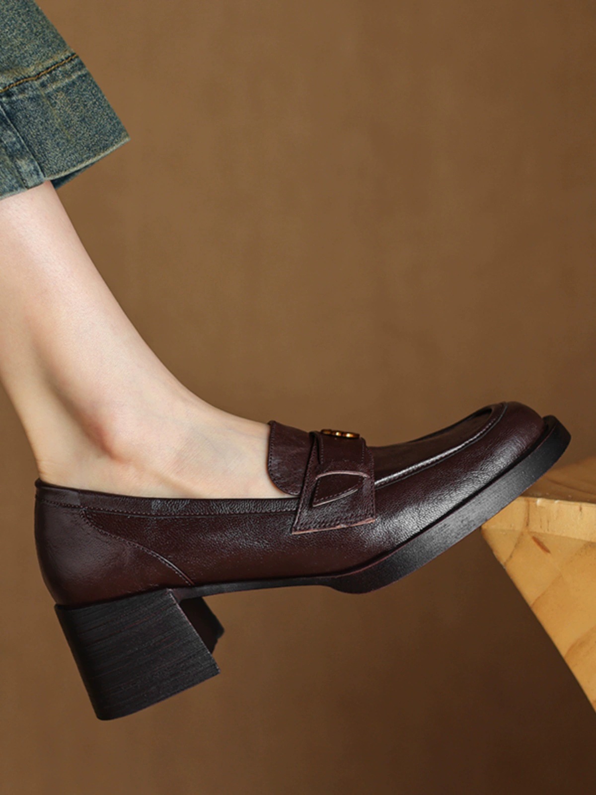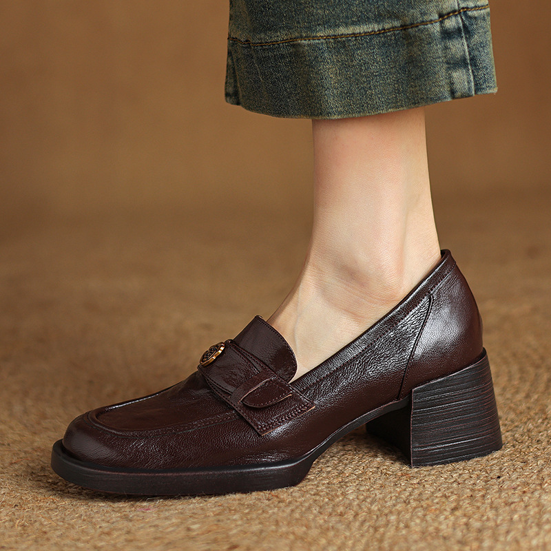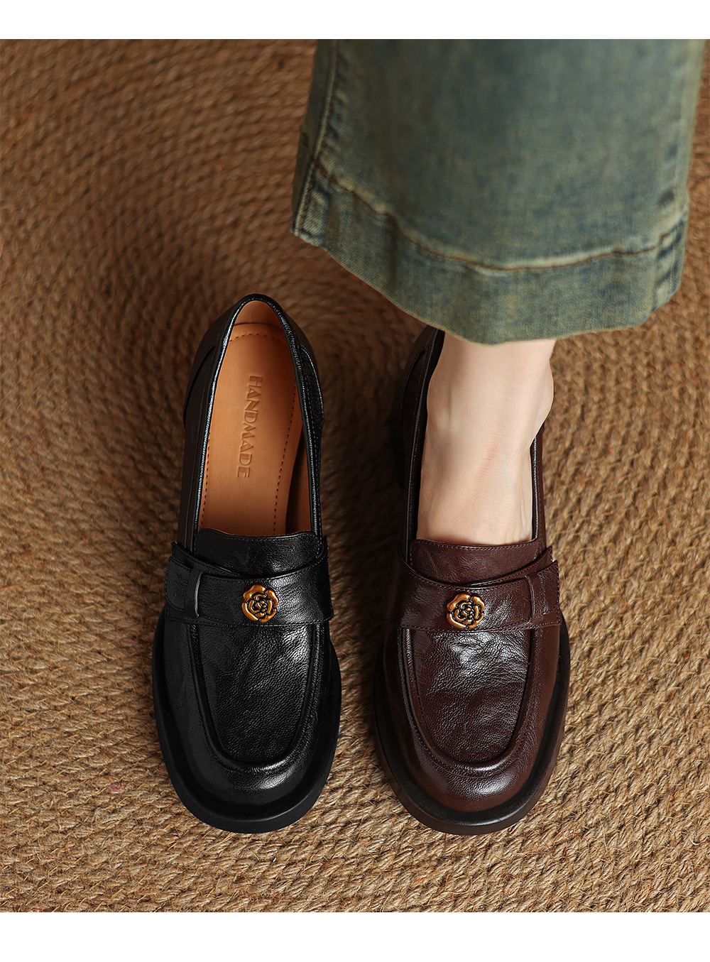 Мягкая овечья кожа черные туфли с высоким каблуком камелии рафу 2025 весна и осень новый британский стиль один педаль толстая подошва одиночные туфли для женщин