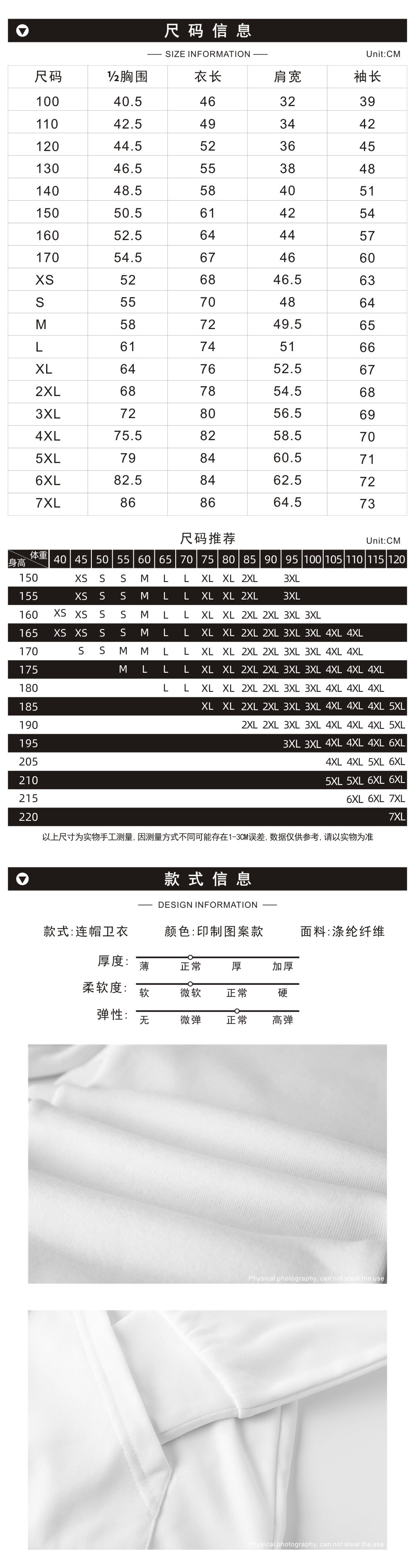 XS; S; M; L; XL; 2XL; 3XL; 4XL; 100CM; 110CM; 120CM; 130CM; 140CM; 150CM; 160CM; 170CM