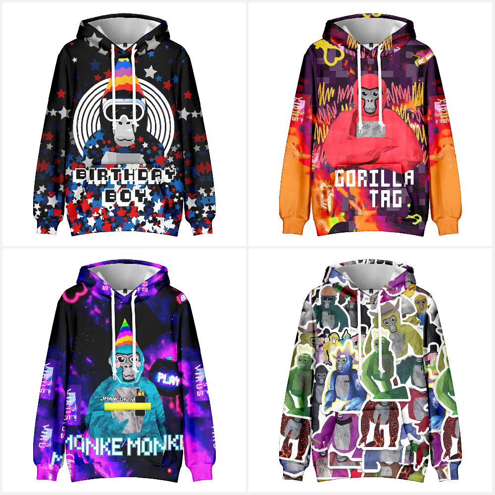3 новые игры Gorilla с капюшоном свитник с капюшоном для взрослых детей с принтами