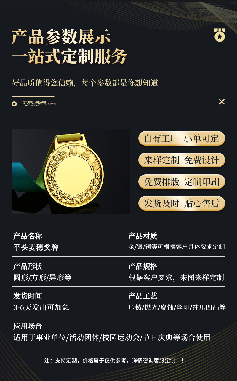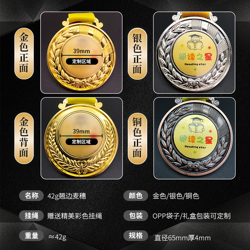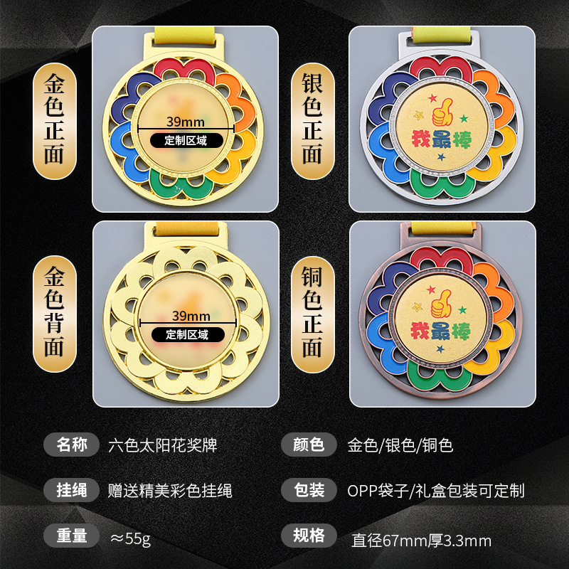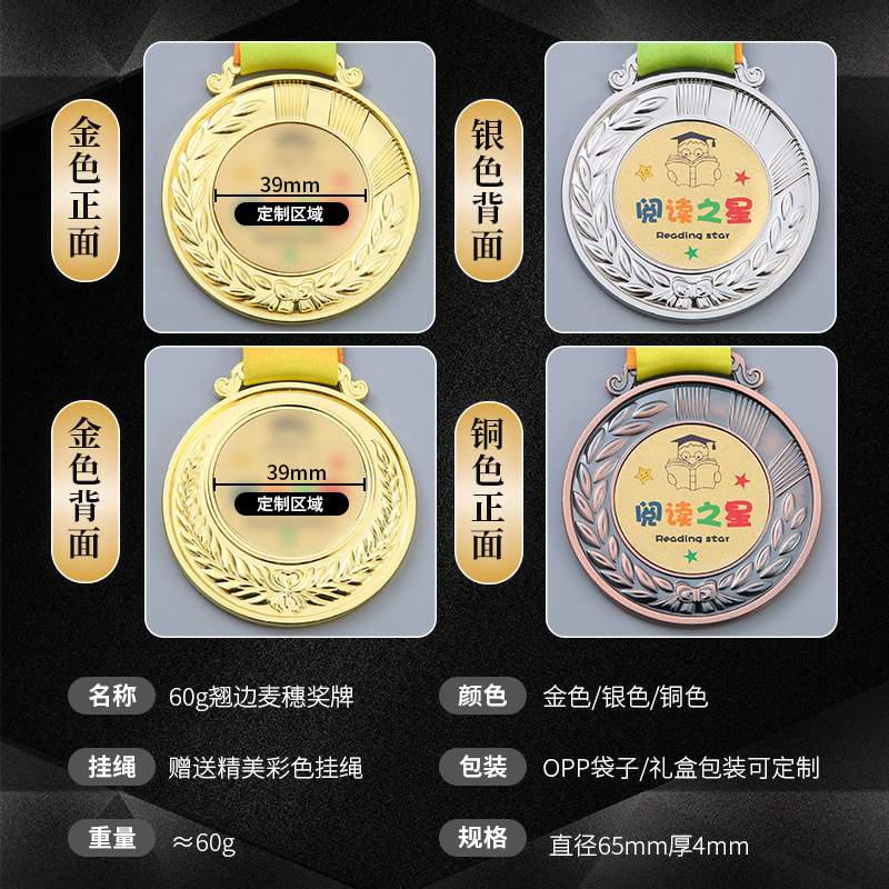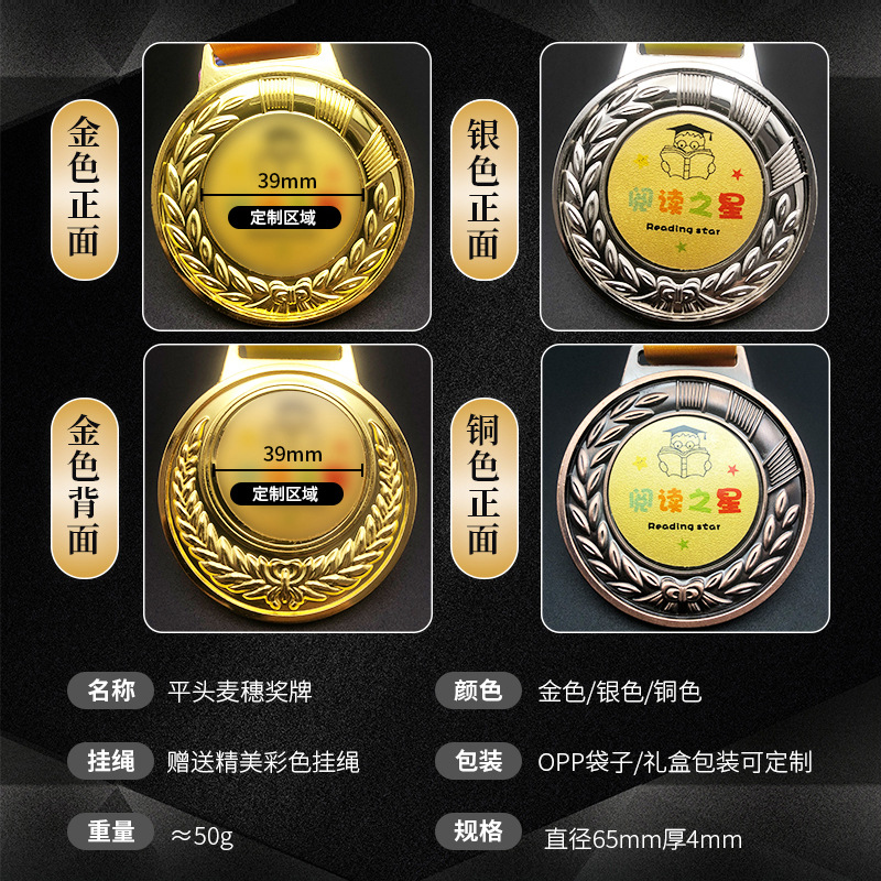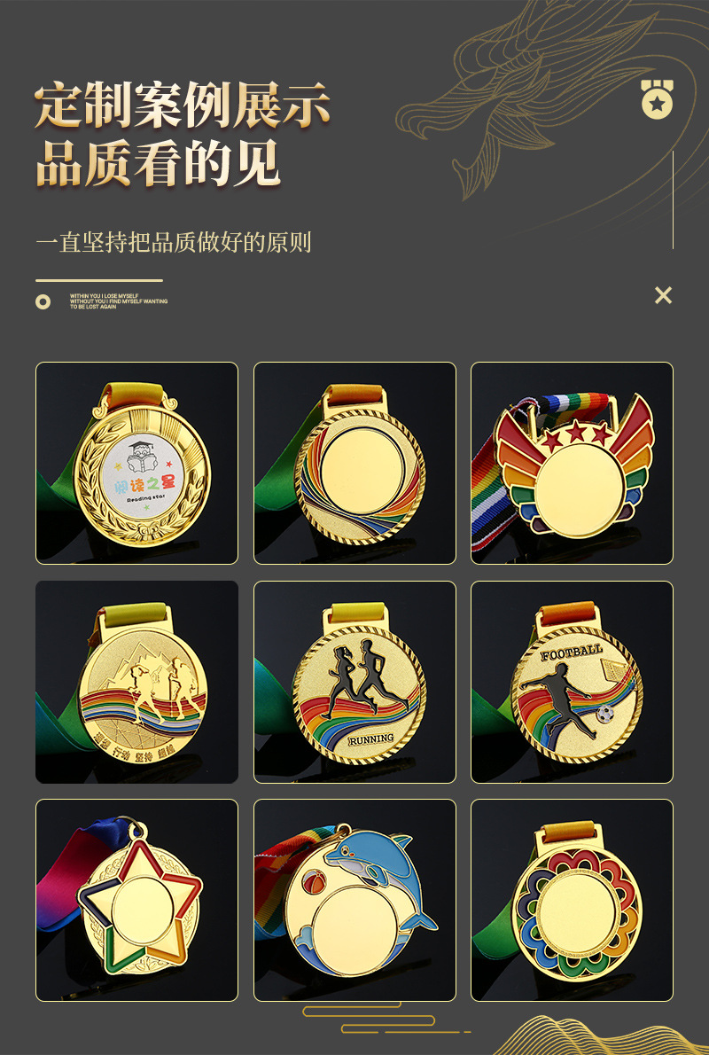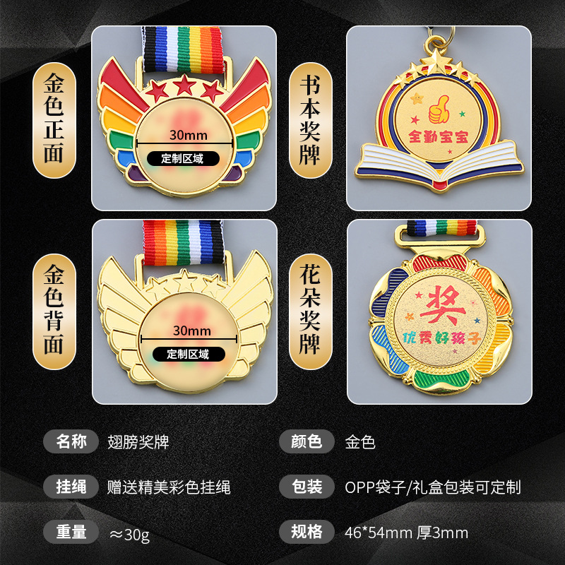 Маленькие пшеничные уши; Классические пшеничные уши; медали с маленькими лепестками; книжная медаль; крылья медали; Медаль благословения; Плоские пшеничные уши; 42 г пшеничных ушей с деформированным краем; 60 г пшеничных ушей с изогнутыми краями; Шесть цветов подсолнуха; медали подсолнечника; Медали пентаграммы; стермерные медали; Медали градиентного цвета; радужные медали; Медали тхэквондо; Бегущая медаль на пять человек; Двойная бегущая медаль; баскетбольные медали; футбольные медали; медали для настольного тенниса; плавательные медали; медали бадминтона; альпинистские медали