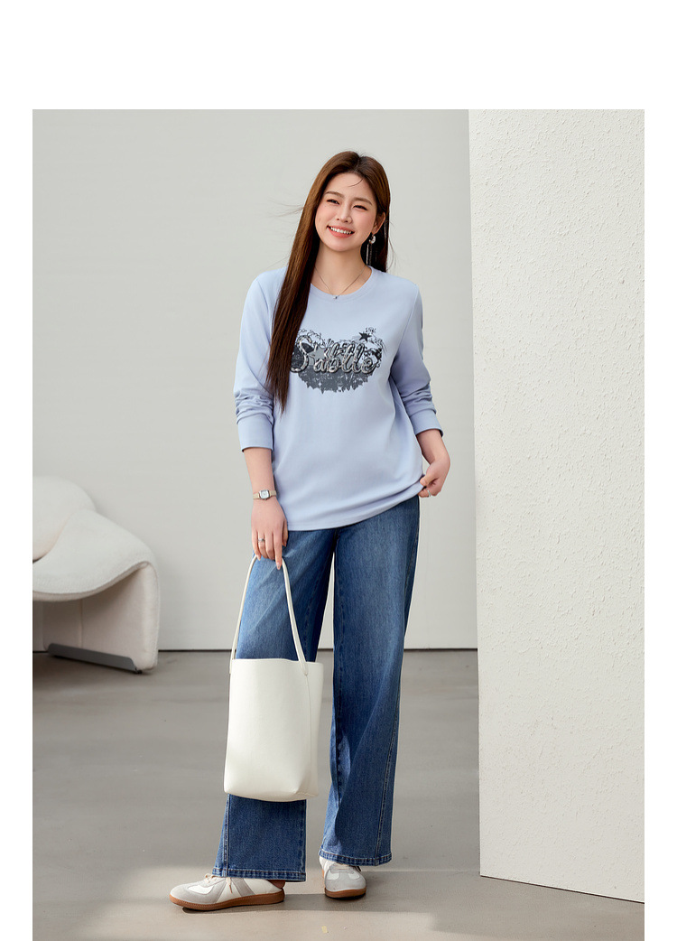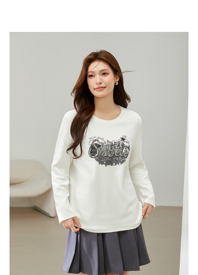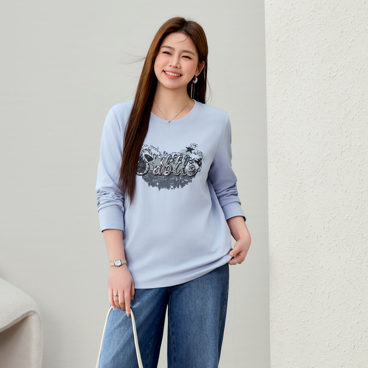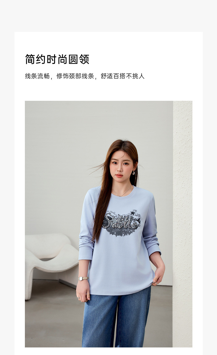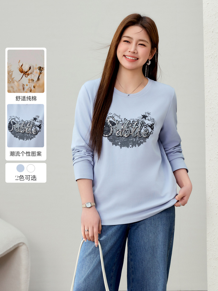 [Простая повседневная дикая футболка с тонким плечом] Funny Show большой размер женский толстый mm2025 весенний новый