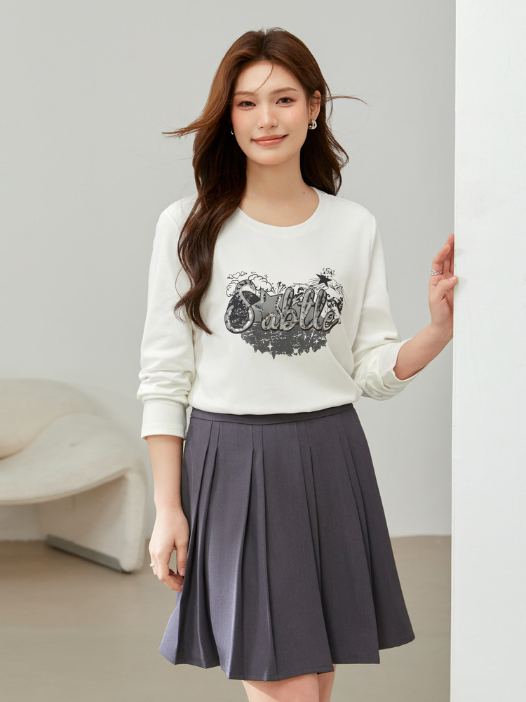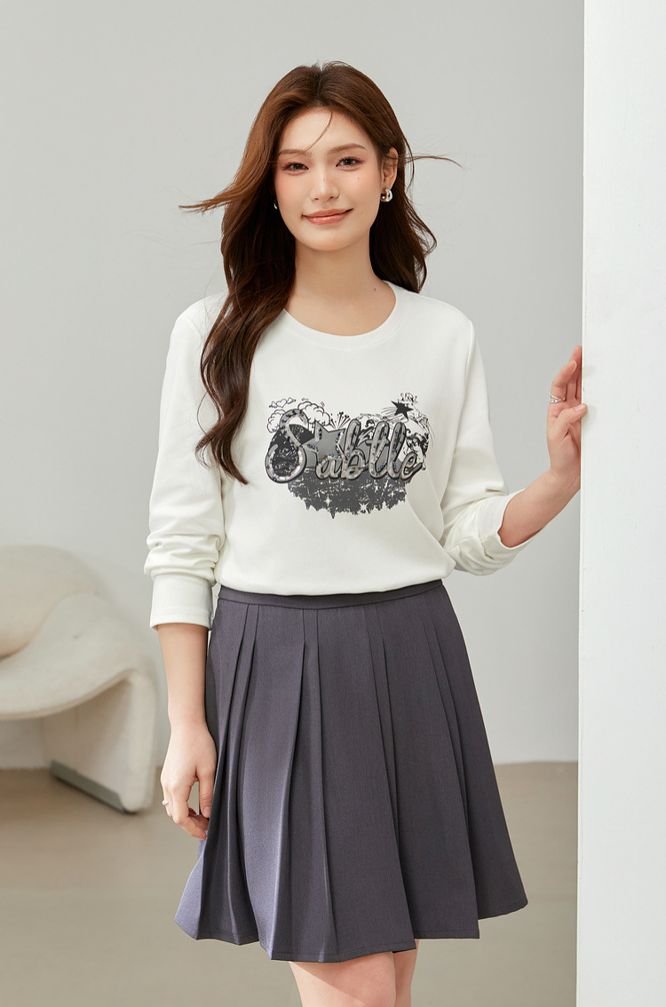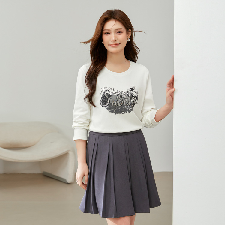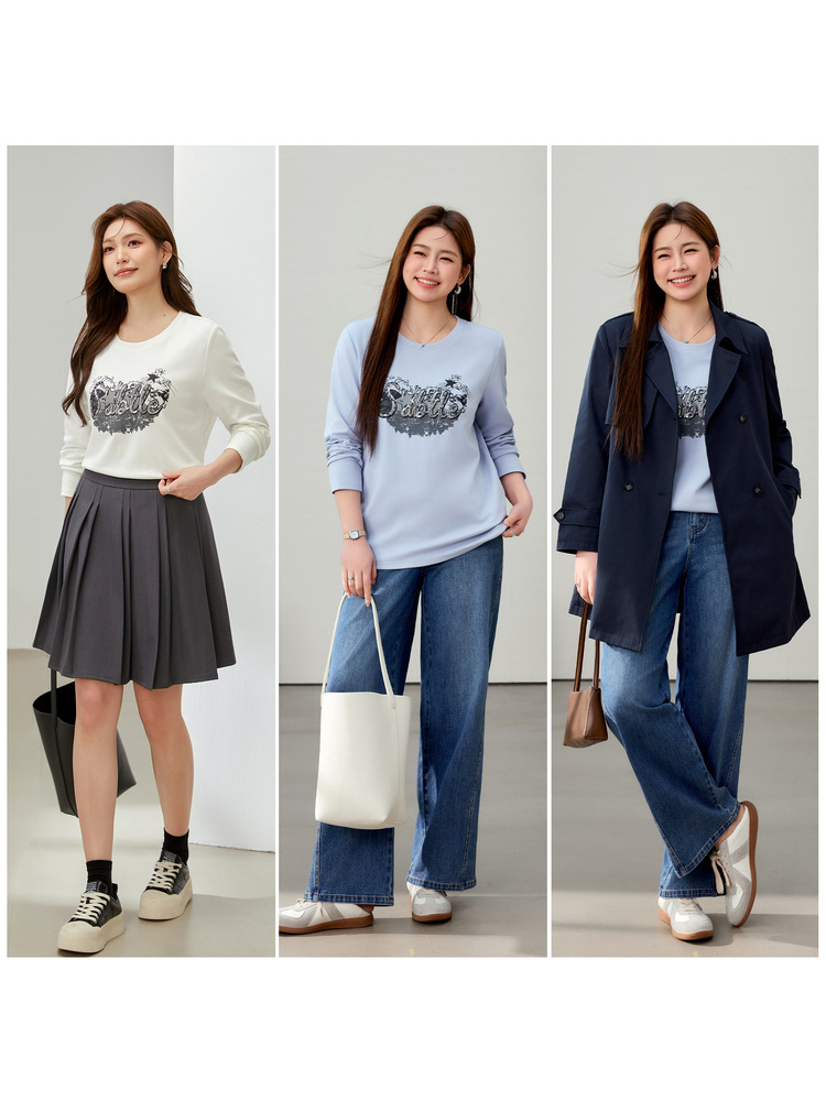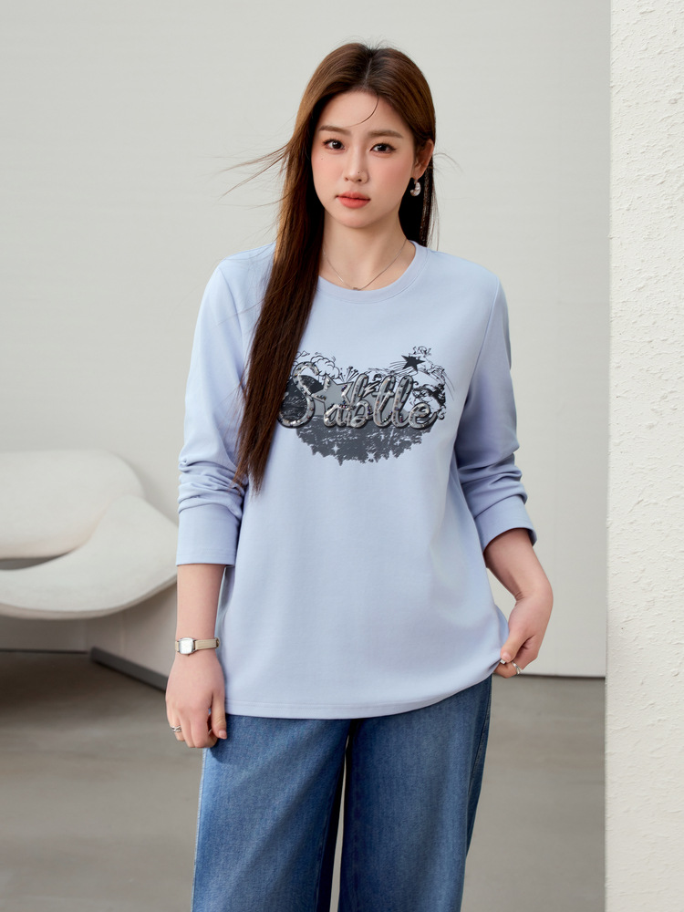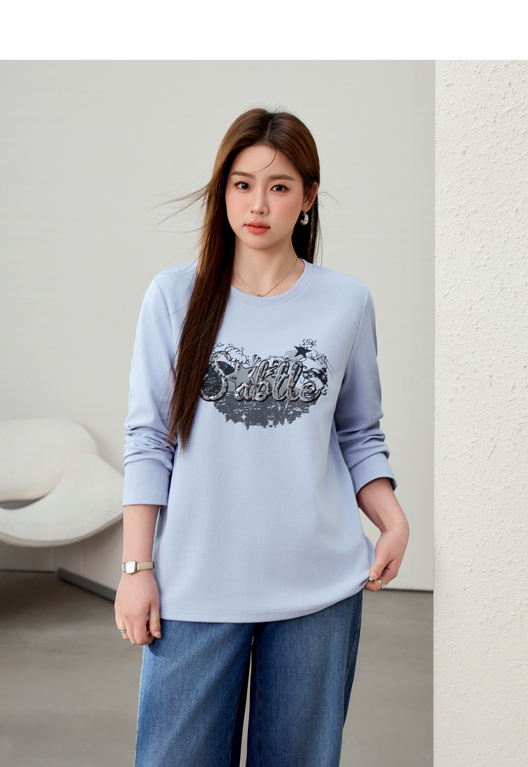 [Простая повседневная дикая футболка с тонким плечом] Funny Show большой размер женский толстый mm2025 весенний новый