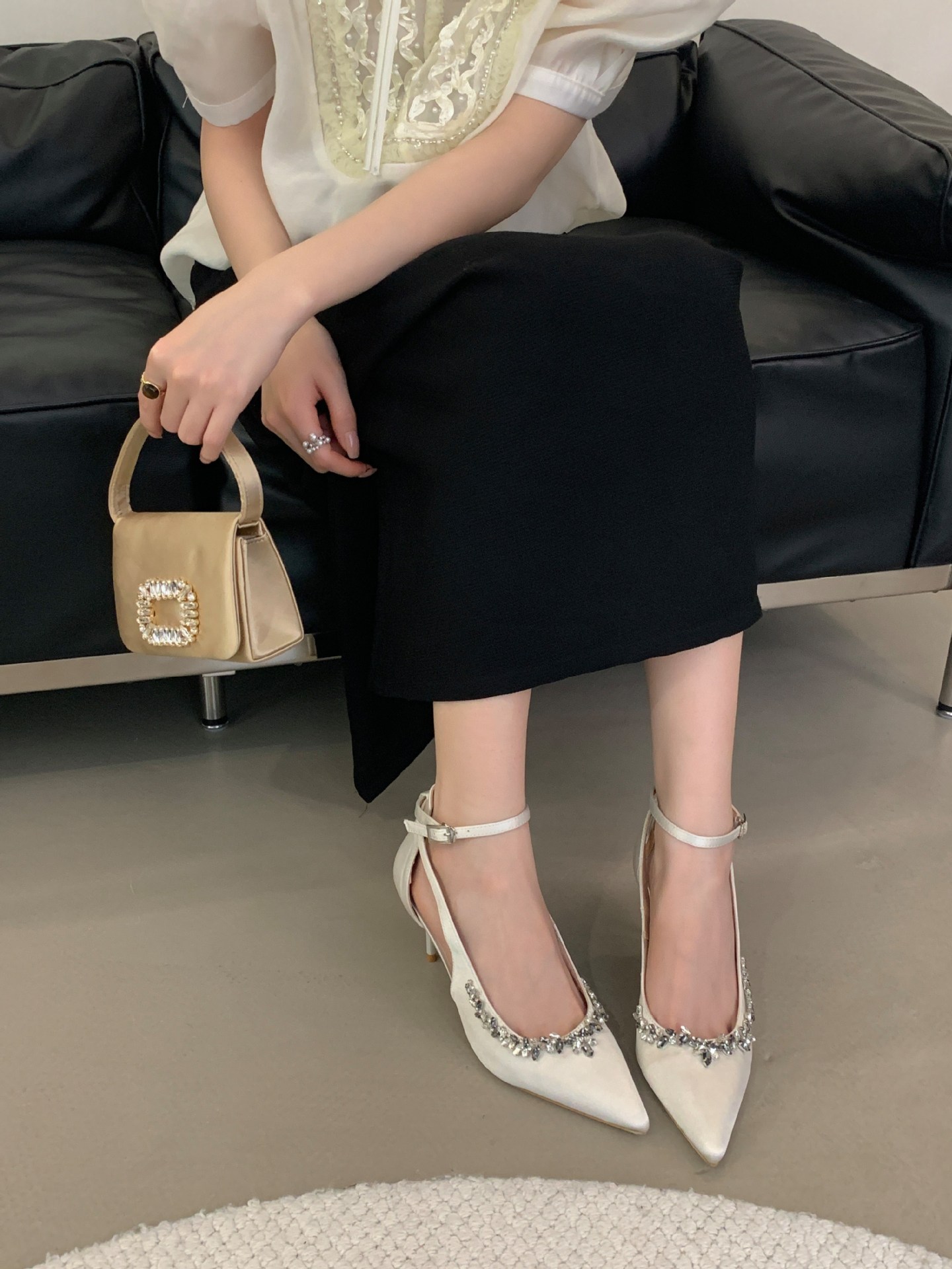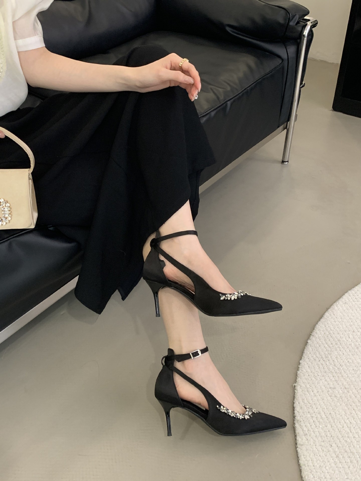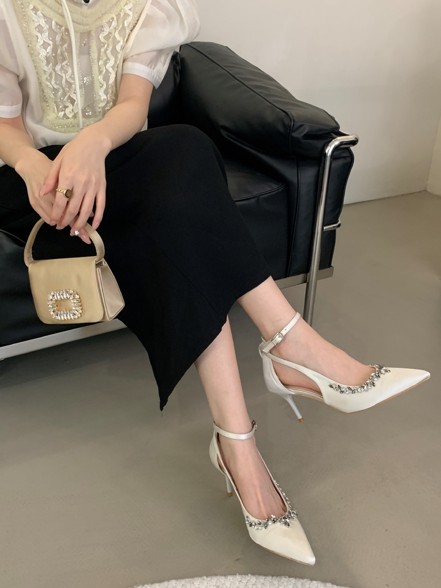 Французская леди ветер сексуальный стразы на высоких каблуках женский каблук 2025 весна новый темперамент, туфли не устают