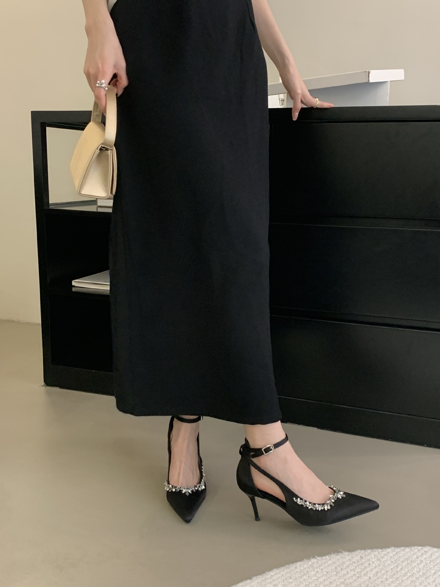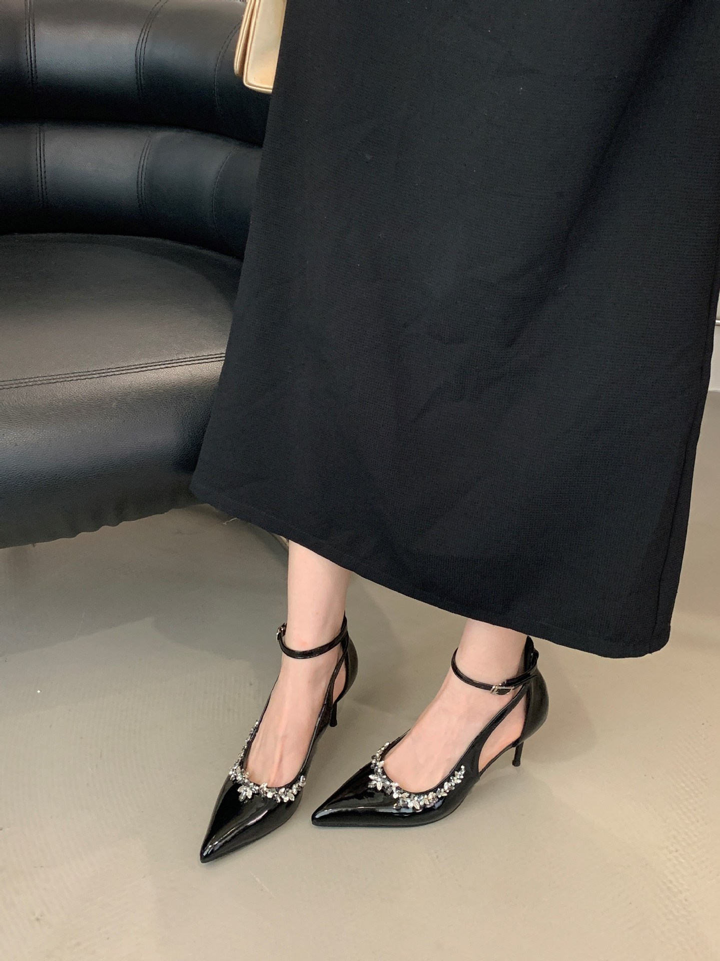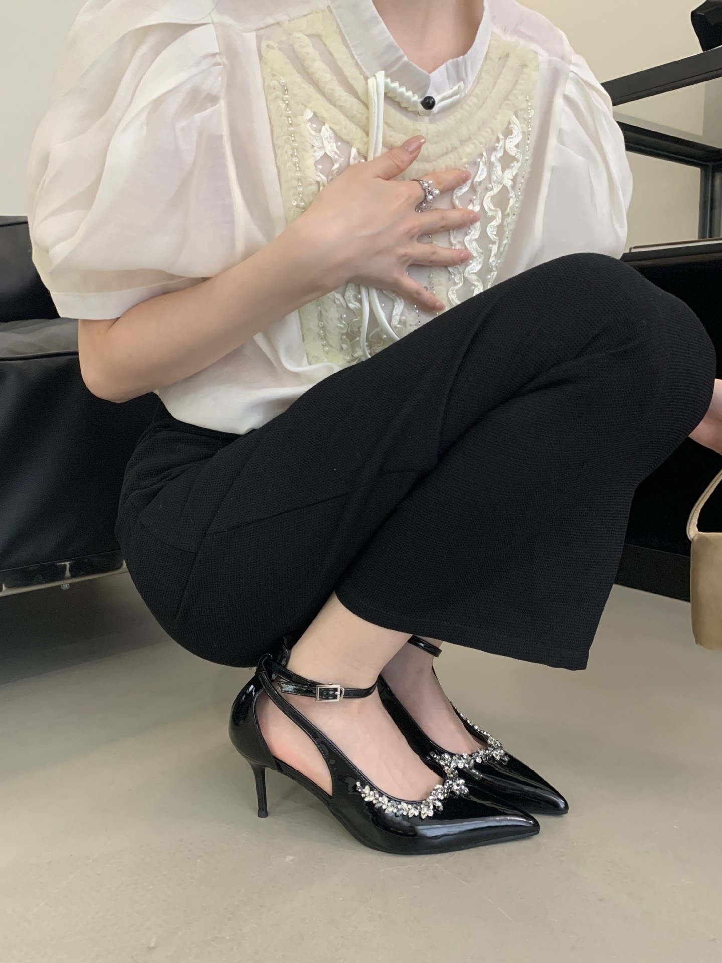 Французская леди ветер сексуальный стразы на высоких каблуках женский каблук 2025 весна новый темперамент, туфли не устают
