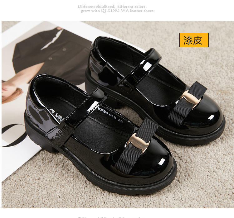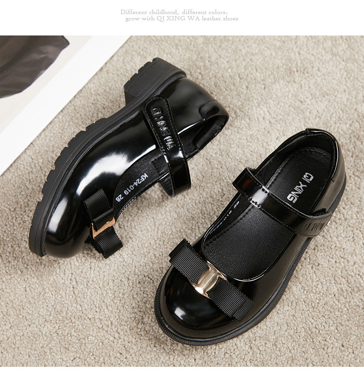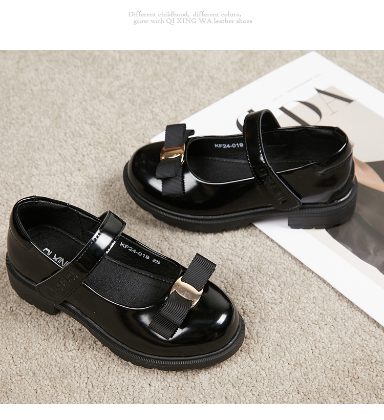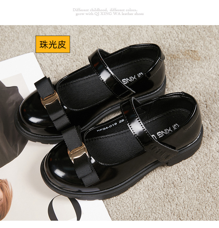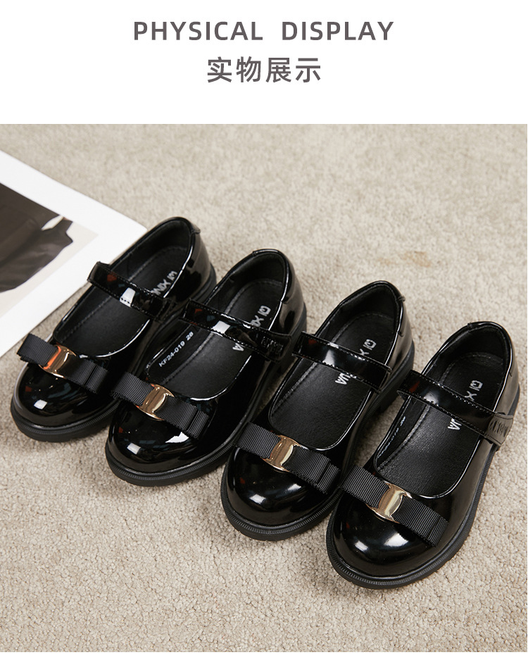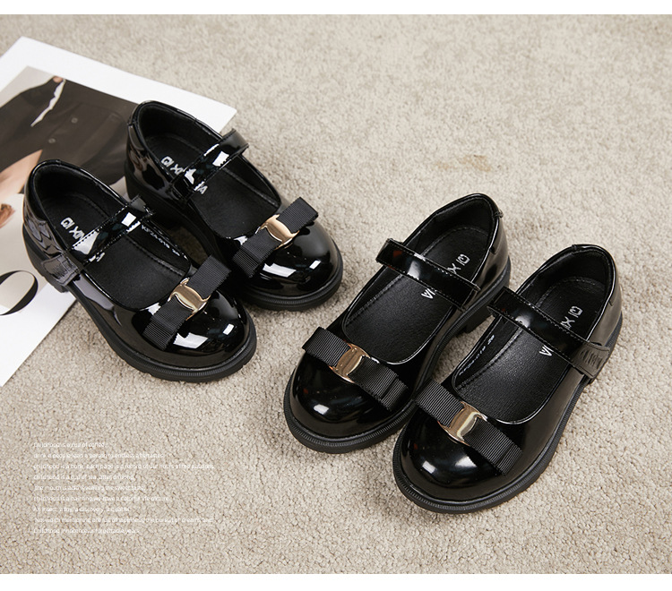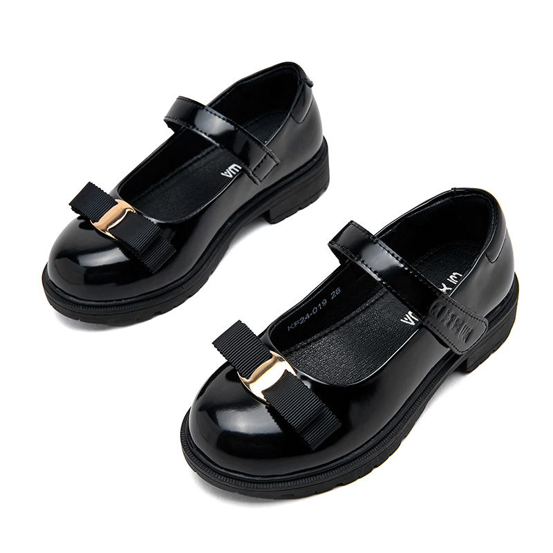 Весенне-осенние кожаные туфли для девочек 2025 года, корейская версия, новые черные туфли для детей старшего возраста с бантом, оптом.