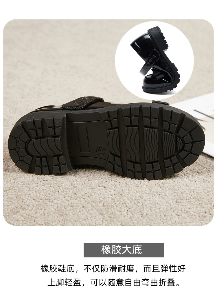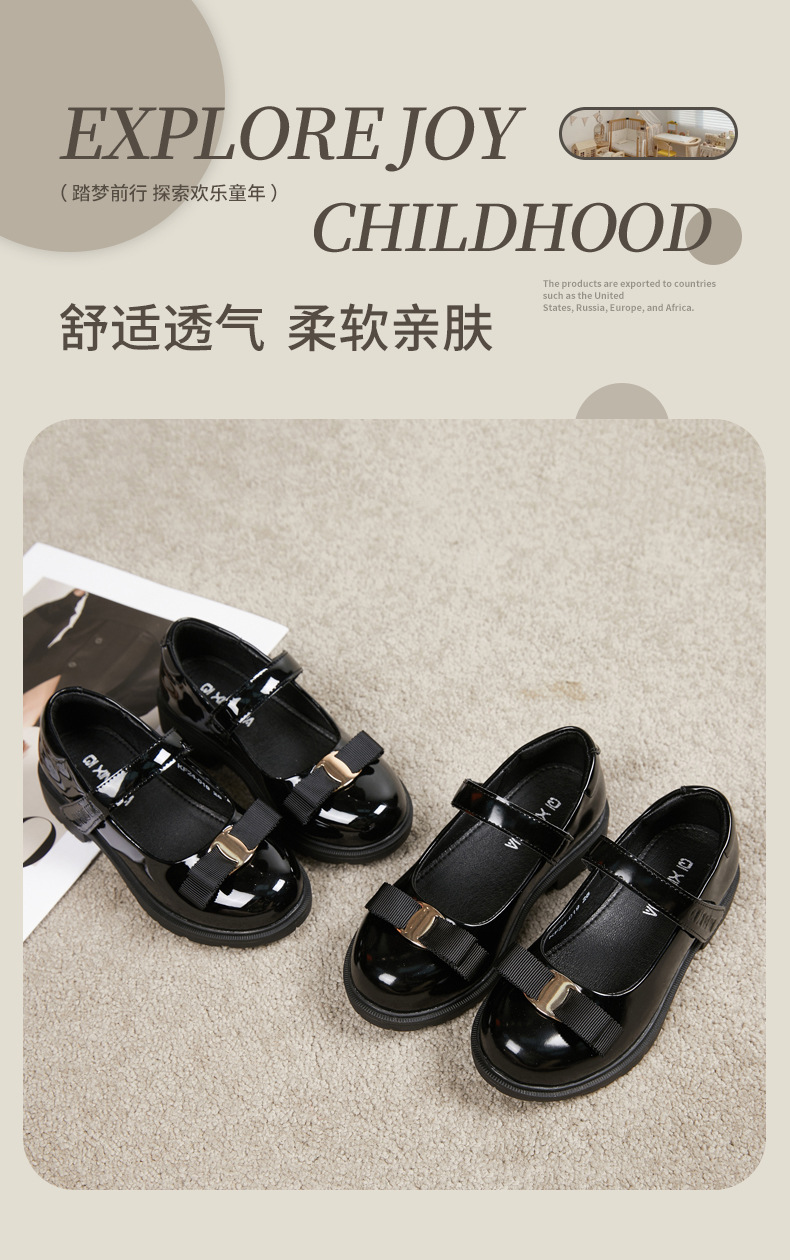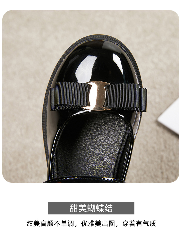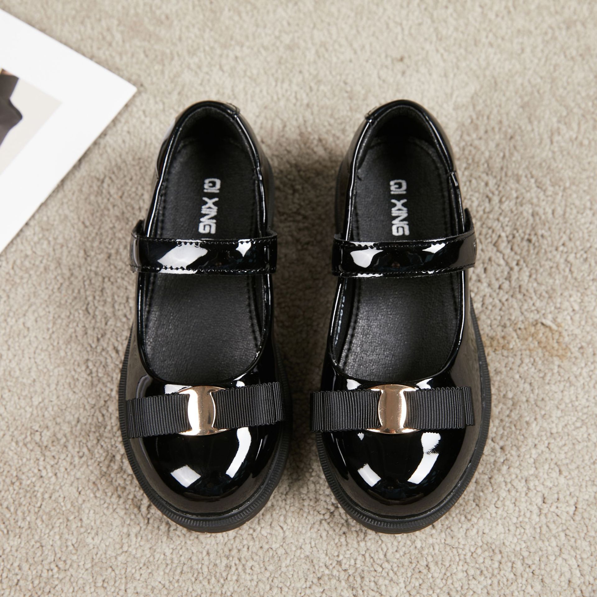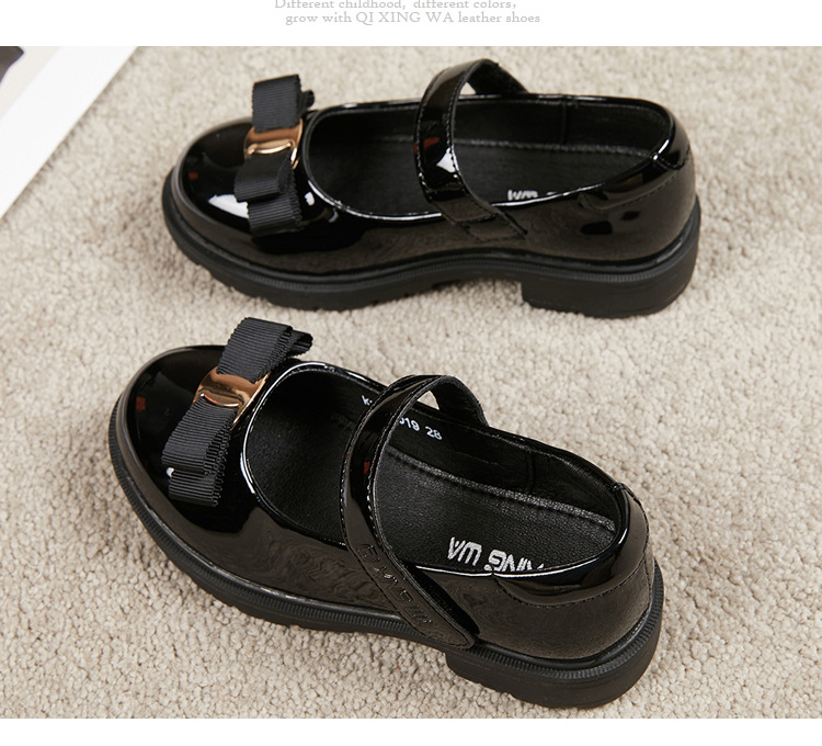 Весенне-осенние кожаные туфли для девочек 2025 года, корейская версия, новые черные туфли для детей старшего возраста с бантом, оптом.