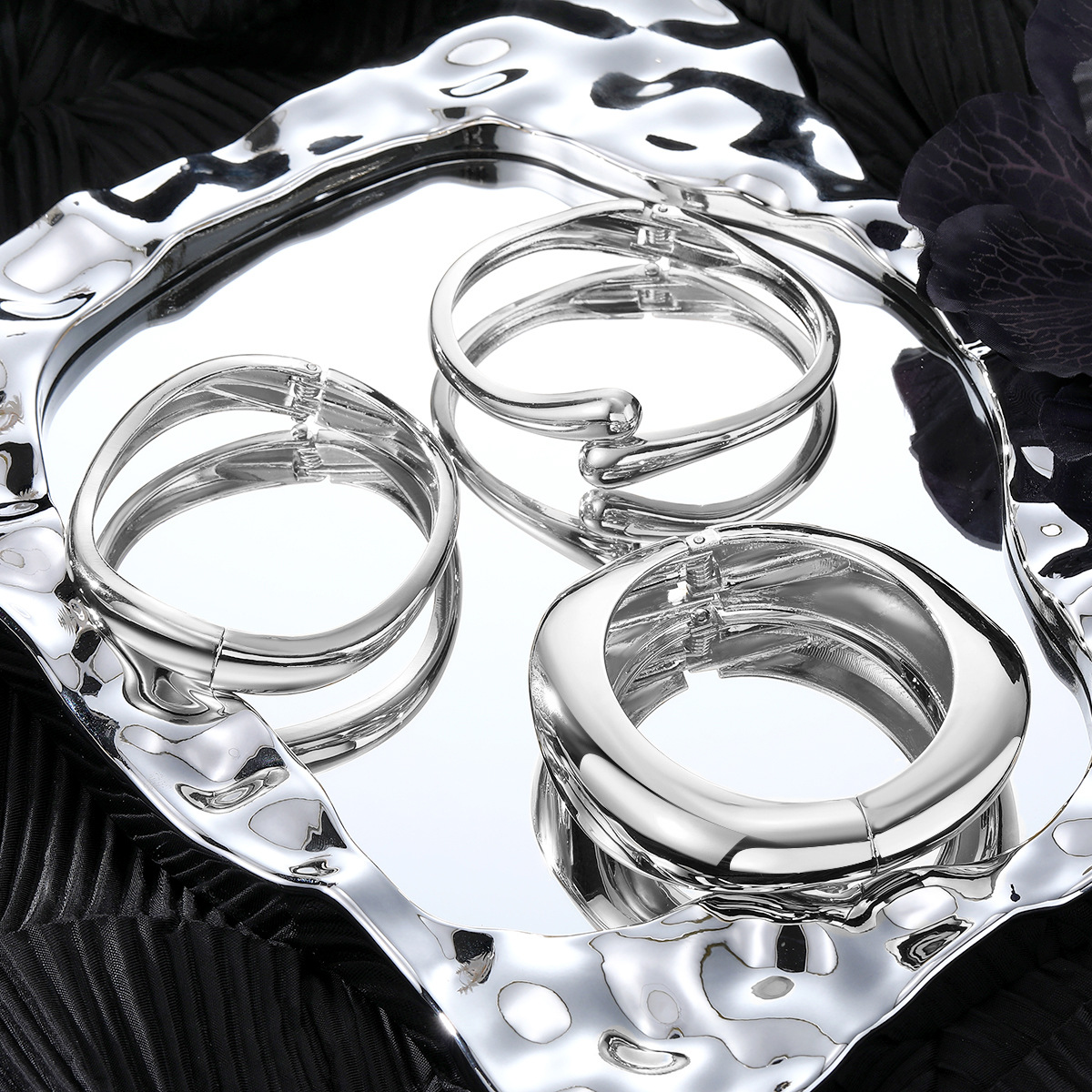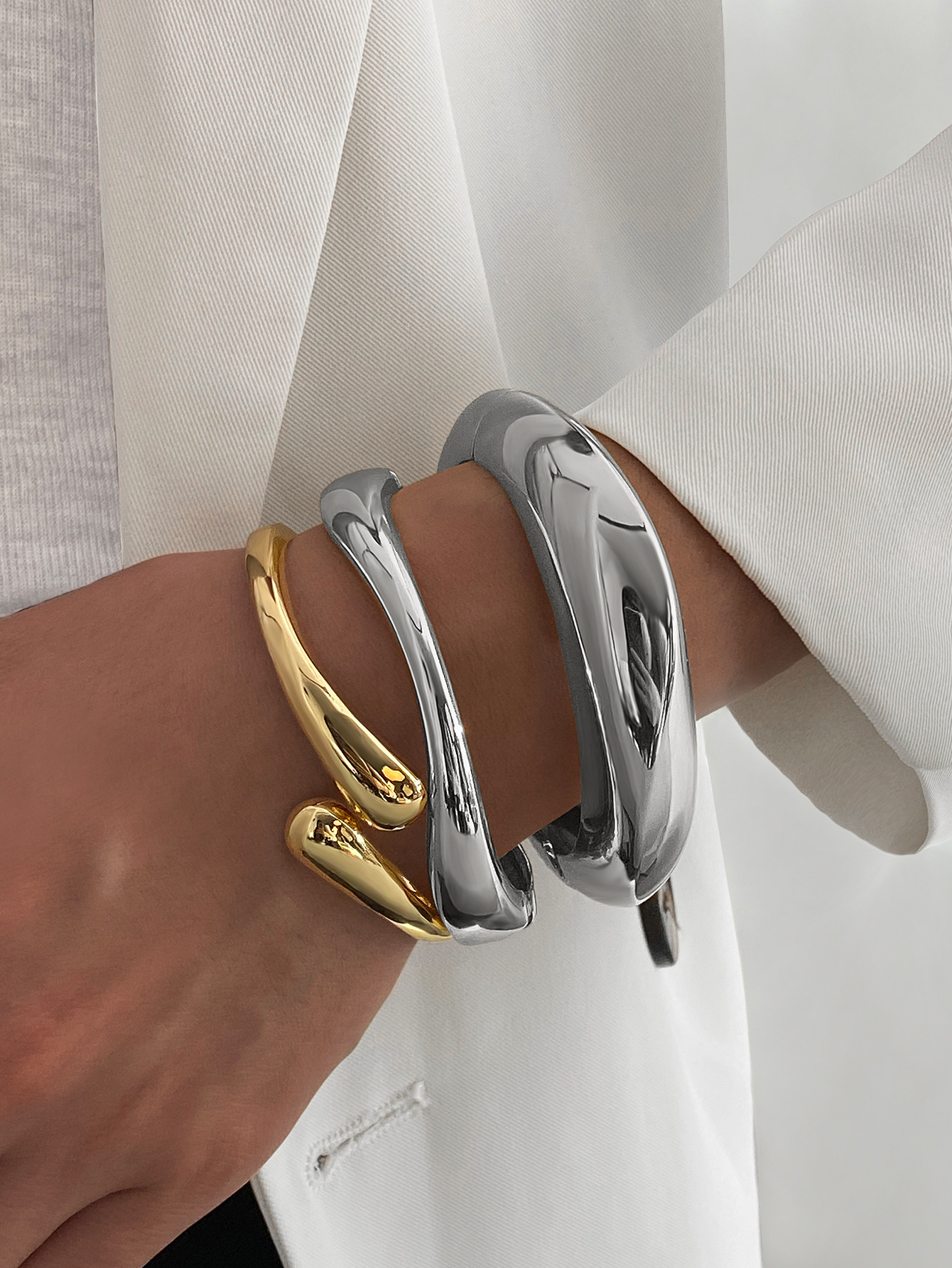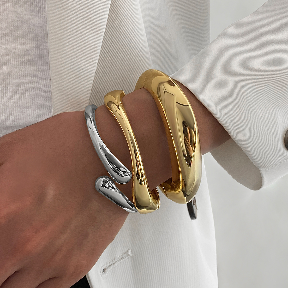 Европейские и американские трансграничные нерегулярные хип-хоп преувеличенный глянцевый браслет женский металлический сплав тяжелой промышленности капли воды браслет набор