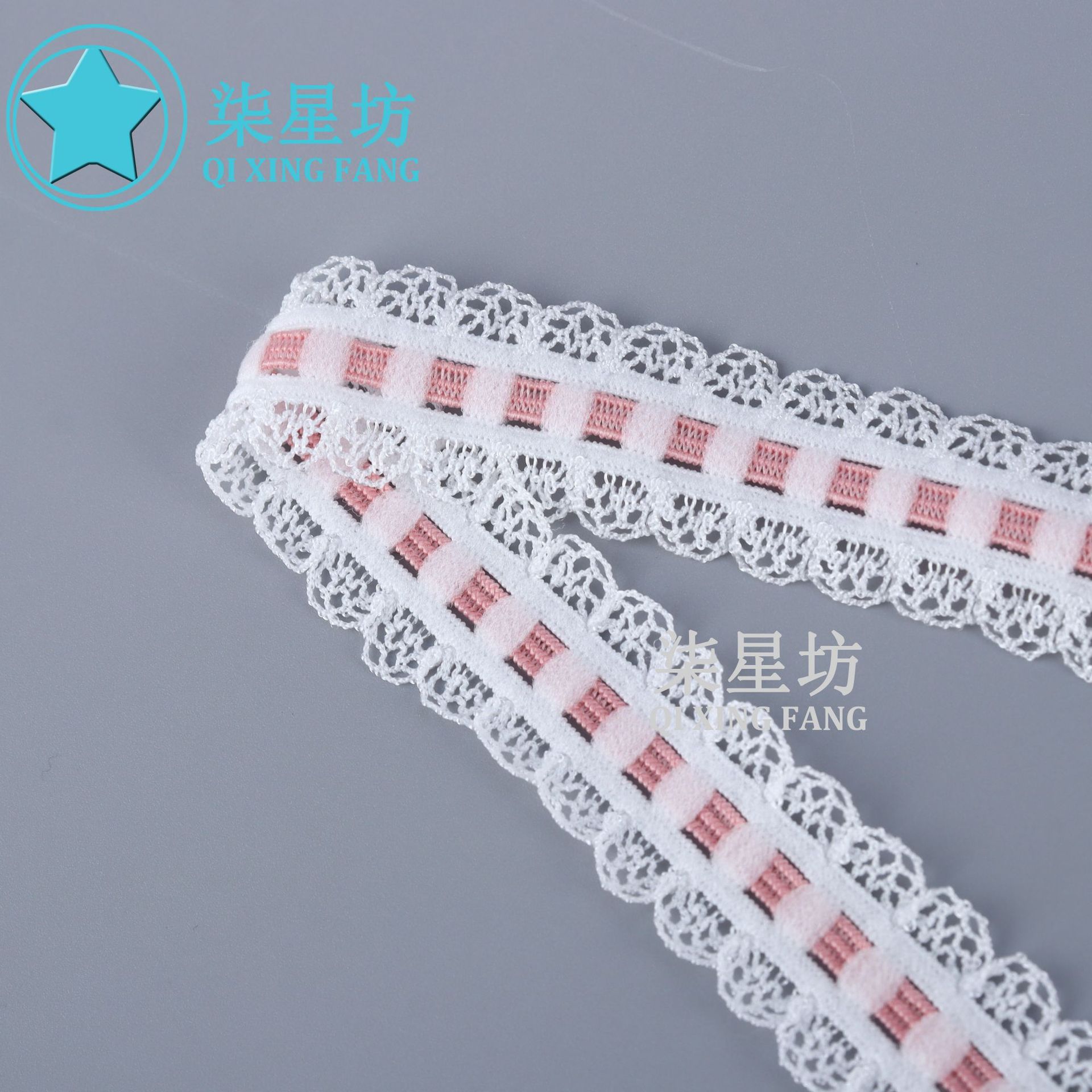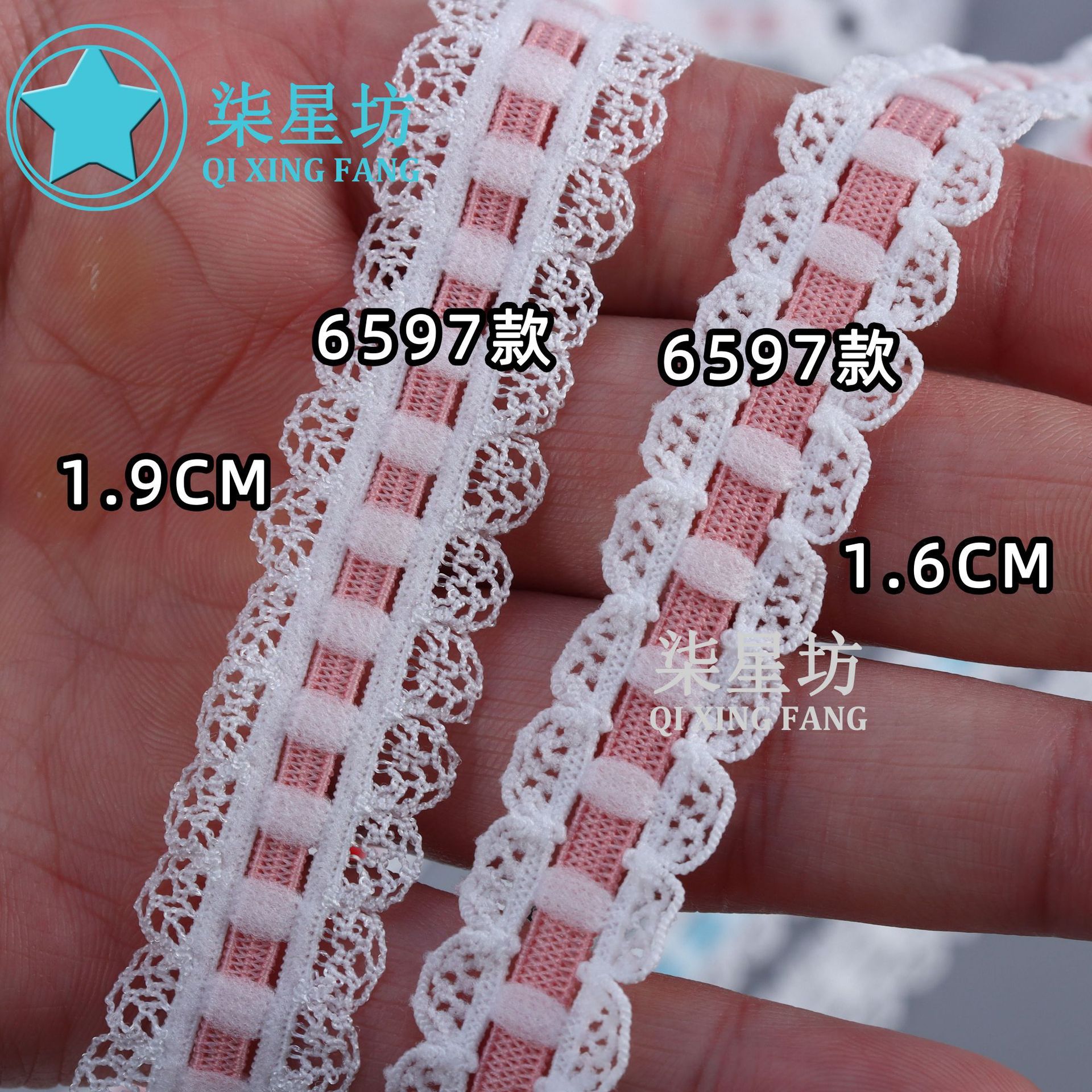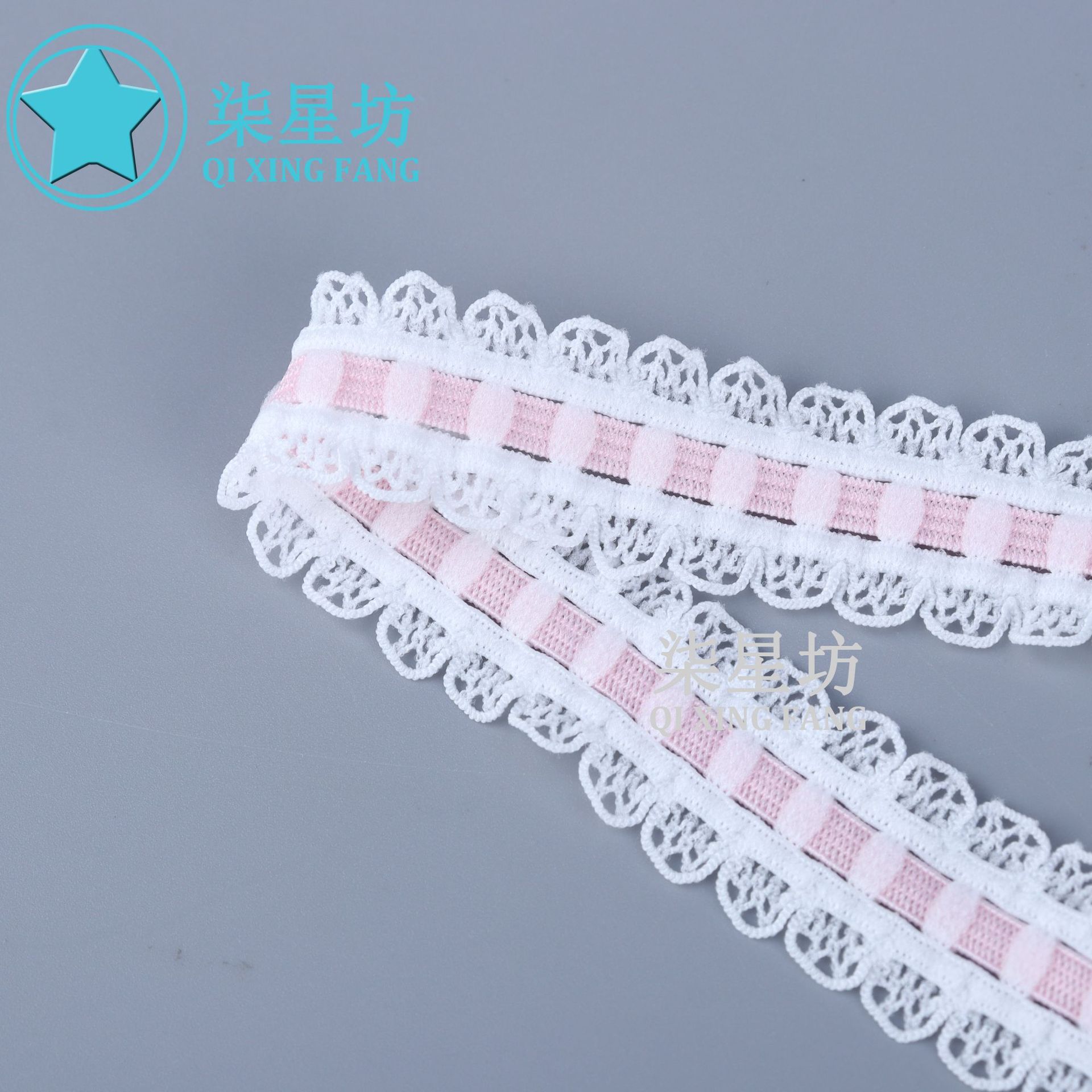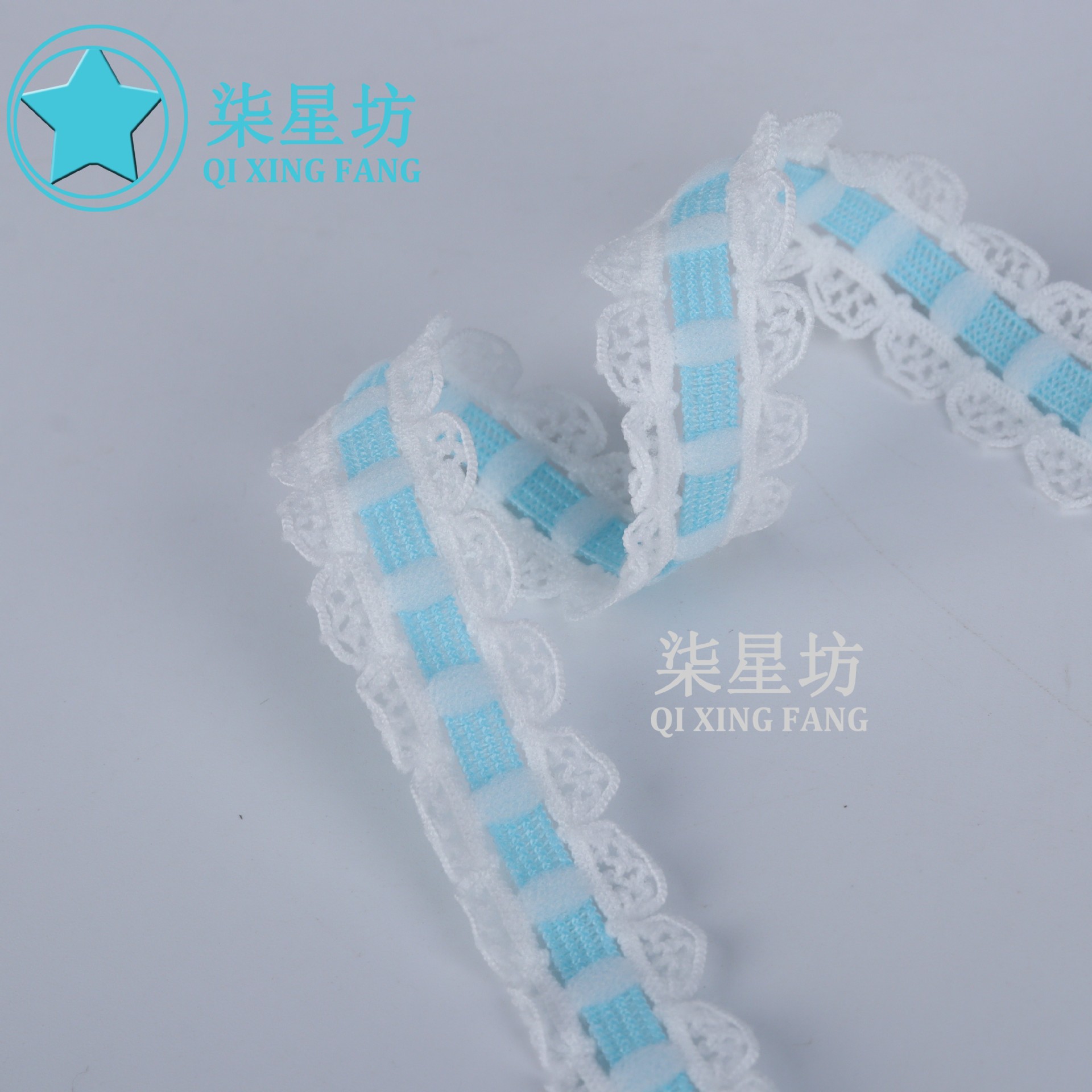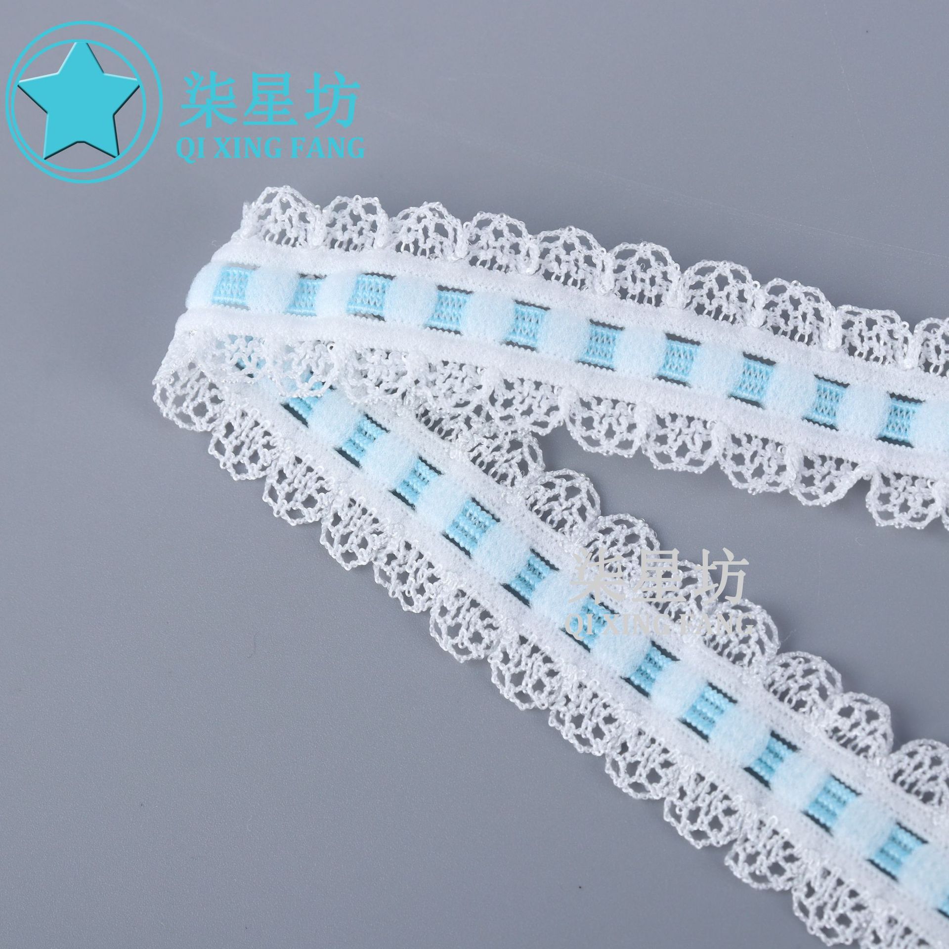 弹力蕾丝粉蓝清新花边橡筋褶带手工DIY装饰玩偶镂空梯子格松紧带