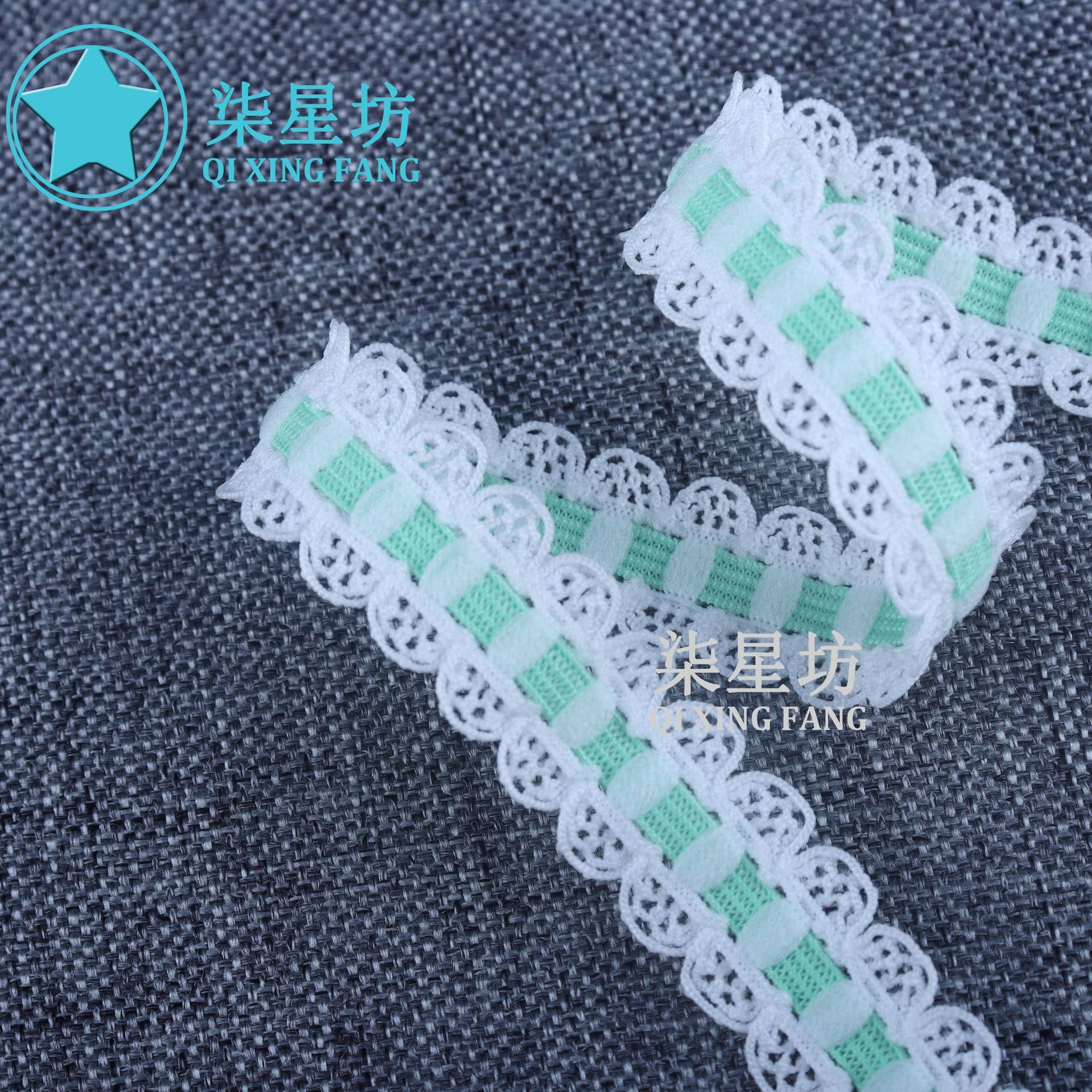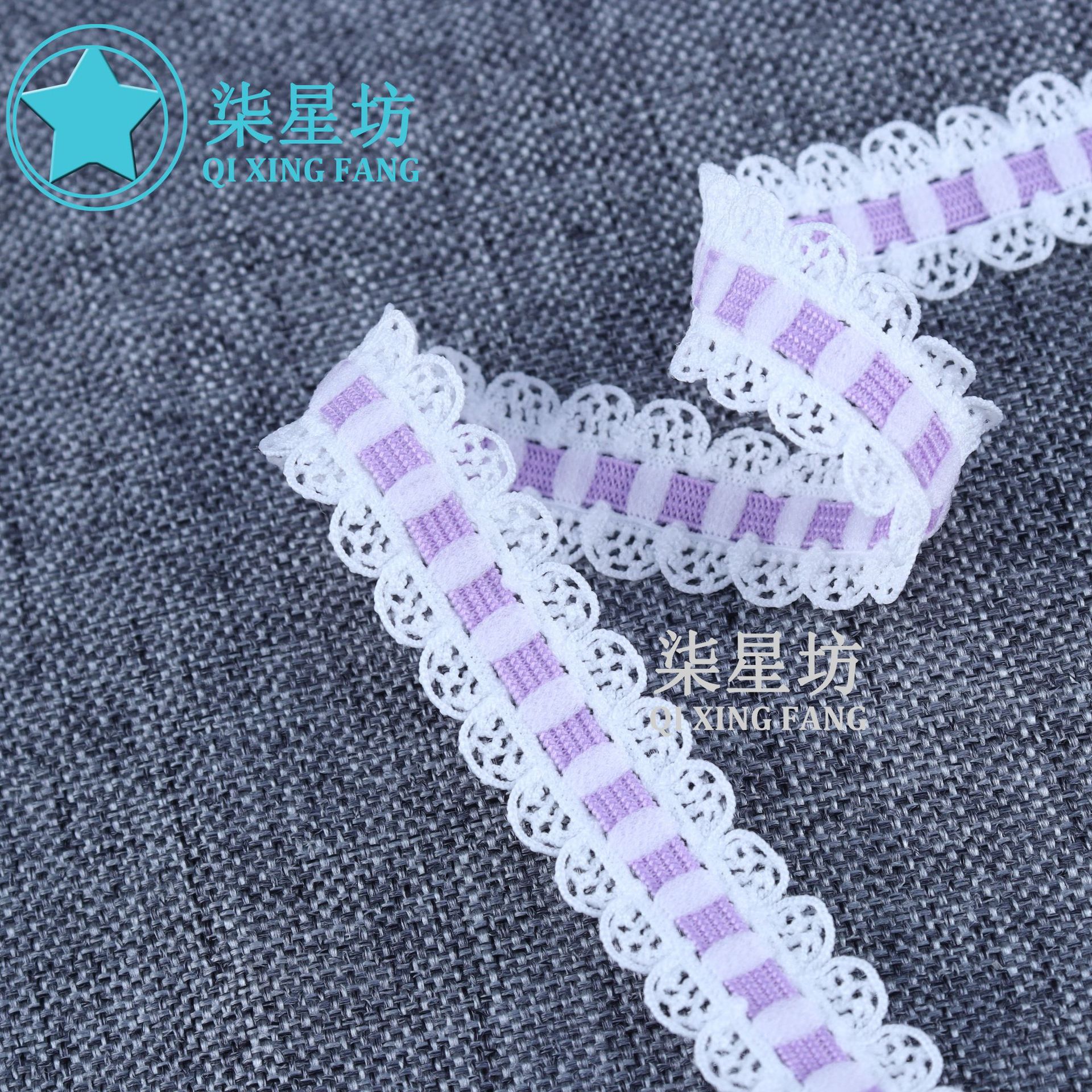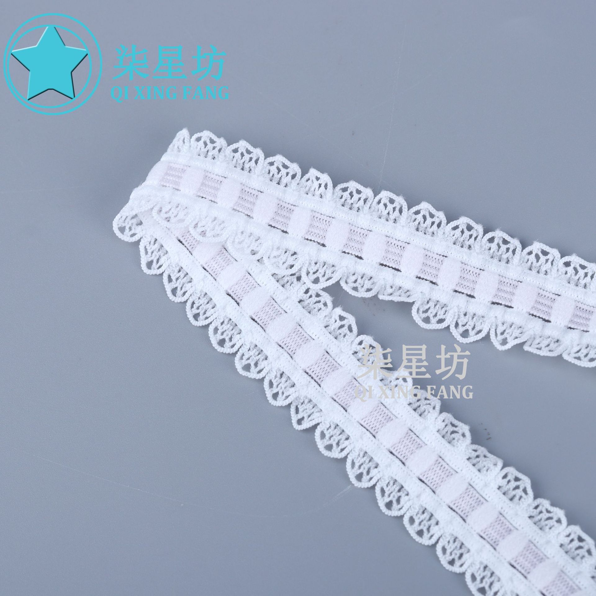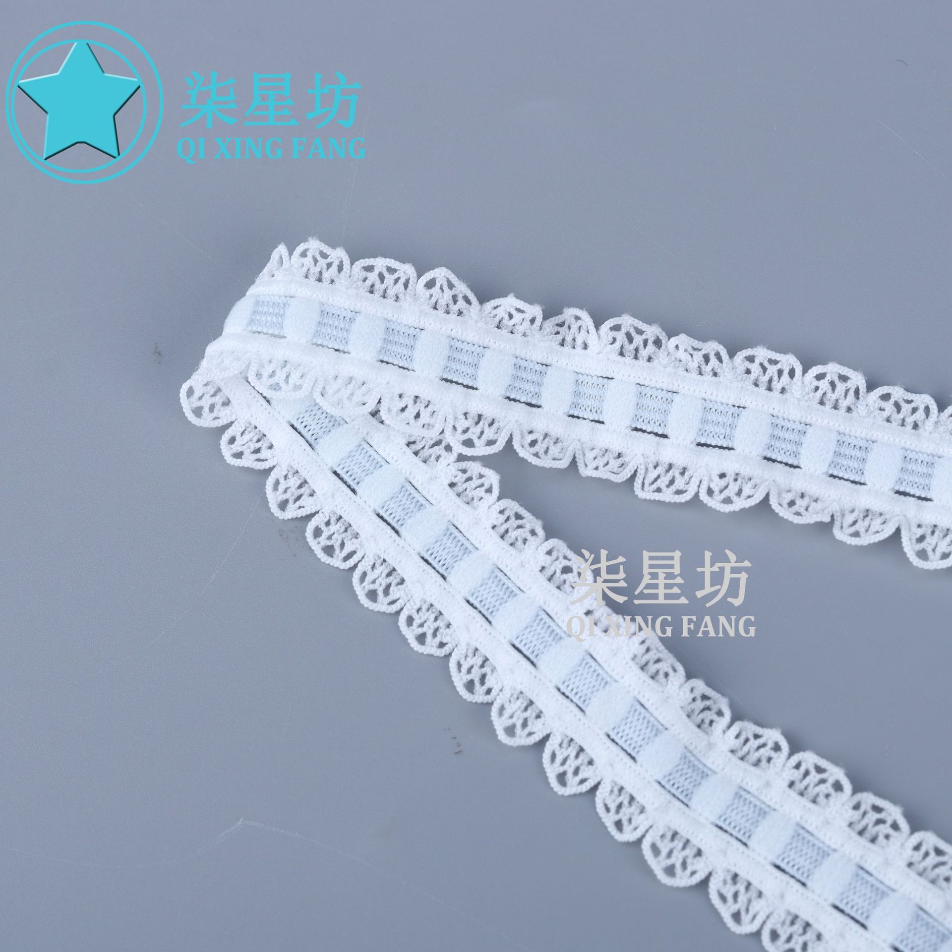 弹力蕾丝粉蓝清新花边橡筋褶带手工DIY装饰玩偶镂空梯子格松紧带